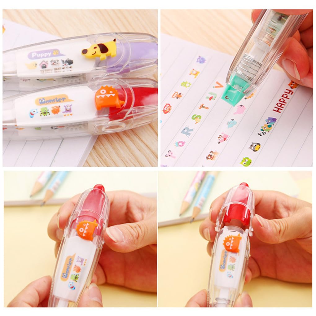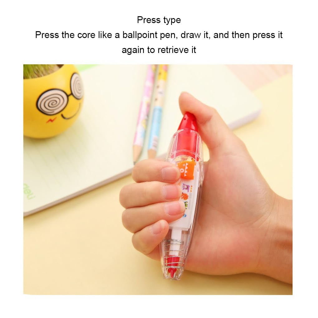 Regalo pratico: sorprendi i tuoi amici e la tua famiglia con questo adorabile nastro correttore a penna caratterizzato da un simpatico motivo a fumetti. È un regalo per ogni occasione Utilizzo versatile: questo nastro correttore per scrapbooking non serve per correggere gli errori nei tuoi quaderni, ma può anche essere utilizzato per progetti artistici e artigianali. strumento indispensabile per gli appassionati di scrapbooking Design carino: i nastri per la correzione del motivo dei cartoni animati aggiungeranno un tocco divertente e giocoso alla tua collezione di articoli di cancelleria. Il simpatico ti farà sicuramente sorridere ogni Per volta che lo usi Comodo e portatile: realizzato in ABS/PC/POM, questo nastro correttore è leggero e compatto, quindi è facile da trasportare in borsa o in tasca. Correggi i tuoi errori sempre e ovunque Ampia applicazione: adatto a tutti i tipi di progetti artistici e di scrittura, questo nastro correttore per scrapbooking è strumento versatile che ogni studente, artista e hobbista dovrebbe avere. La sua formula atossica e inodore lo rende sicuro per tutti