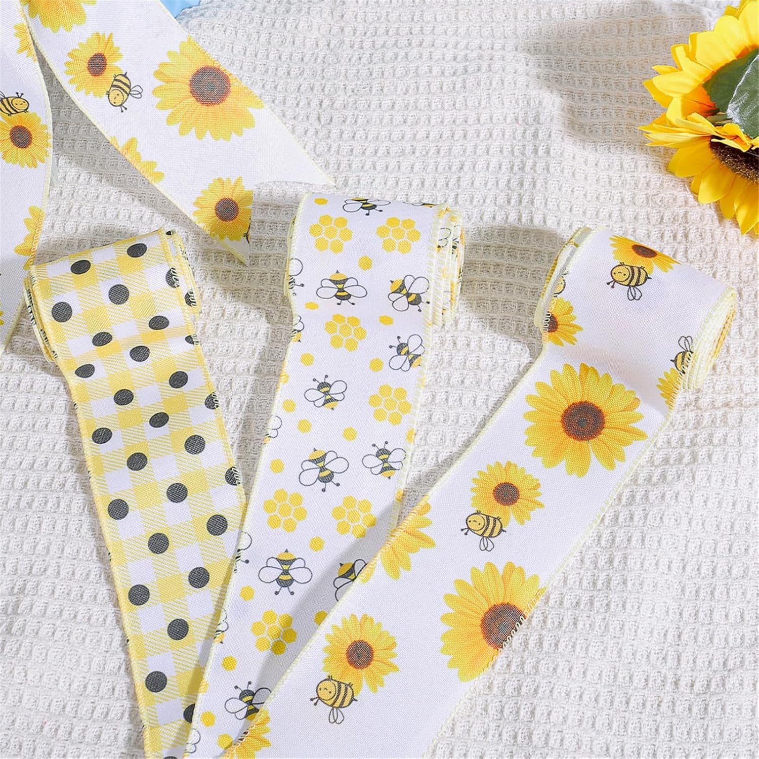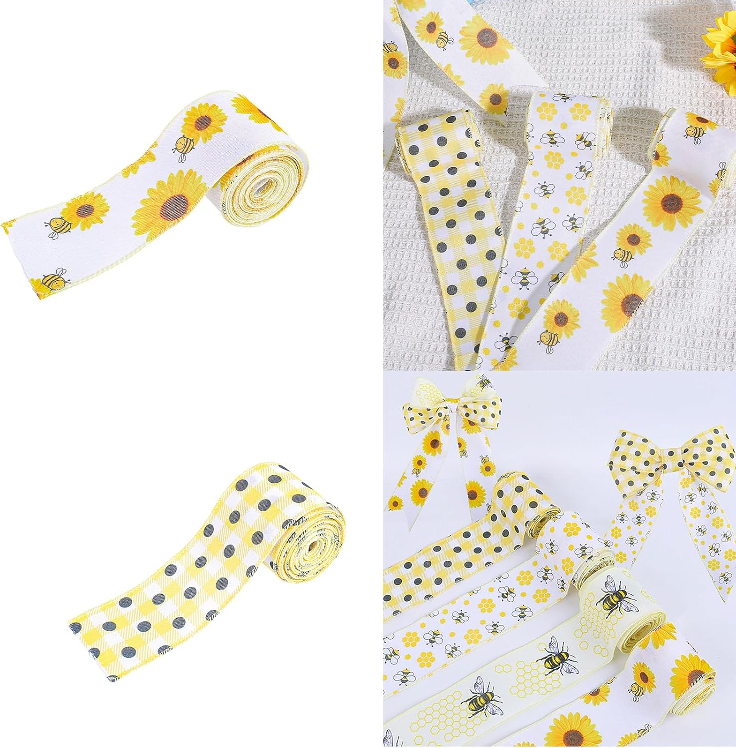 La confezione include: 1 rotolo di nastro con bordi diversi, tema api, girasoli, ogni rotolo è lungo 5 metri Dimensioni: ogni rotolo di girasoli/api lunghezza di 5,5 m e una larghezza di 6,4 cm, scegliere la lunghezza appropriata e ritagliare il modello appropriato in base alle proprie esigenze Motivo preferito, motivo diverso su ogni rotolo di nastro in tessuto, sceglie un motivo diverso in base al tema diverso, il tuo modello preferito Ampiamente applicazioni per fiocchi per capelli, carta da imballaggio, decorazioni per banchetti, fiocchi, nastri, ghirlande, decorazioni per feste, album di ritagli, tutti e cucite; puoi apprezzare appieno il divertimento di , rendere da ,luminoso e , forte, lavabile, nessuno restringimento e non sbiadisce