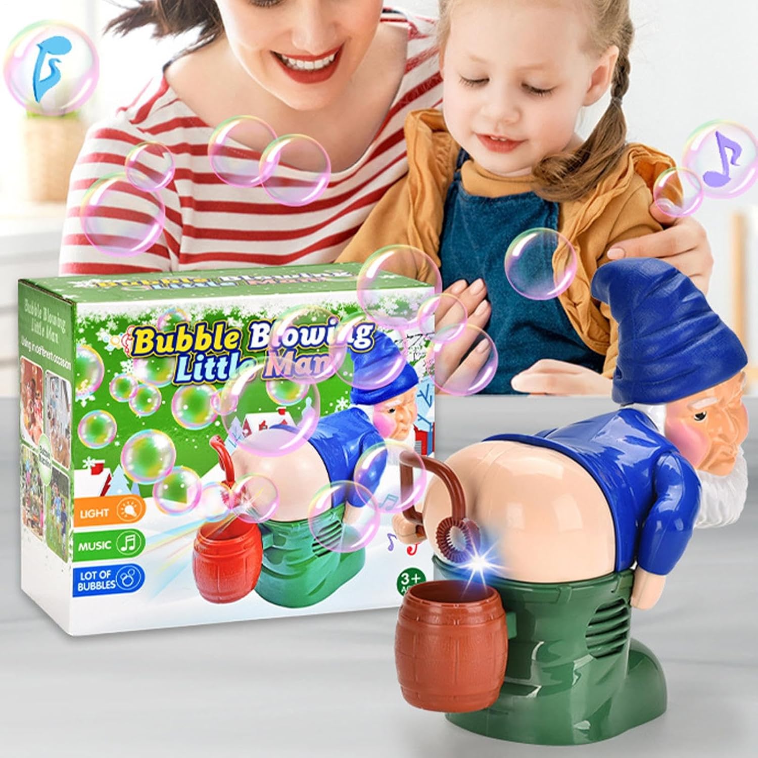 Atmosfera 360: diffusione omogenea di bolle e illuminazione a 360 gradi con protezione anti-perdita. Garantisce 8 ore continue di intrattenimento visivo sicuro per eventi prolungati, senza costante Autonomia totale: funzionamento automatico immediato dopo l'attivazione grazie al pulsante singolo, consentendo ai vortice di bolle accattivanti in modo sicuro senza intervento per adulti Divertente animazione natalizia: trasforma i tuoi eventi con questa fontana a bolle a tema Babbo Natale. Incorpora 12 melodie festive e 7 modalità di luce sincronizzate, diffondendo continuamente bolle perlescenti per 90 minuti senza interruzioni Esperienza interattiva ottimizzata: Rafforza i legami familiari con il meccanismo autonomo di bolle accompagnato da melodie coinvolgenti per un ambiente divertente e rilassante Regalo universale: progettato per tutte le generazioni, questo dispositivo a bolle facilita i momenti di complicità durante feste in giardino, barbecue o celebrazioni. Soluzione chiavi in mano per animare incontri intergenerazionali con un tocco di leggerezza naturale