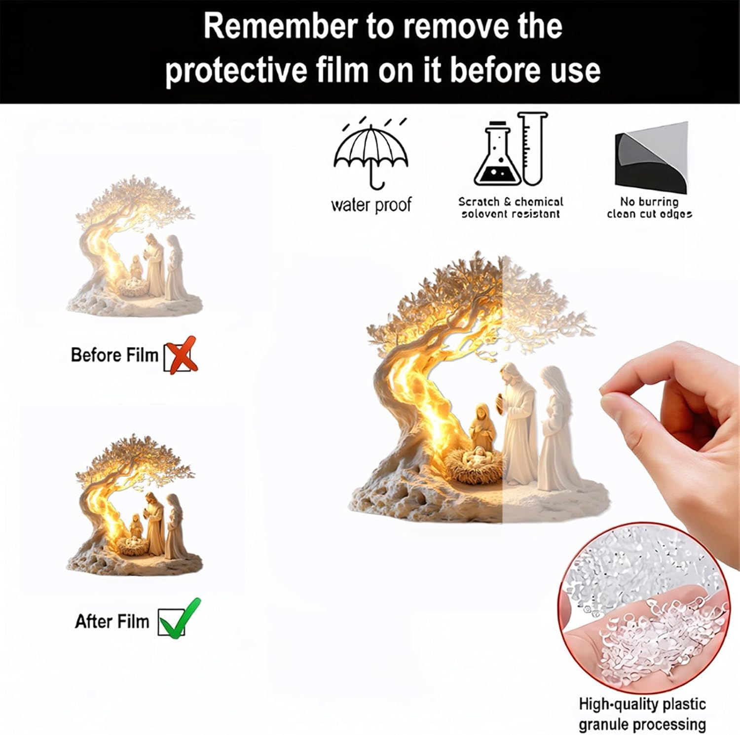 Perfetto da posizionare su un comodino, scrivania da ufficio o altare della chiesa Festeggia il vero spirito del Natale con la nostra decorazione natalizia della lampada da tavolo della scena del presepe e utilizza acrilico selezionato per rappresentare magnificamente la storia religiosa Ideale per i credenti cristiani, gli amanti dell'arte religiosa e per coloro che cercano il comfort spirituale, questo pezzo funge da utile aggiunta a qualsiasi collezione Questo ornamento presenta costruzioni piatte 2D con acrilico impermeabile per garantire durata e facilità di manutenzione per la decorazione delle vacanze Con il suo design unico e gli accessori da appoggio, questa decorazione da tavolo è un ottimo regalo per tutti coloro che apprezzano l'ispirazione religiosa durante la stagione dei festival