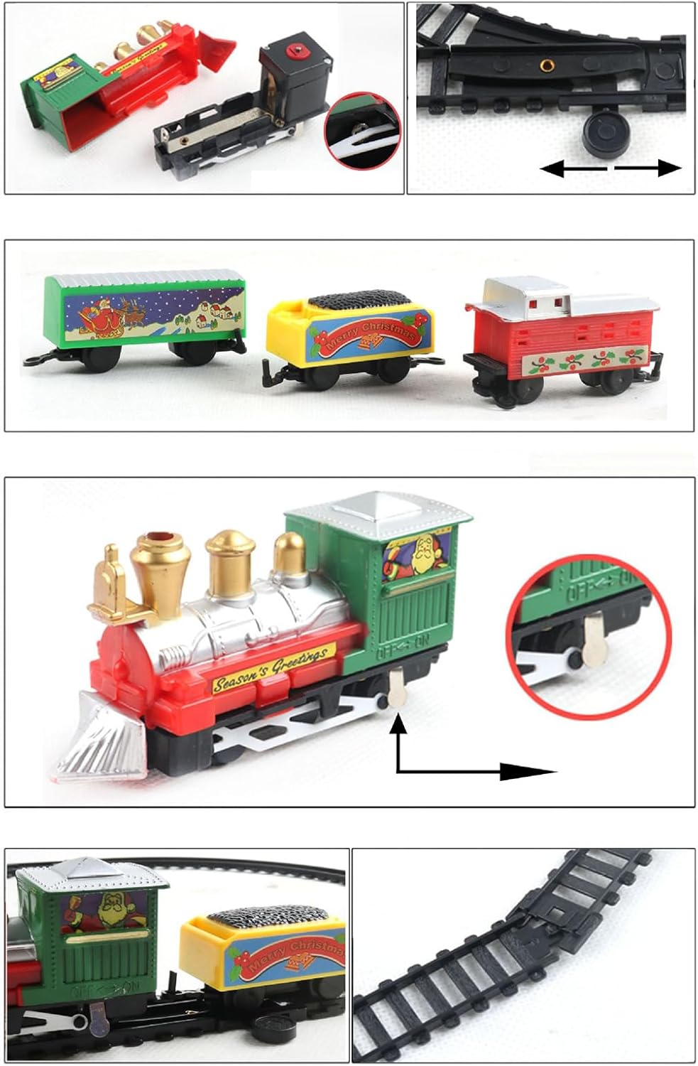 Costruzione Robusta: Realizzato con ABS resistente, il natalizio offre prestazioni sicure e solide, garantendo di diventare un punto fisso nelle celebrazioni annuali per la sua durata nel Montaggio Semplice: I binari e i connettori sono progettati per un assemblaggio rapido e intuitivo, garantendo massima stabilità e funzionalità durante il gioco senza Regalo : Offre ore di gioco coinvolgente che migliora la coordinazione occhio-mano, ideale per appassionati di treni di tutte le età, si integra perfettamente con le decorazioni natalizie e si distingue come scelta regalo superiore Decorazione albero ispirazione vintage: Questo natalizio tradizionale, con caratteristica fluttuante e design classico, valorizza i rami 'albero evocando il fascino nostalgico e care tradizioni festive Mondo Ferroviario: Set di 9 pezzi con locomotiva, carro merci, binari e fornisce tutto il necessario per creare un display affascinante, per celebrazioni natalizie e giochi immaginativi che incoraggiano il divertimento festivo.