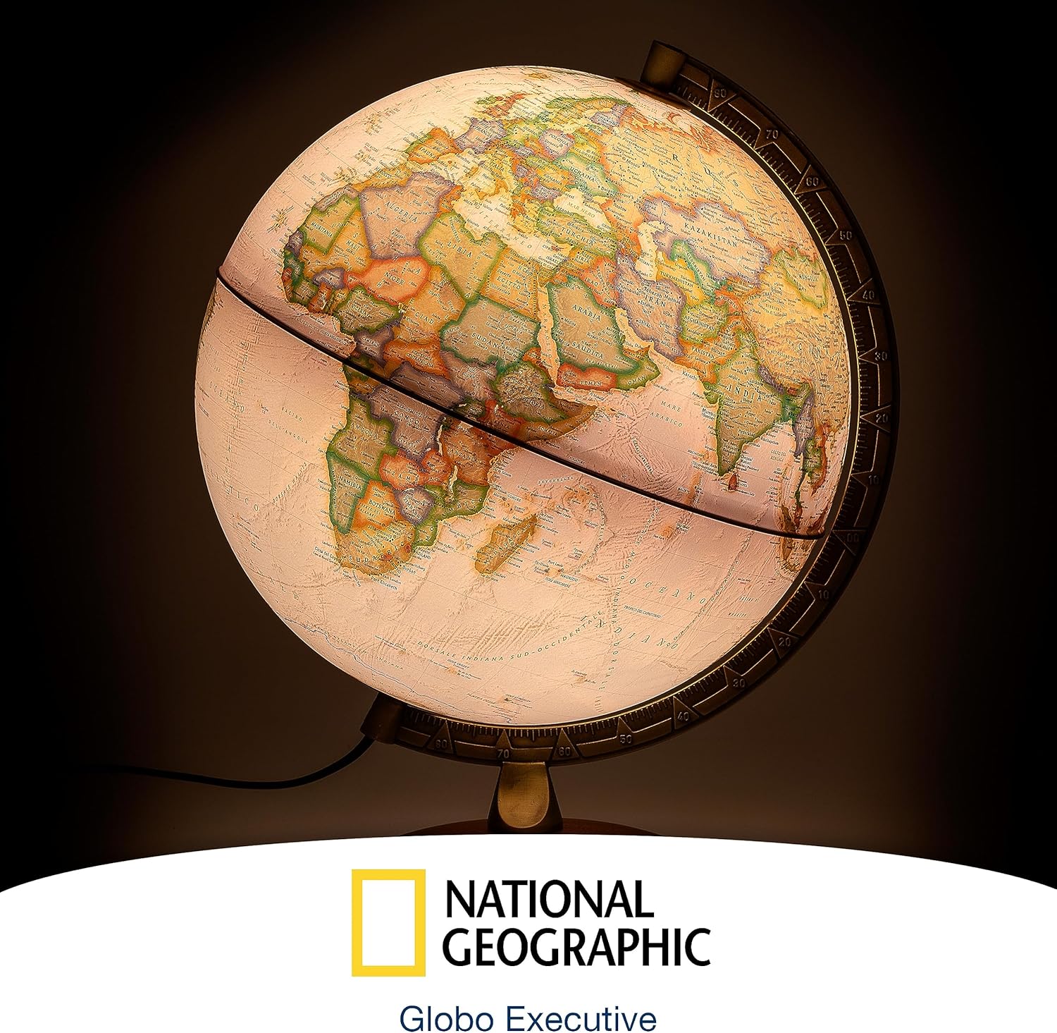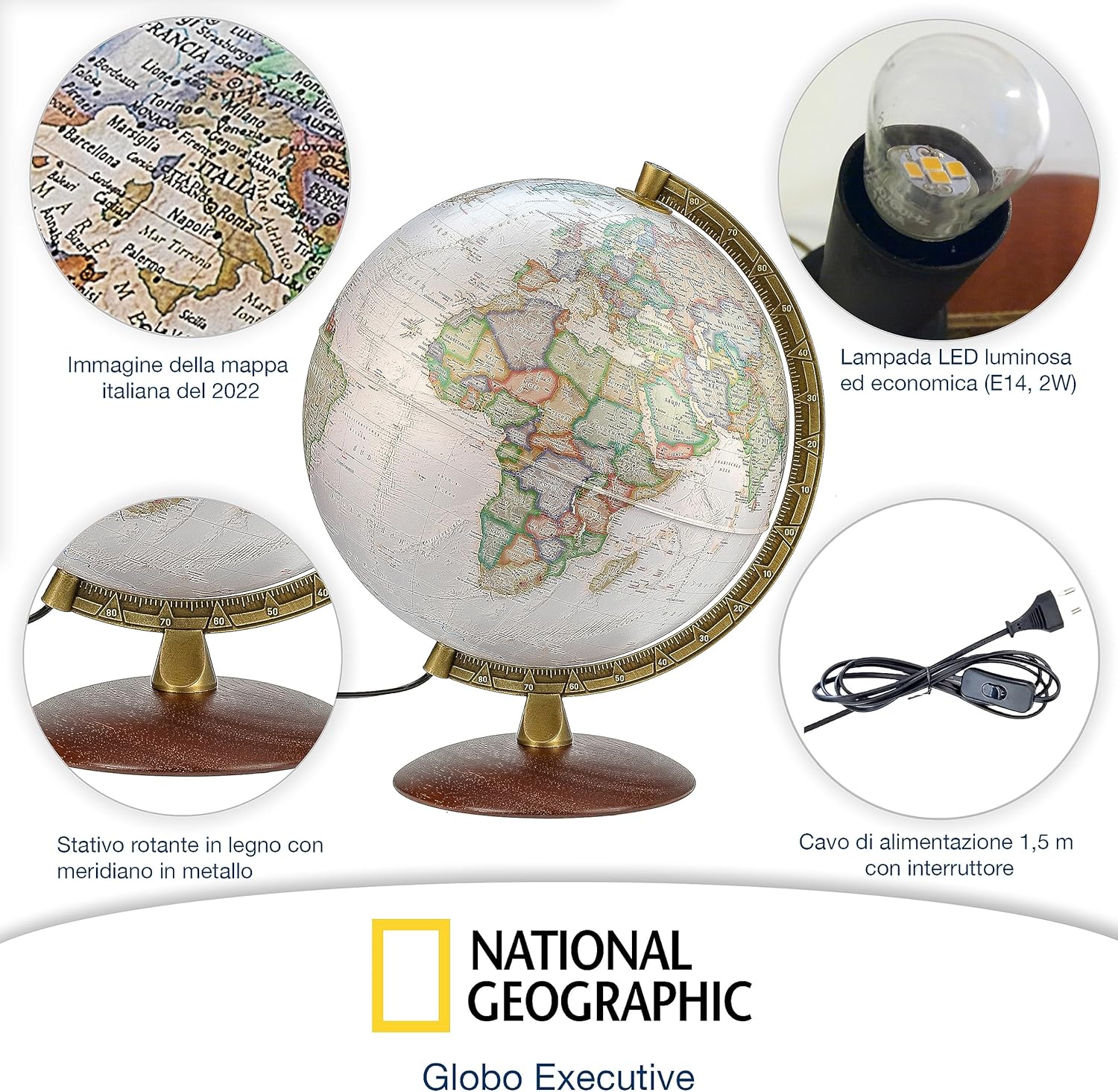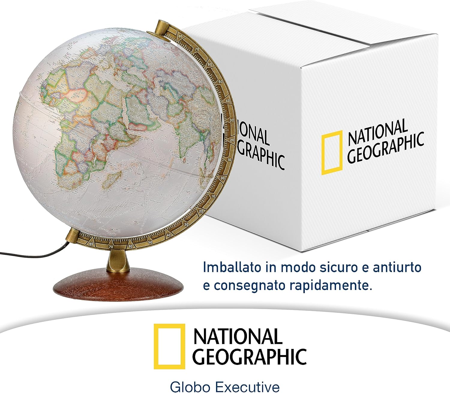 🌎 QUALITÀ NATIONAL GEOGRAPHIC - Questo mappamondo illuminato di National Geographic contiene materiale cartografico italiano, aggiornato fino al 2022 in stile executive. Tutte le scritture riportano i nomi dei Paesi e delle città in italiano - adatto anche come mappamondo scolastico. 🌍 DIMENSIONE OTTIMALE - Il mappamondo classico ha un diametro di 30 cm e un'altezza totale di circa 40 cm, compresa la base. Ha quindi la dimensione tipica e collaudata di un mappamondo. 🌏 LED - Il globo è illuminato da una lampada a LED (E14, 2W) ed è quindi molto facile da leggere anche al buio. 🌎 DECORAZIONE VIVACE - Questo mappamondo dal design executive è particolarmente decorativo e con la sua immagine di cartografia fisica/politica offre molte informazioni per un'ampia varietà di scopi. 🌎 STABIE E DI ALTA QUALITÀ - Il globo poggia su una base stabile e rotante. Tutto sommato: un regalo bello e decorativo.