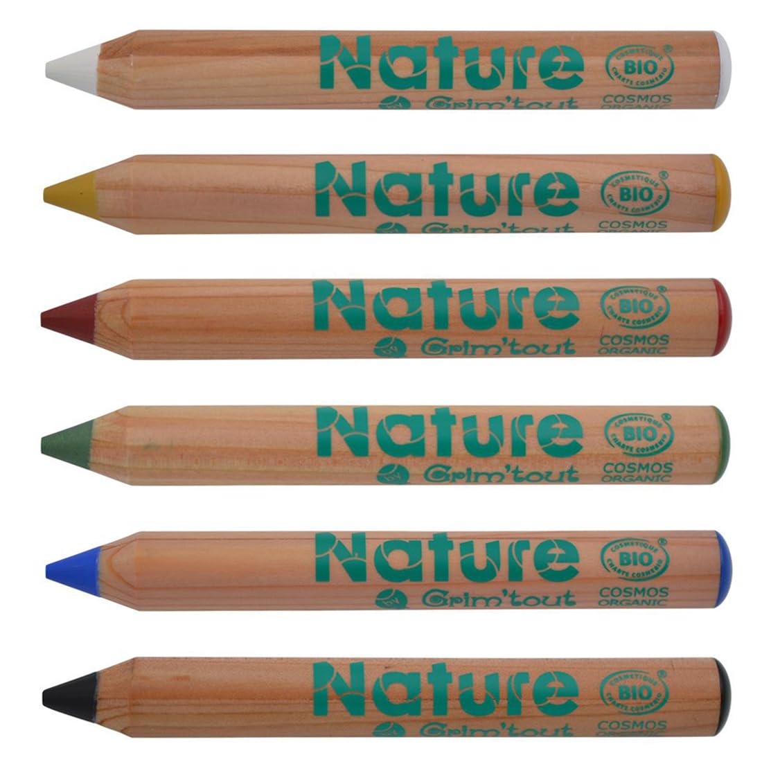 Un set di 6 matite trucco certificate biologiche in tonalità naturali. Ideale per qualsiasi tipo di trucco. Sono le penne ideali per trucchi facili e veloci: dai clown alle fate dei fiori, dai pirati a Catrina. Al contatto con la pelle, la mina si scioglie delicatamente per un'applicazione opaca e senza sforzo. Grandi e piccini saranno felici di truccarsi con questi bastoncini pigmentati di olio di cocco biologico. Nature di GRIMTOUT è una gamma di trucchi biologici per feste per ogni occasione. Le penne sono certificate biologiche, COSMO ORGANIC da Ecocert Greenlife. Completamente lavabile con acqua saponata, consente una facile rimozione del trucco. Il 30% degli ingredienti totali sono biologici. Il 100% del totale è di origine naturale. La gamma Nature comprende 3 set da 4 matite e 1 set da 6 matite oltre a una tavolozza con 6 ombretti per il trucco. Le matite possono essere temperate con il temperamatite GrimTout Nature.