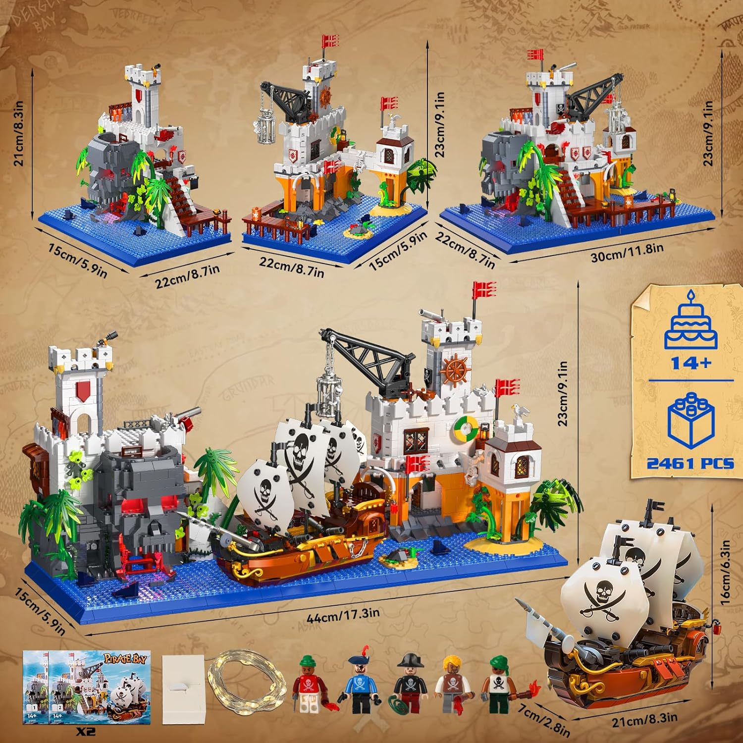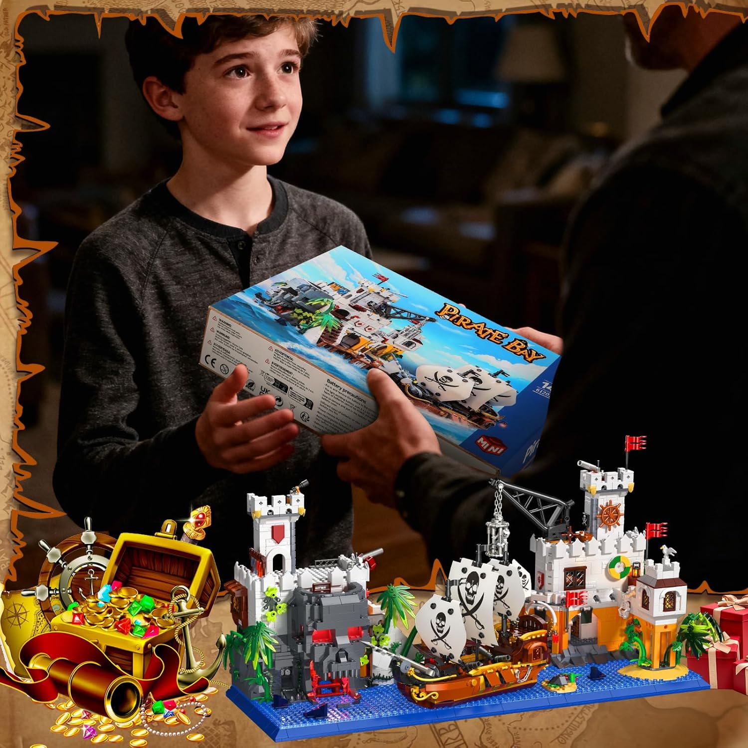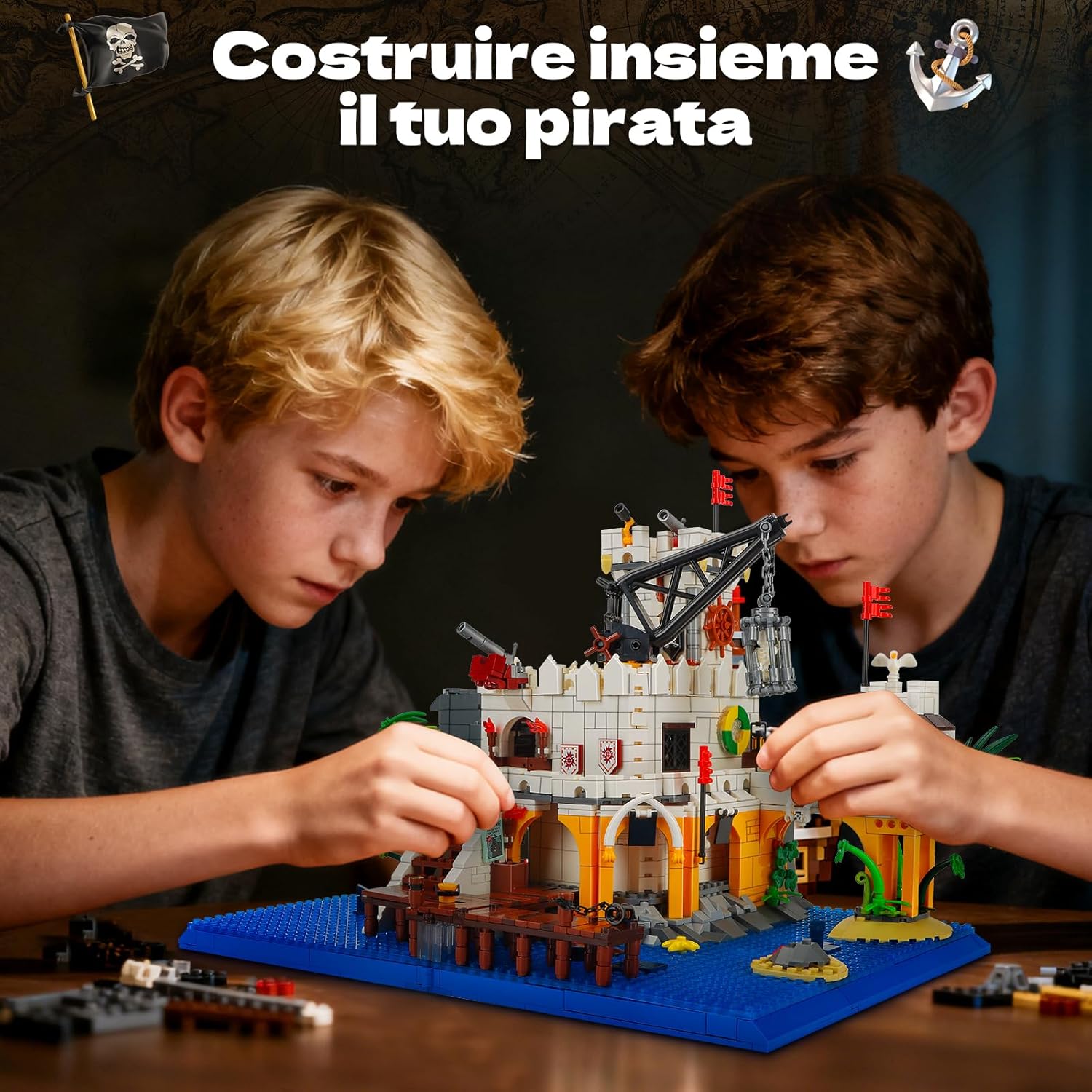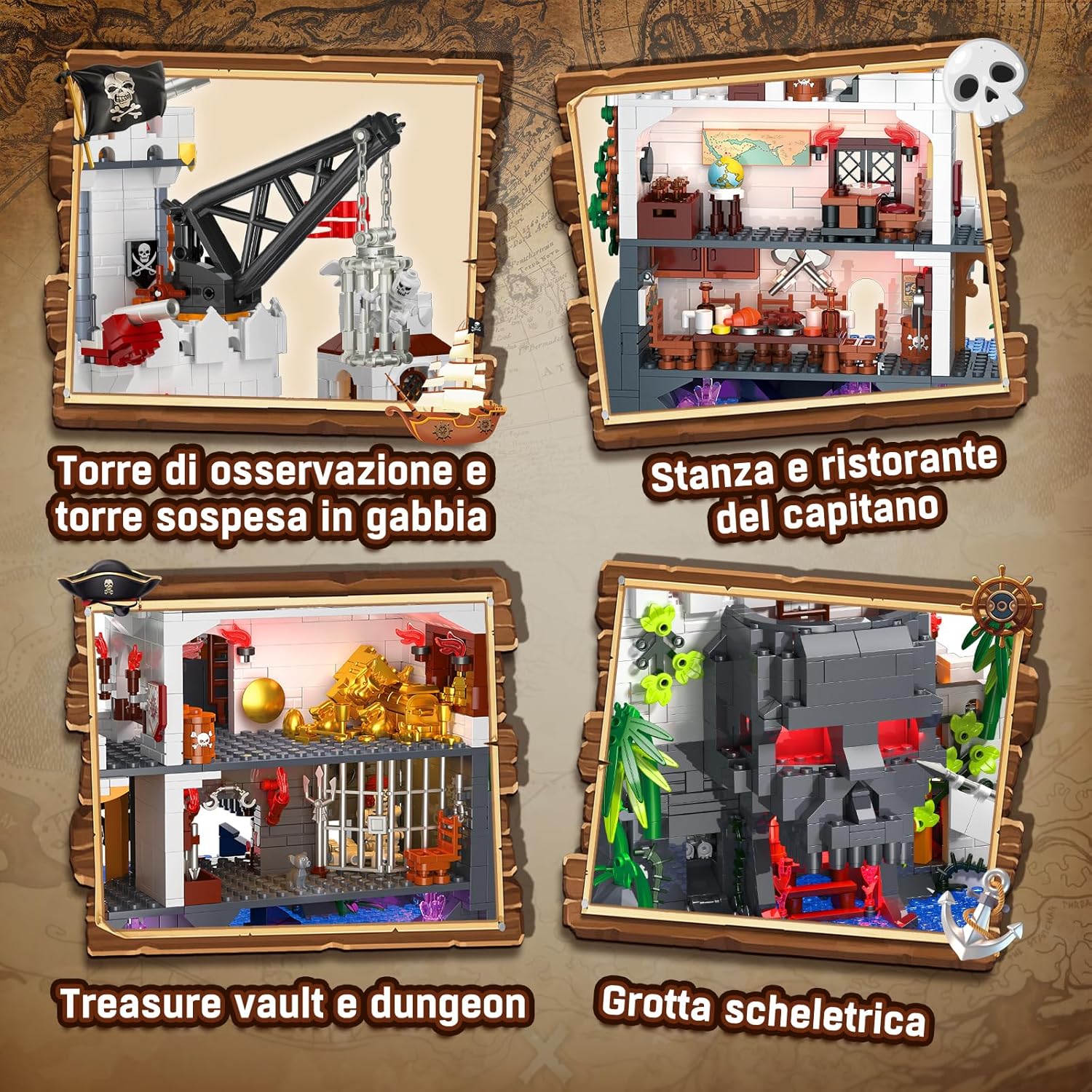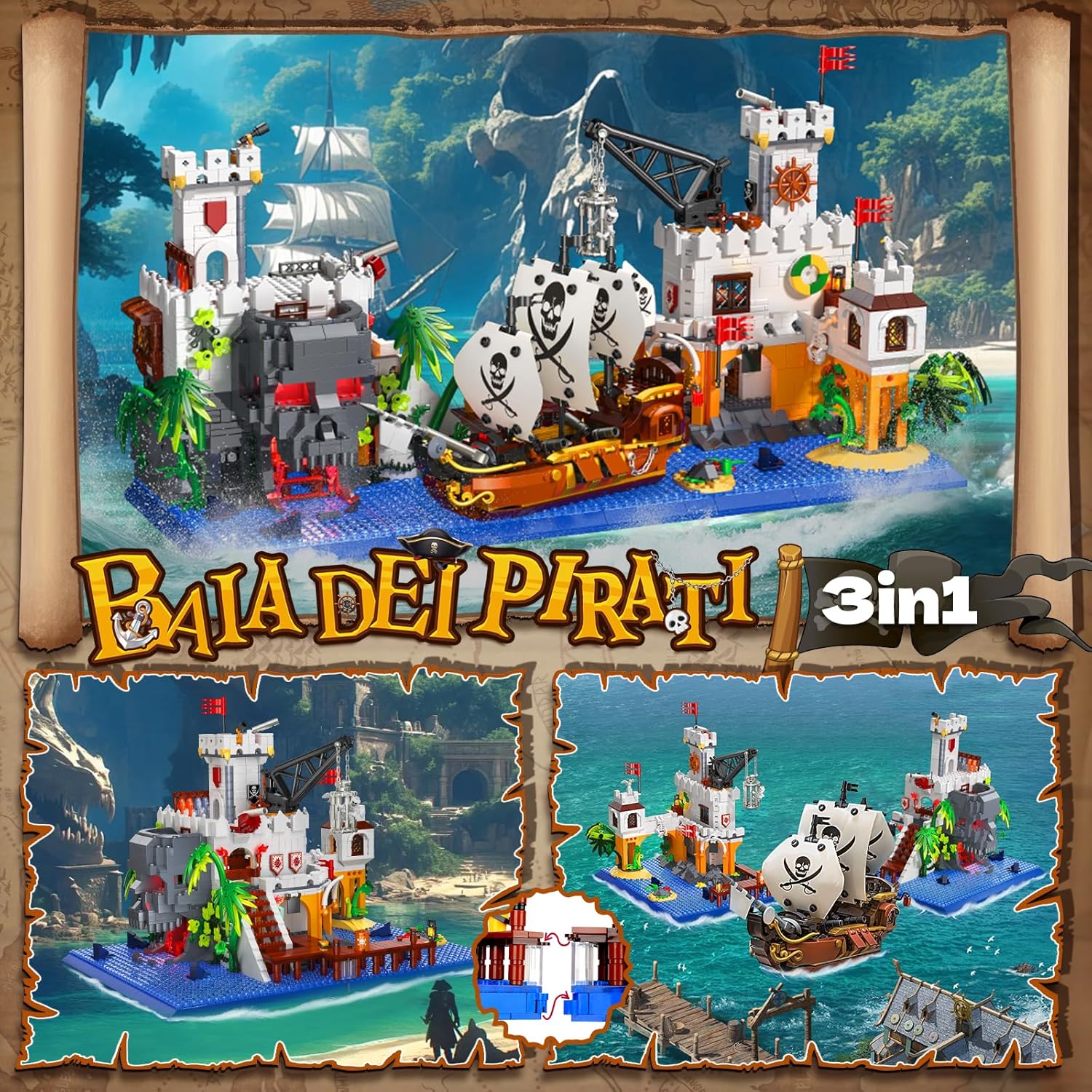 ⚓️【3in1 Blocchi da Costruzione】 Set di blocchi da costruzione a forma di nave pirata presenta un'esclusiva struttura a incastro, che consente di assemblare liberamente la nave pirata e due castelli pirata indipendenti, creando tre diverse configurazioni. I diversi metodi di costruzione consentono ai bambini di sperimentare tre livelli di divertimento in un'unica costruzione, liberando la loro creatività e il loro spirito di esplorazione. ⚓️【Scenari Immersivi】 Castello dei pirati è ricco di dettagli, come cannoni sul tetto, una prigione e un posto di vedetta, che ricreano l'emozionante mondo dei pirati. È inoltre dotato di una splendida catena luminosa che illumina l'intera scena una volta costruita, creando un effetto sorprendente di notte. I bambini possono vivere il brivido dell'avventura durante il gioco diurno e godersi l'atmosfera illuminata di un'avventura in scena di notte. ⚓️【Gioco di Ruolo】 Questo set di costruzione di fortezze include mattoncini raffiguranti personaggi, tra cui pirati, marinai e guardie, che permettono ai bambini di interagire con navi ed edifici medievali. Attraverso il gioco di ruolo, i bambini possono simulare battaglie e avventure, creando le proprie storie. La combinazione di personaggi e scene trasforma il processo di costruzione in un'esperienza dinamica, interattiva ed esplorativa, che trascende la costruzione statica. ⚓️【Materiali Sicuri】 Il giocattolo della nave pirata è realizzato in plastica ABS di alta qualità, con parti lisce e arrotondate, senza sbavature. La struttura ad incastro garantisce una struttura robusta, garantendo stabilità anche dopo ripetuti montaggi e smontaggi. I materiali sono sicuri ed ecologici, e i colori vivaci assicurano che i bambini possano costruire liberamente in un ambiente sicuro, mentre i genitori possono stare tranquilli. ⚓️【Regalo Ideale】 Questo set di costruzione di una nave pirata 3 in 1 è un regalo perfetto per compleanni, festività o come premio didattico per bambini dai 14 anni in su, così come per adulti. La decorazione con filo luminoso fa brillare il pezzo completato di notte, creando un'esperienza visivamente davvero accattivante. Con i suoi dettagli ispirati ai personaggi e avventurosi, è un giocattolo che puoi costruire più e più volte o semplicemente esporre come oggetto da collezione.