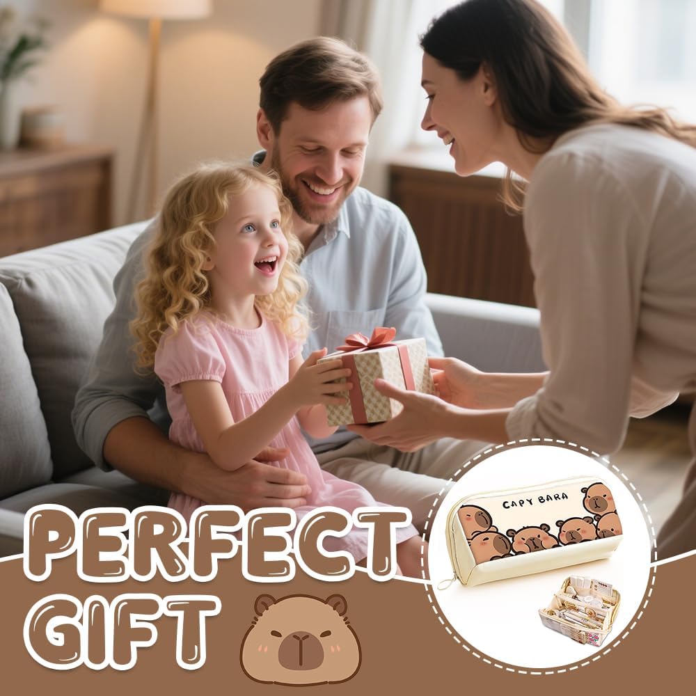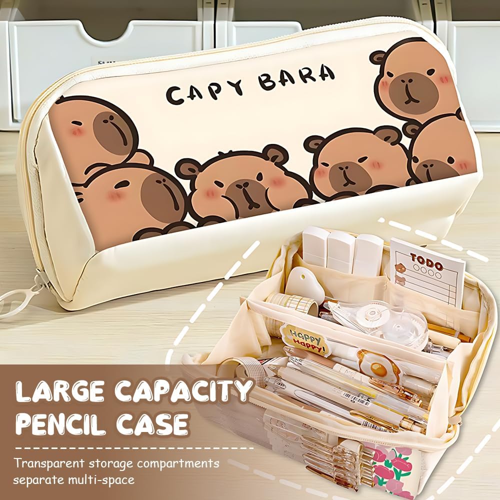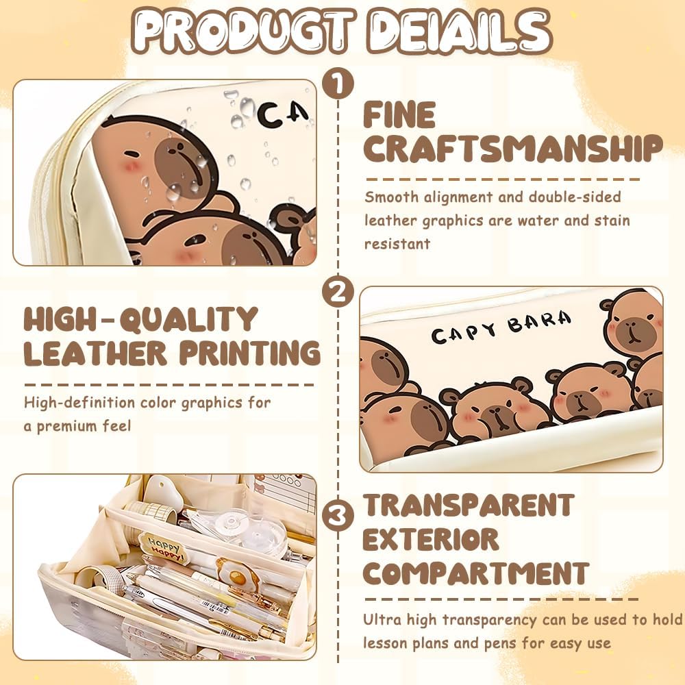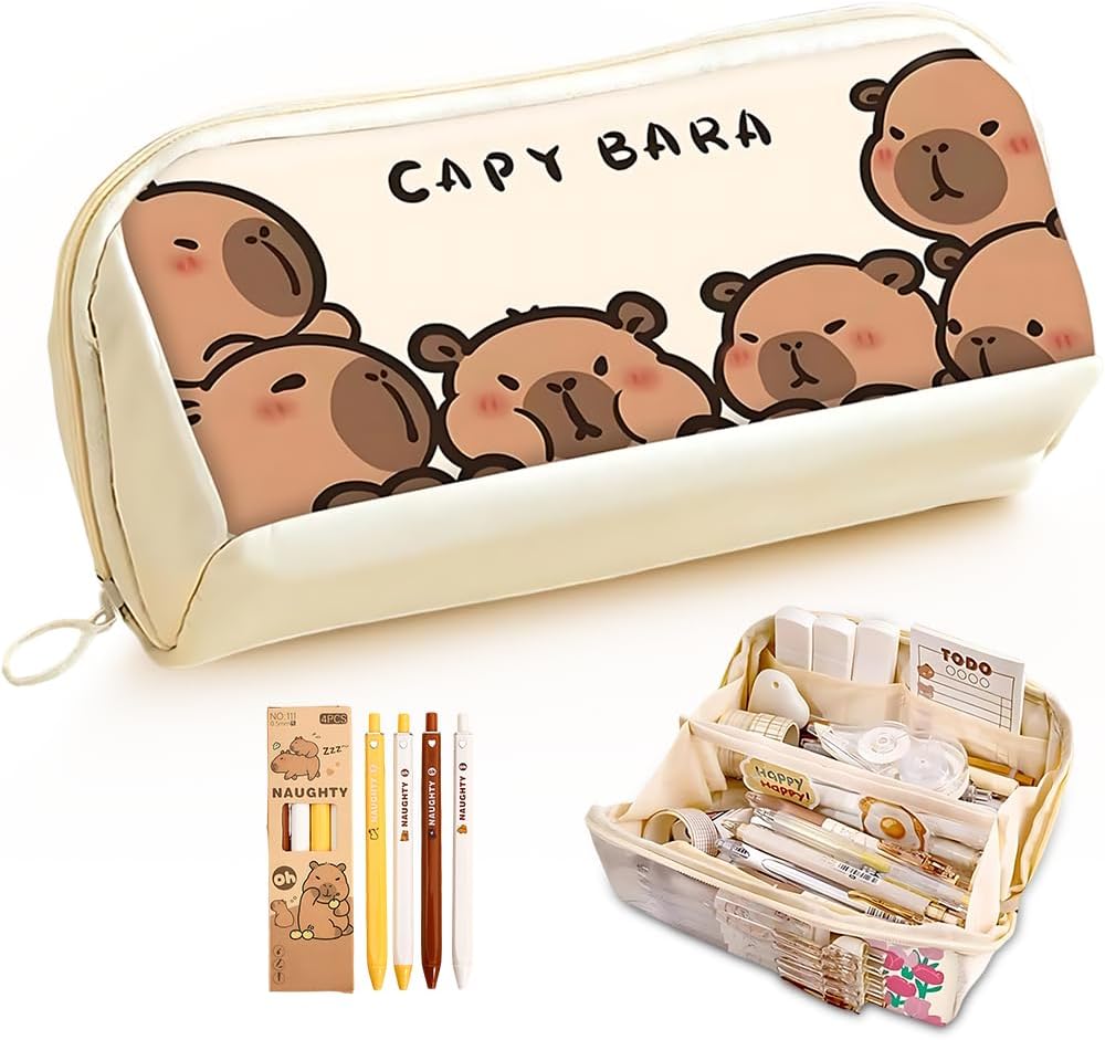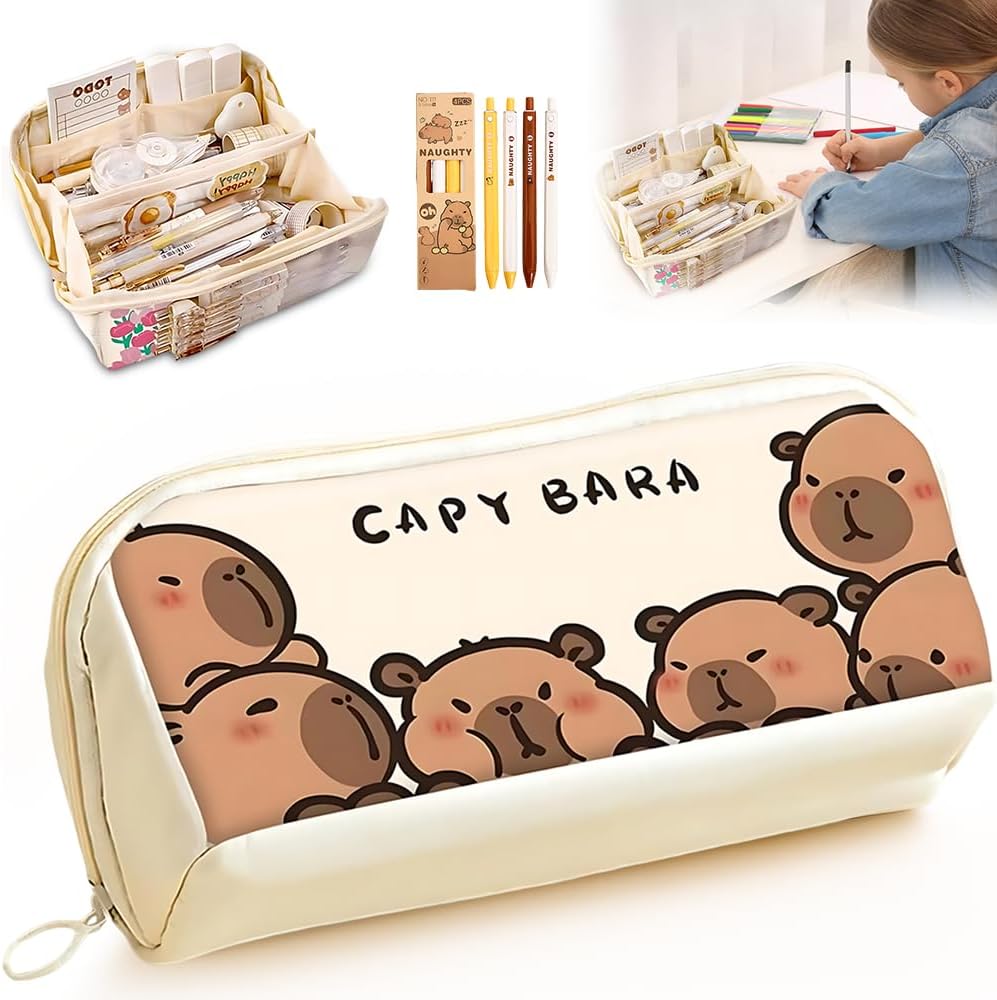 8 scomparti: con i suoi 8 scomparti, questo astuccio capibara offre spazio sufficiente per penne, accessori artistici e altro ancora. e offre spazio sufficiente per riporre e organizzare le tue cose. Allo stesso tempo, è molto leggero e ideale da portare con te. Perfetto per studenti, artisti e tutti coloro che amano la cancelleria carina. Perfetto per gli studenti che, oltre alle penne, utilizzano una varietà di strumenti come gomme, adesivi, righelli, ecc. (Contenuto della confezione: penne Capybara* 4, astuccio Capybara* 1) Ampia apertura: il set di astuccio capibara ha un design con ampia apertura che ti consente di trovare più rapidamente ciò che ti serve. La cerniera rende difficile la caduta o la perdita degli articoli di cancelleria. Tessuto di qualità: con un tessuto resistente all'usura, morbido e robusto, il nostroc apibara astuccio offre comfort durante l'uso. Il design antigraffio garantisce una lunga durata e lo rende un'ottima combinazione di bellezza e funzionalità per chi cerca un astuccio resistente e comodo. Aspetto carino: questo astuccio capibara è stampato con un kawaii capybara pesce, alla moda e creativo. Non solo dà una sensazione giocosa e divertente, ma è anche abbastanza spazioso per riporre e organizzare i tuoi articoli di cancelleria, cosmetici e altro ancora Versatilità pratica: mostra la tua personalità e il tuo gusto utilizzando questo astuccio capibara, che può essere utilizzato come trousse, accessorio da lavoro o custodia da viaggio. Il suo design multiuso come astuccio zaino si adatta con stile a tutti gli scenari
