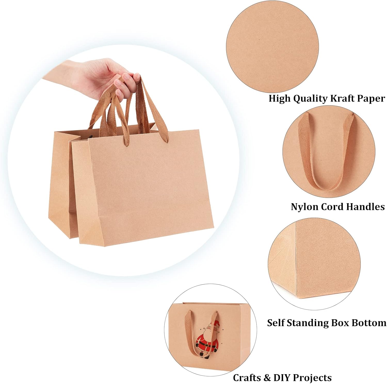 Alta qualità: la borsa regalo è realizzata in carta resistente con superficie e bordi lisci, aspetto attraente, taglio tridimensionale e costruzione eccellente. La base spessa consente di stare facilmente in posizione verticale. Sono incluse robuste cinghie di trasporto in tessuto per un facile trasporto. QUANTITÀ: Ogni confezione contiene 10 sacchetti kraft con manici, sufficienti per l'uso in feste, decorazioni per feste o come custodia per regali, per conservare biscotti fatti a mano o altri oggetti che vuoi mettere nei sacchetti, oppure puoi usarli per il fai-da-te DIMENSIONI PERFETTE: ca. Larghezza 180 mm, lunghezza 220 mm, spessore 100 mm, leggero e portatile; Si prega di confermare la taglia prima dell'acquisto. BORSE PERSONALIZZATE: Queste borse kraft marroni sono bianche, pura carta kraft, potresti decorarle con disegni, coloranti ecc. per diverse festività come borse regalo per i tuoi cari. Inoltre, come borsa commerciale, puoi pinzare il tuo biglietto da visita o aggiungere il tuo logo all'esterno della borsa. VERSATILI: i sacchetti di carta Kraft sono ideali per sacchetti regalo, borse per la spesa, sacchetti regalo, sacchetti per bomboniere per un matrimonio o una festa. Bello anche per borse e borse per la merce in occasione di fiere dell'artigianato locale, festival d'arte e mercatini dell'artigianato, soprattutto durante le vacanze.