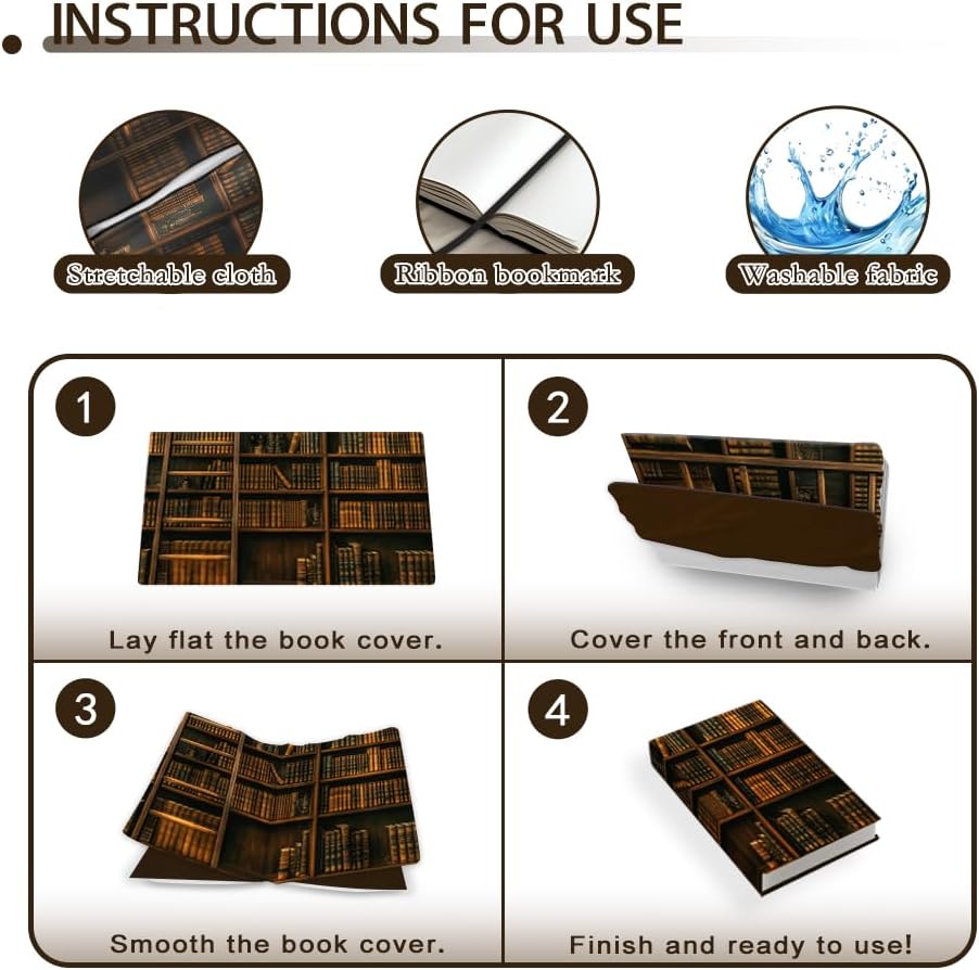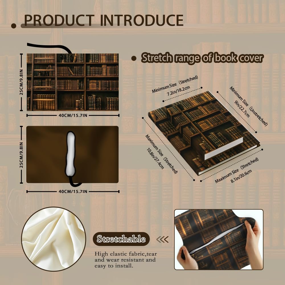 Dimensioni e vestibilità:i bordi elastici si estendono fino a 4cm di spessore per copertine rigide e libri di testo; Avvolge comodamente libri tascabili sottili fino a 0.4 pollice con il motivo stampato da 25x40cm che esalta l'estetica del libro come una seconda pelle Materiale in tessuto morbido:tessuto leggero in misto poliestere con texture antiscivolo che protegge da polvere e abrasioni; Tessuto traspirante, abbastanza delicato per l'uso quotidiano Bordi elastici:i bordi rinforzati in tessuto elasticizzato aderiscono saldamente al dorso del libro e si inseriscono/escludono senza sforzo in pochi secondi, senza bisogno di colla o per cambi di copertina senza problemi Design riutilizzabile:cuciture triple e fibre che mantengono la forma resistono a più di 200 cambio di copertura; Di fiducia per università e bibliotecari per una protezione tutto l'anno senza deformazioni Stile del motivodi l'a libreria:il motivodi l'a libreria nasconde le copertine dei libri usurate e completa l'arredamentodi l'a casa. Adatto per uso personale o come regalo pratico per gli amanti dei libri