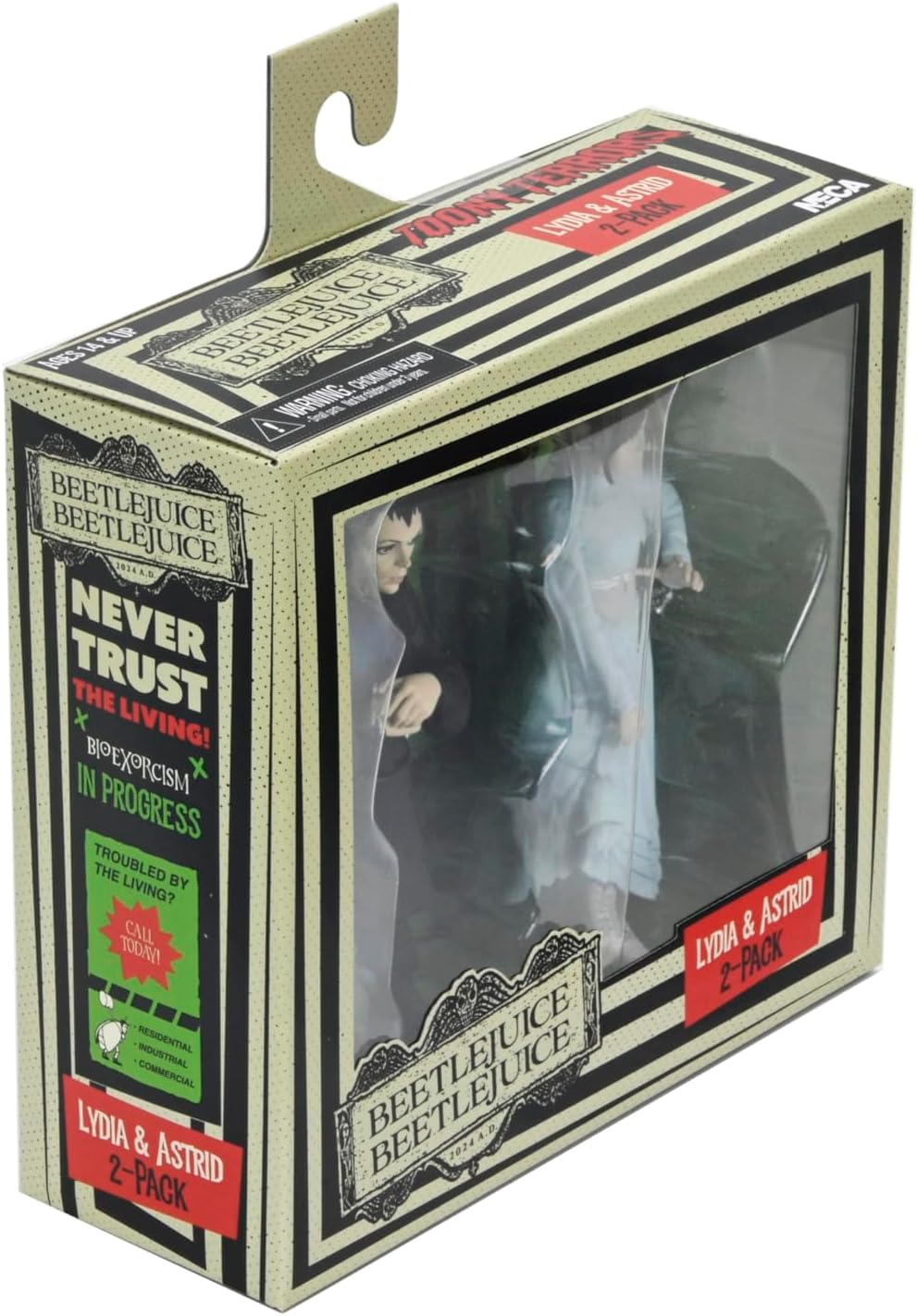 Neca presenta, all'interno della collezione Scale Action Figure di Toony Terrors, il set di 2 personaggi composto da Lydia & Astrid. Misurano 15 cm e si basano sui personaggi del film 2024 "Beetlejuice Beetlejuice" (o "Bitelchus Bitelchù" in spagnolo. Dispone di 3 punti di articolazione. Presentati in una scatola con finestra.