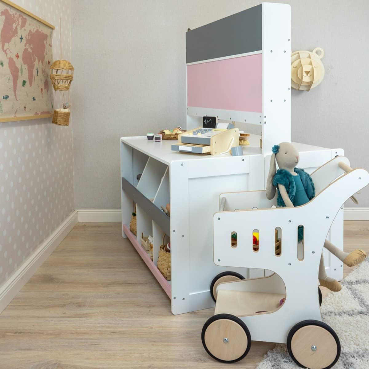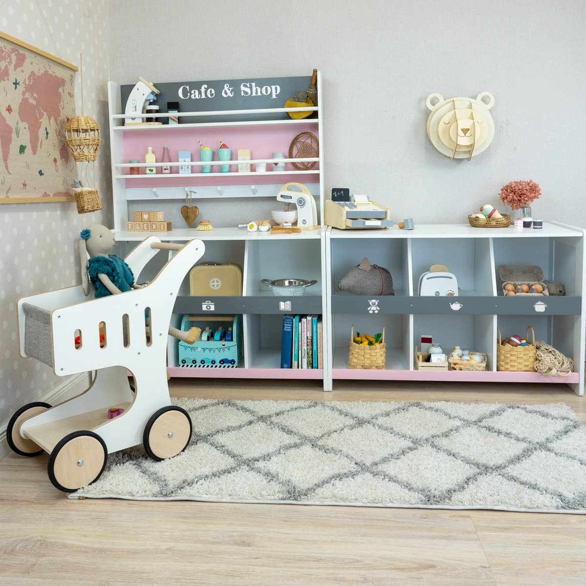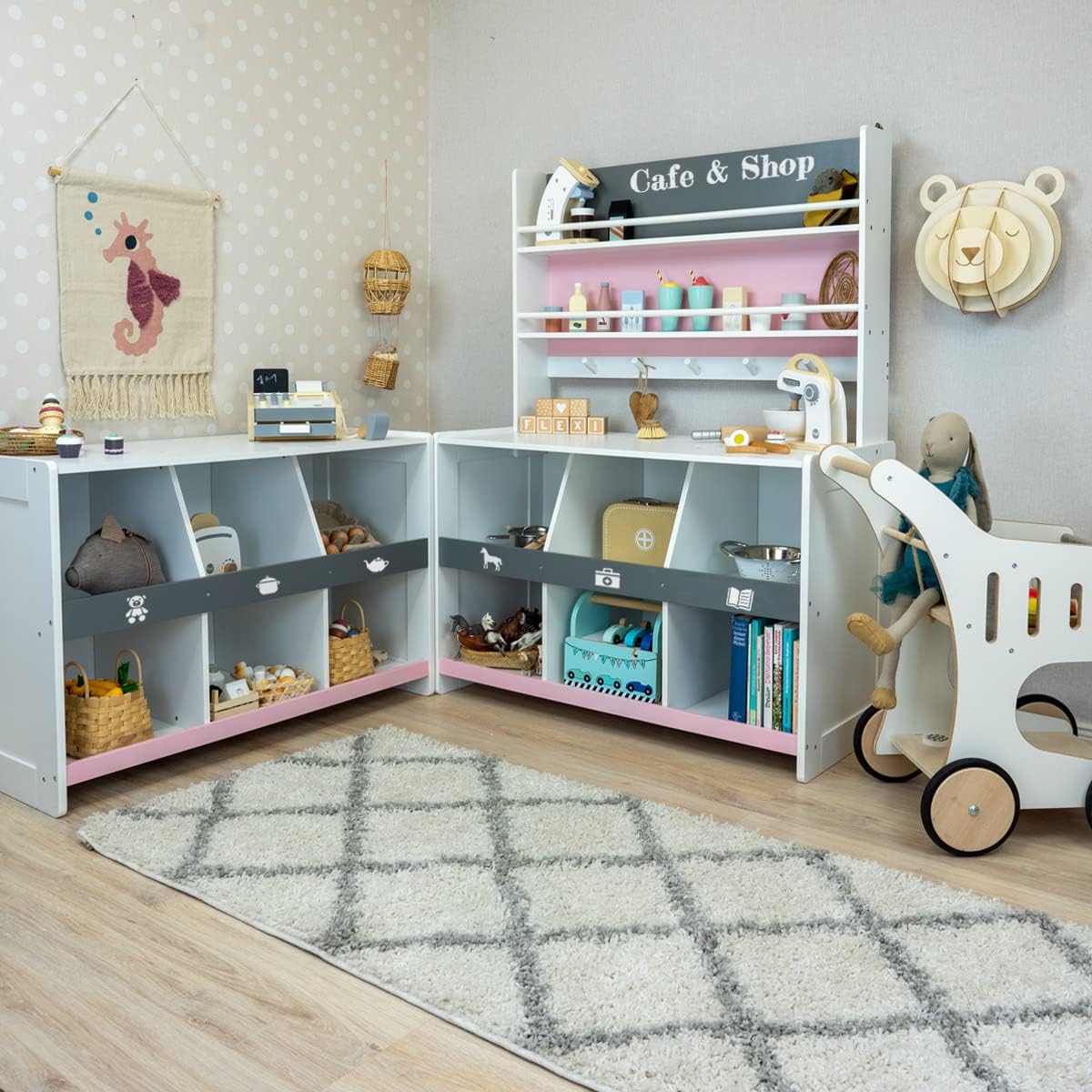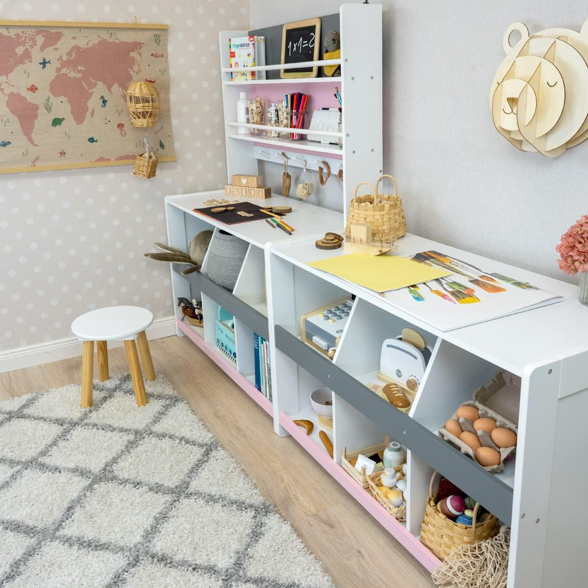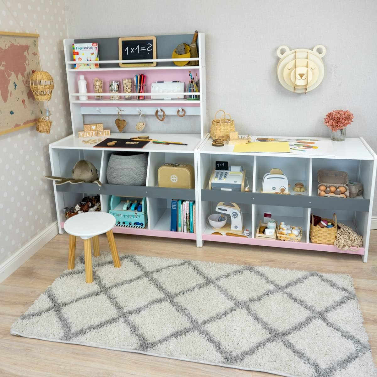 Disposizione flessibile e individuale dei due elementi del negozio Dimensioni degli scomparti in cm: L: 28 A: 26 P: 36,5 Dimensioni del prodotto in cm Parte 1: (A x L x P) 120 x 90 x 40 Dimensioni del prodotto in cm Parte 2: (A x L x P) 59 x 90 x 40 Le aree grigie possono essere scritte con un pennarello a gesso