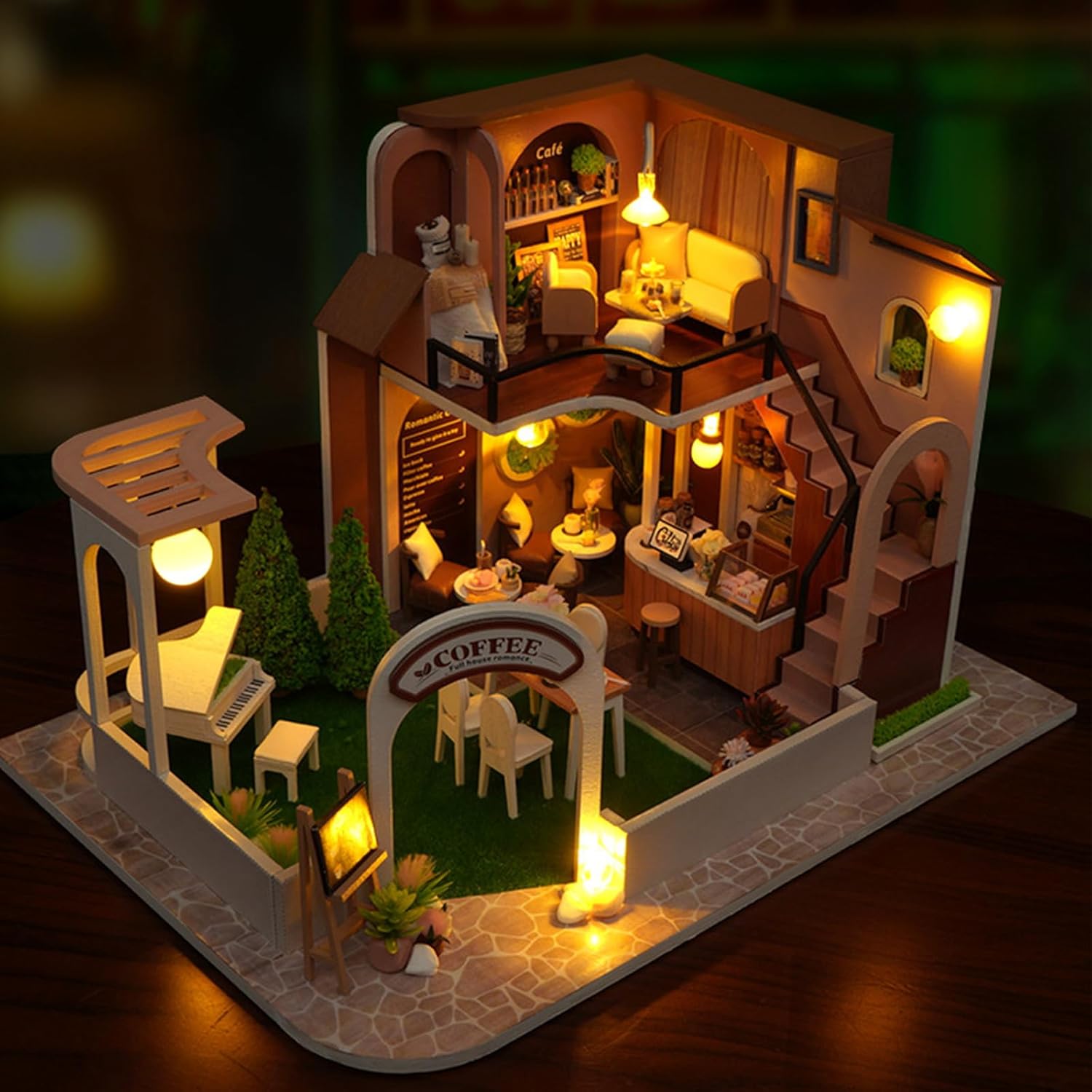 Non importa che tu stia cercando un'attività serena dopo una lunga giornata o un progetto unico per connetterti con la famiglia e gli amici, questo set di costruzione artigianale di una piccola casa funge da regalo eccezionale per l'arredamento della stanza, ispirato alla creatività. Questi kit in legno con legno rifinito con mobili e accessori offrono un'esperienza di costruzione complessa, non solo affascinante, ma anche la tua attenzione ai dettagli e all'estetica del design finito Café Shop House diventa un grande ornamento da esposizione che combina chiusure calme ed eleganti, dando inizio a una conversazione in qualsiasi ambiente approfondendo l'arte meticolosa dei kit artigianali Café Miniatures, un ottimo connubio tra creatività e artigianalità che dà vita ad un accattivante Café House. Questo kit di case in miniatura è ottimo per adulti e adolescenti che apprezzano la bellezza degli artigiani. Rappresentano una grande sfida per gli hobbisti e per chiunque abbia una passione per i mondi in miniatura
