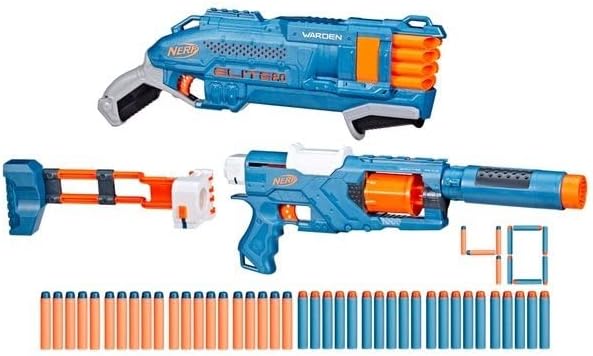 Questo pacchetto da 2 blaster è un ottimo modo per iniziare o costruire la tua collezione Nerf Crea 6 diversi stili di blaster con il blaster Spectre Rev 5 Ha un cilindro rotante a 5 dardi, un'estensione della canna rimovibile, un calcio pieghevole rimovibile e una guida tattica. Scatena 2 dardi contemporaneamente con il blaster Warden DB 8 a pompa Si consigliano occhiali (non inclusi)