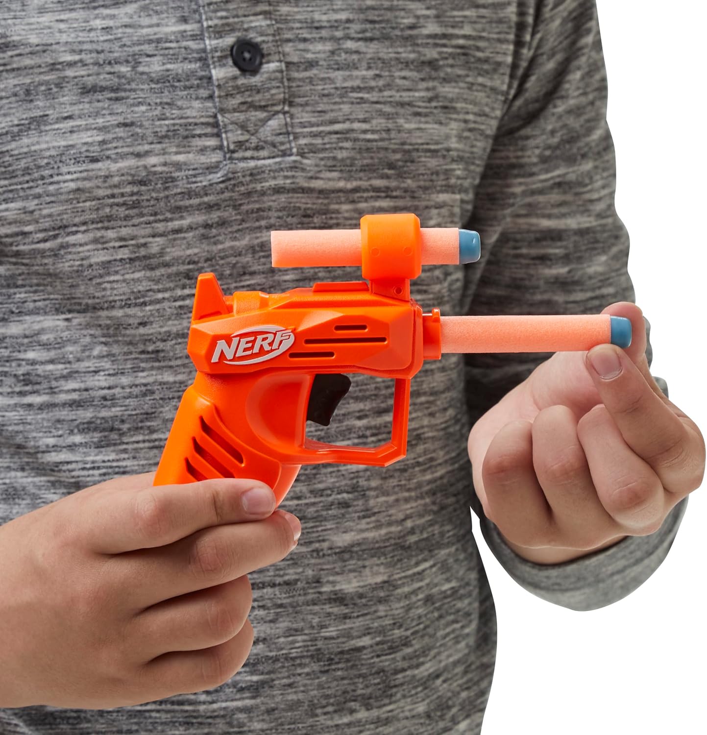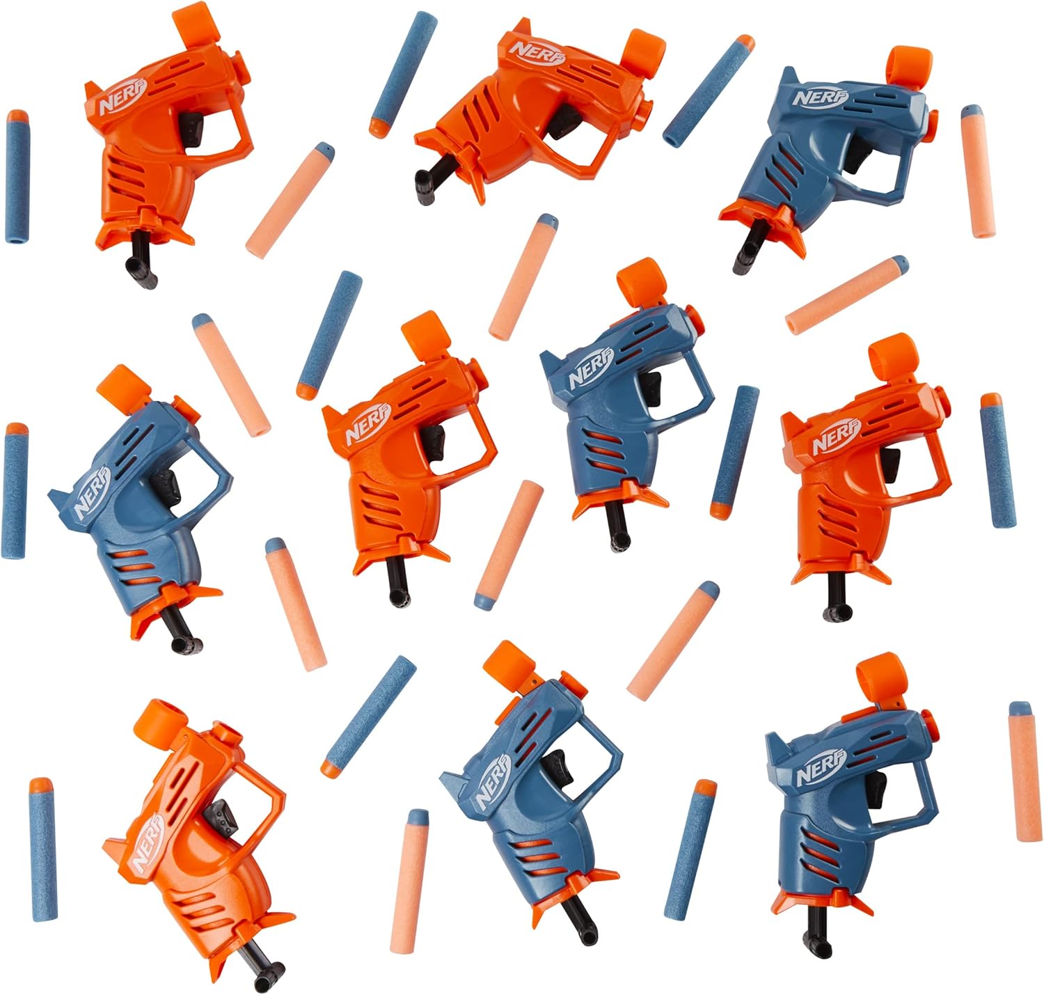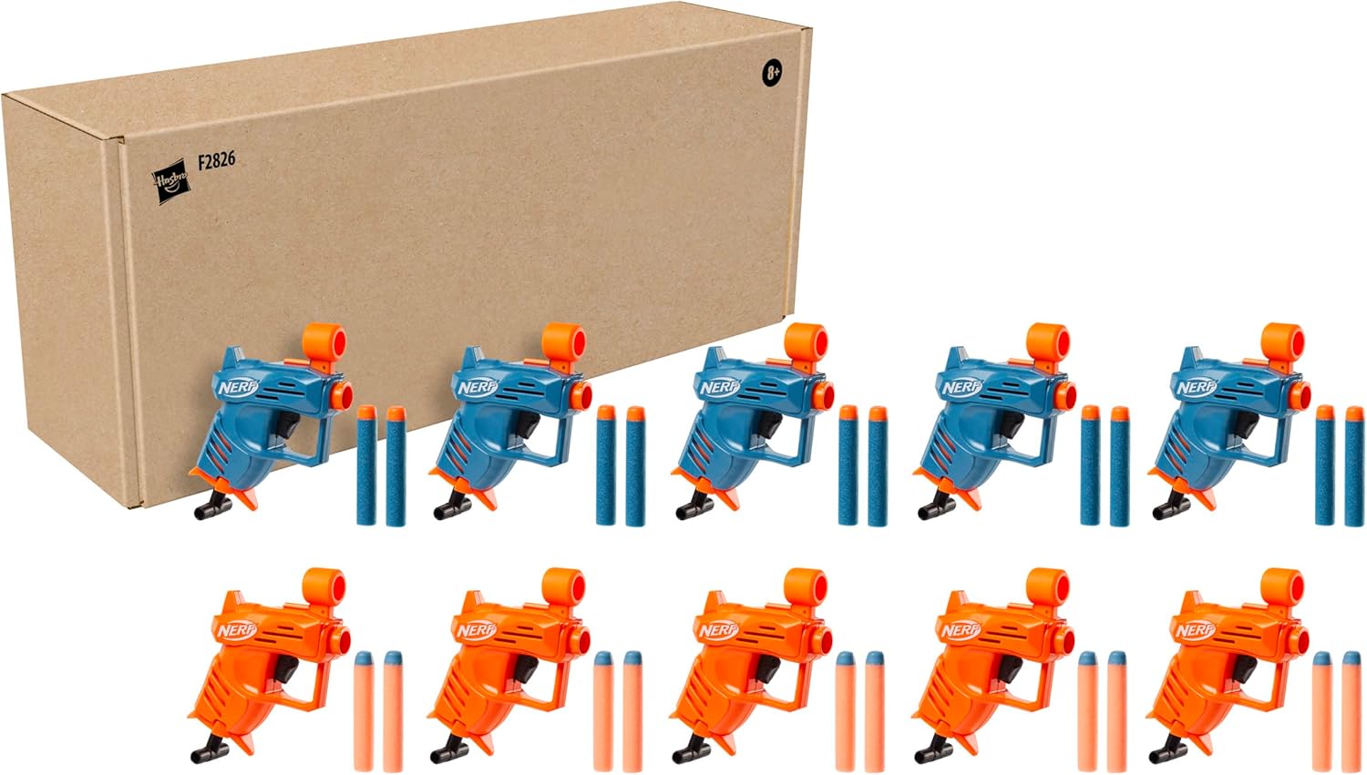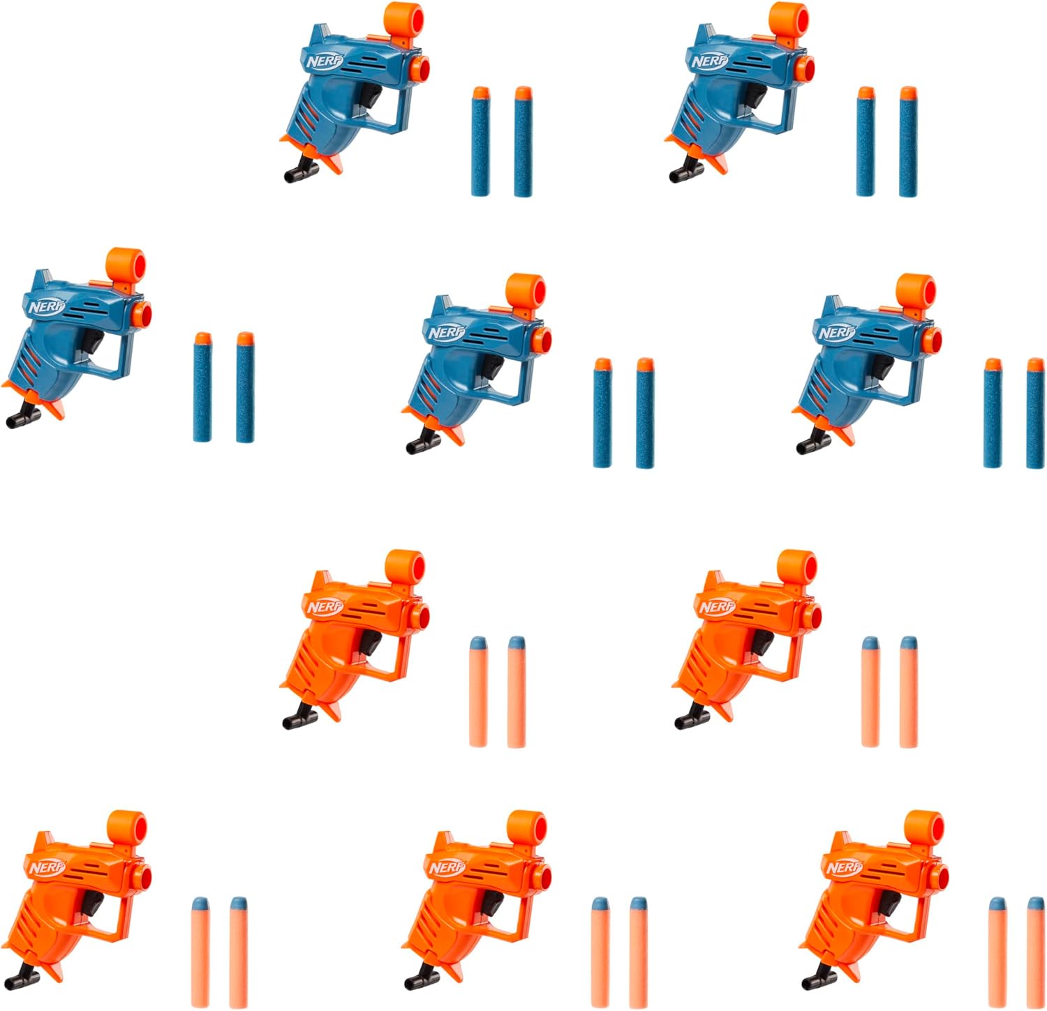NERF ELITE ACE SD-1 PARTY PACK CON 10 BLASTER E 20 DARDI ORIGINALI NERF ELITE: questo incredibile set è perfetto da regalare e da portare alle feste e offre tantissimo divertimento in sfide Nerf con più giocatori CARICAMENTO, ARMAMENTO E LANCIO FACILI: questi blaster sono facili da usare, così chiunque può unirsi al divertimento! Carica 1 dardo nella parte anteriore della canna, tira indietro l'impugnatura di armamento e premi il grilletto per lanciare il dardo OGNI BLASTER INCLUDE UN MIRINO: ciascun blaster è dotato di un mirino che puoi usare per prendere la mira. Ogni mirino presenta un alloggiamento integrato per 1 dardo 2 DIVERSI COLORI: questi blaster sono disponibili in 2 diversi colori (10 per ogni colore), così puoi dividerli per squadra. Scegli una quadra e lanciati in un'emozionante sfida Nerf CONFEZIONE SOSTENIBILE: venduto in una semplice confezione riciclabile, facile da aprire senza sforzi