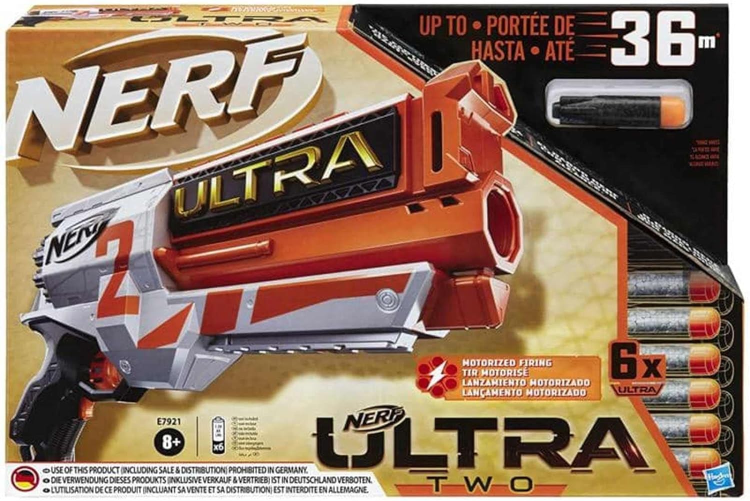 Il massimo dei blaster di dardi nerf: prova la distanza, la precisione e la velocità estreme dei blaster nerf ultra, progettati con caratteristiche avanzate per portare il tuo gioco nerf a un livello più alto I dardi nerf sono i dardi nerf che volano più lontano che mai: i dardi nerf ultra volano fino a 36 metri (120 piedi); le distanze sono basate su test controllati; le prestazioni effettive possono variare Blaster motorizzato nerf ultra two con retrocarica rapida: il cilindro con 6 dardi è aperto sulla parte posteriore - rivolto verso di te mentre impugni il blaster -- per permetterti di ricaricarlo rapidamente; funziona solo con i dardi nerf ultra 6 dardi nerf ultra: include 6 rivoluzionari dardi nerf ultra che presentano un'innovativa punta aerodinamica, tecnologia aerofin, e leggerissima gommapiuma nerf ultra; funzionano solo con i blaster nerf ultra E scopri anche il Blaster motorizzato Nerf Ultra One per sfide incredibili con i tuoi amici!