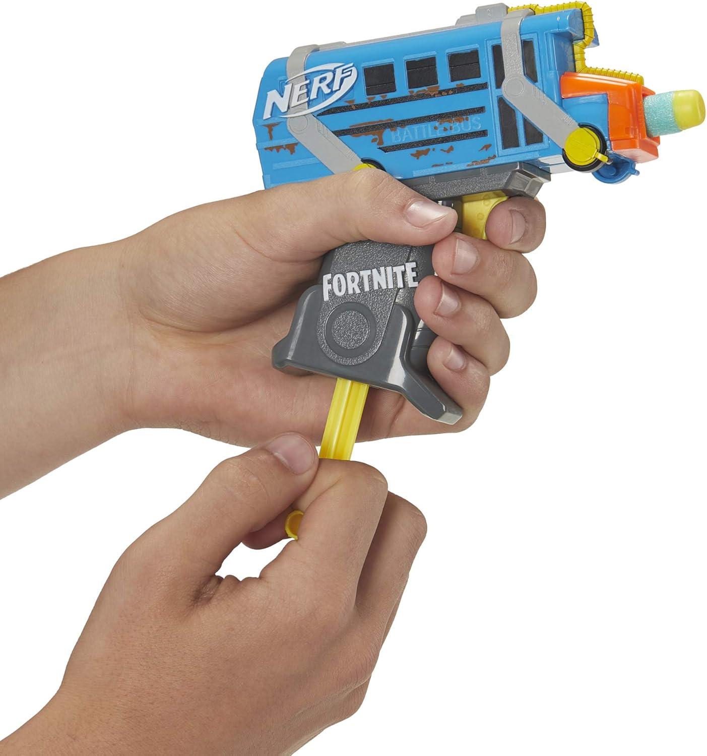 MICROLANZATORE BATTAGLIA DI FORTNITE: Questo mini lanciatori della serie MicroShots di Nerf si ispira all'iconico bus da battaglia del noto videogioco, Fortnite Battle Royale DESIGN COMPATTO: I lanciatori da collezione della serie MicroShots di Nerf riproducono l'aspetto dei lanciatori originali e, in questo caso, del bus da battaglia, ma con un design compatto molto originale Include 2 freccette e le lancia uno in uno: questo lanciatore viene fornito con 2 freccette Nerf Elite ufficiali e li lancia uno alla volta: Inoltre, è un lanciatore manuale (non sono necessarie batterie) PARTE FORMA DELLA SERIE COLLEZIONABILE MICROSHOTS: Questo lanciatore appartiene alla serie MicroShots di microlanciatori di freccette collezionabili