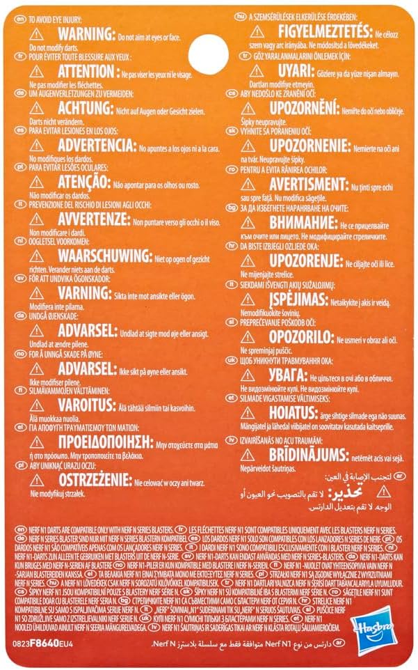 BLASTER E DARDI NERF N SERIES: prova PRECISIONE, VELOCITÀ e DISTANZA ESTREME con i blaster ad alte prestazioni Nerf N Series e i rivoluzionari dardi Nerf N1 N Series. Aumenta il livello della sfida con la migliore esperienza di lancio offerta da Nerf EMOZIONI INCREDIBILI: le battaglie Nerf non saranno più le stesse quando entrerai in azione con i nuovi dardi Nerf N1 che volano veloci e lontani e portano la precisione a un livello completamente nuovo CONTIENE 20 DARDI NERF N SERIES N1: costruisci la tua scorta di dardi con questa confezione di ricarica da 20 dardi N1. Compatibili esclusivamente con i blaster Nerf N Series PREPARATI A RICARICARE: grazie al maggior numero di dardi nella tua scorta, puoi facilmente prenderne subito una manciata e ricaricare rapidamente CARICA I DARDI NEI BLASTER NERF N SERIES: preparati a vivere un'emozione da lancio di dardi con i blaster Nerf N Series, compatibili con i dardi Nerf N1. Blaster venduti separatamente, secondo disponibilità
