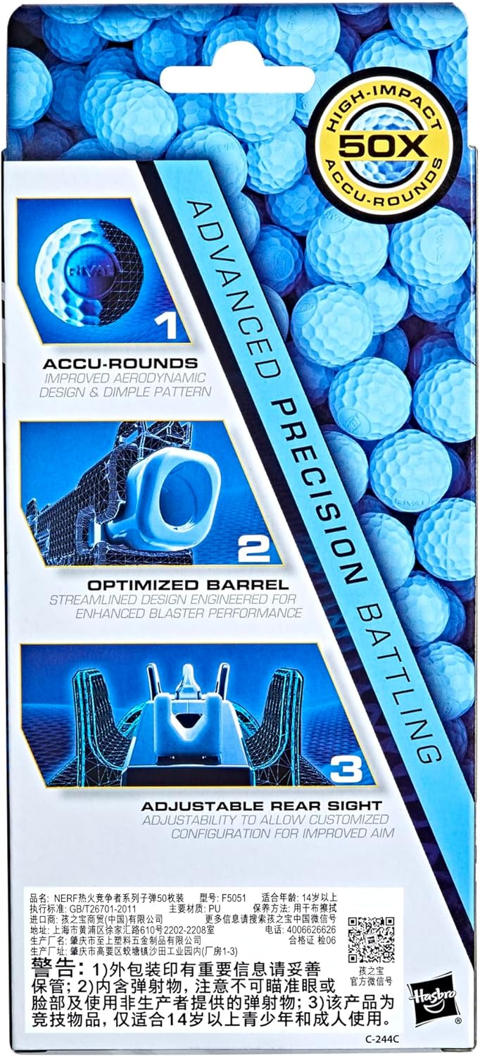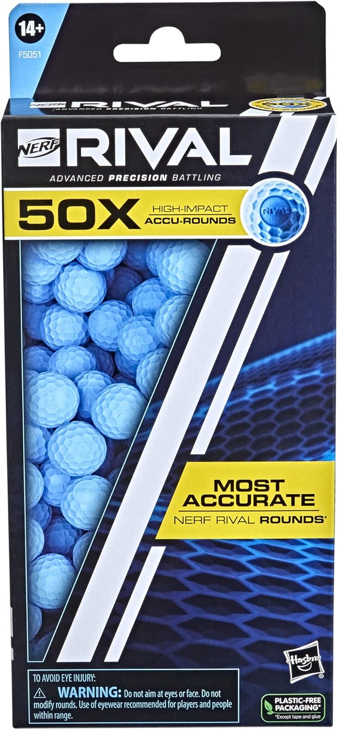 I round più accurati di Nerf Rival: questi cerchi Nerf Rival Accu-Rounds presentano un design aerodinamico migliorato e un motivo a fossette per fornire un volo più coerente PARTE DEL SISTEMA NERF RIVAL PIÙ ACCURATO: i blaster Nerf Rival hanno mirini regolabili, canne ottimizzate e Nerf Rival Accu-Rounds (blaster venduti separatamente, in base alla disponibilità) Parte del sistema NERF RIVAL più accurato**: i blaster Nerf Rival hanno mirini regolabili, canne ottimizzate e Nerf Rival Accu-Rounds (blaster venduti separatamente, in base alla disponibilità) I round più accurati di Nerf Rival*: questi Nerf Rival Accu-Rounds presentano un design aerodinamico migliorato e un modello a fossette per fornire un volo più coerente