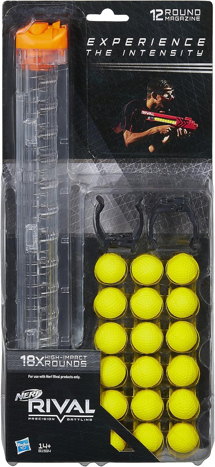 La rivista Nerf Rival contiene 12 round Funziona con blaster Zeus MXV-1200 o Apollo XV-70 (venduti separatamente) Precisione e potenza Viene fornito con 18 round Nerf Rival Produttore: Hasbro