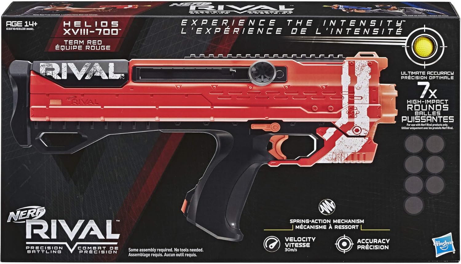 Potente Blaster: il Nerf Rival Helios Blaster ha una portata massima di 30,5 m per un divertimento duraturo. Colore rosso vivace: il design rosso e nero del blaster aggiunge un divertente tocco di colore. Calcio regolabile: il blaster ha un calcio regolabile che può essere personalizzato per adattarsi al comfort del bambino. Leggero e portatile: pesa solo 0,7 kg, il blaster è facile da trasportare per i bambini. Sicurezza garantita: il Nerf Rival Blaster utilizza freccette in schiuma morbide ma potenti, garantendo la sicurezza per i bambini.