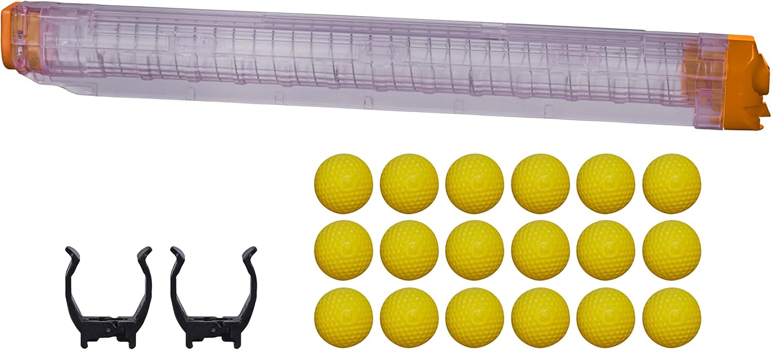 La confezione di ricambio include 18 ricariche ad alto impatto Include un tamburo da 12 ricariche Compatibile con i lanciatori Nerf Rival Zeus MXV-1200 e Apollo XV-700 2 clip aggiunte alle rotaie tattiche dei lanciatori Nerf Rival Confezione di ricambio Nerf Rival