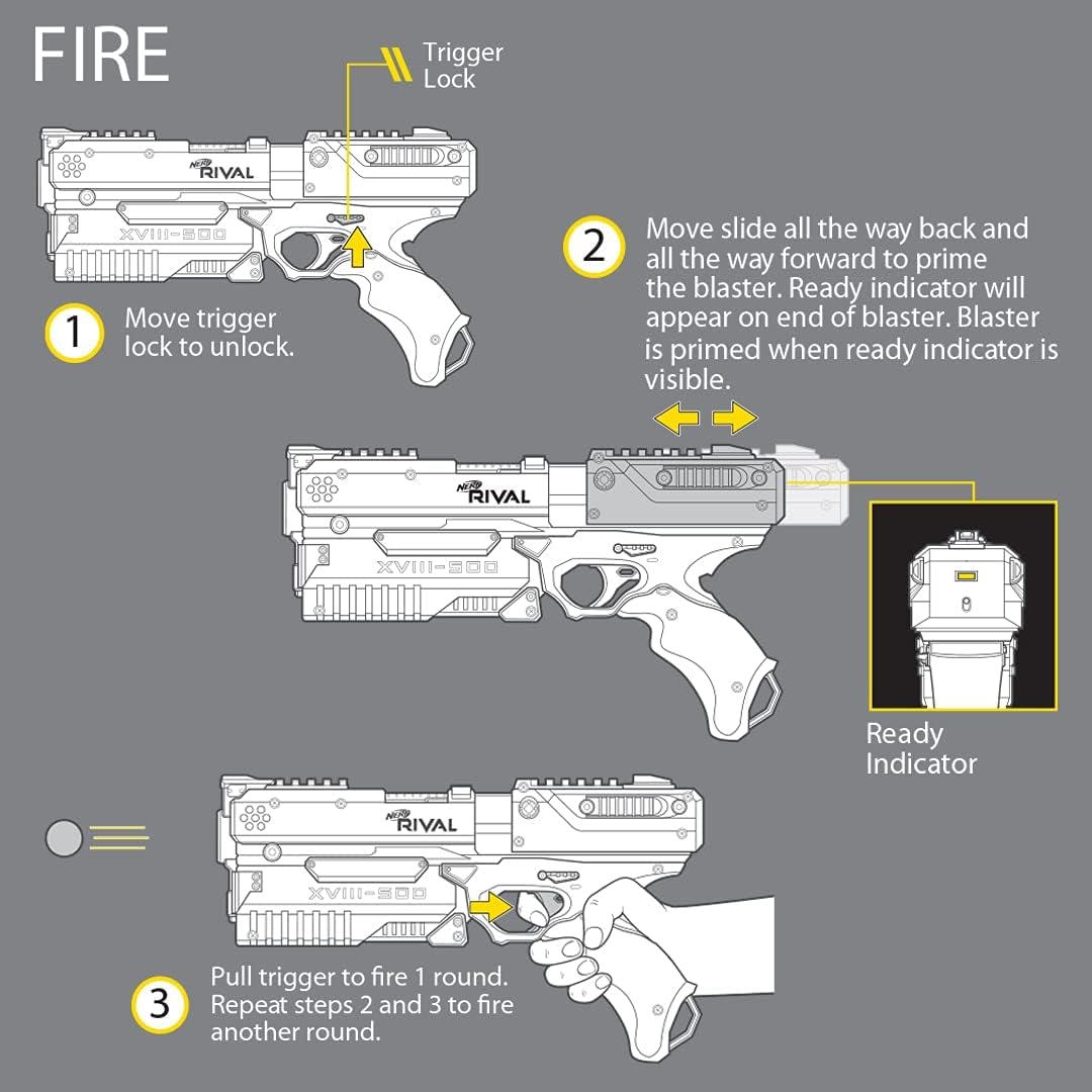 NERF RIVAL KRONO XVIII-500 BLASTER CON DESIGN ESCLUSIVO COLORE BIANCO AMAZON: Questo blaster Nerf Rival presenta uno speciale design di colore bianco esclusivo di Amazon Il blaster a carico di culatta include 5 giri: il blaster Nerf Rival Kronos XVIII-500 ha una capacità di 5 colpi e viene fornito con 5 round ufficiali Nerf Rival Spara a una velocità di 90 piedi al secondo: questo blaster a molla spara colpi a una velocità di 90 piedi al secondo per affrontare la squadra avversaria in partite ad alta intensità Lucchetto a grilletto e guida tattica: include un blocco a grilletto per evitare colpi accidentali e binario tattico da personalizzare con accessori Nerf Rival (ciascuno venduto separatamente) IMBALLAGGIO SOSTENIBILE: Spedito in un imballaggio semplice e riciclabile, facile da aprire e senza frustrazione