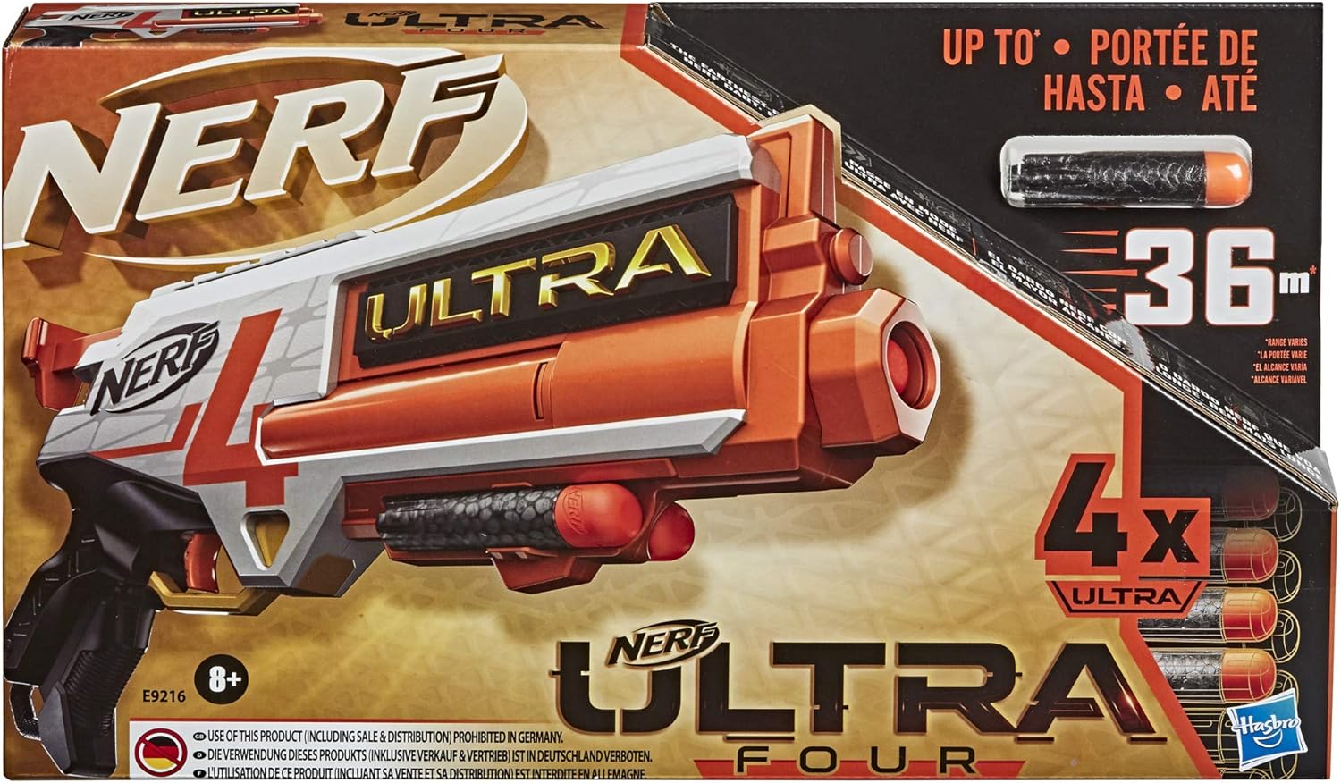 Il massimo in Nerf Dart Blasting: prova estrema distanza, precisione e velocità con i blaster Nerf Ultra progettati con funzionalità avanzate per portare i tuoi giochi Nerf al livello successivo NERF Le freccette Ultra sono le freccette Nerf più lontane di sempre: salta nella superiorità rivoluzionaria con le freccette Nerf Ultra, le freccette Nerf più lontane di sempre, fino a 36 metri NERF Ultra quattro blaster: carica frontale una freccetta, tirare indietro la maniglia di innesco e premere il grilletto per sparare. Spazio per due freccette. Il blaster funziona solo con freccette Nerf Ultra 4 freccette Nerf Ultra: include quattro rivoluzionarie freccette Nerf Ultra che presentano un'innovativa punta di volo, tecnologia Aerofin e schiuma Nerf Ultra leggera. Funzionano solo con blaster Nerf Ultra