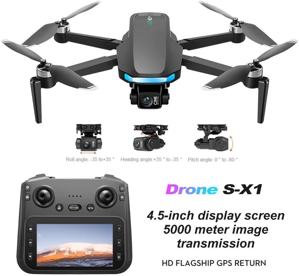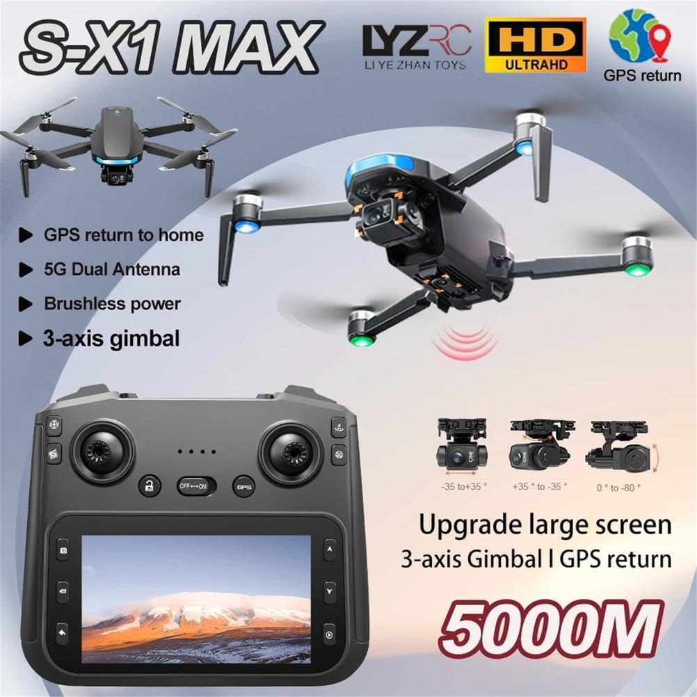 [Scatena una straordinaria visione aerea 8K]Migliora la tua fotografia con il drone X-S1 MAX. Cattura video HD 8K incredibilmente nitidi e foto ad alta risoluzione oltre 6 milioni di pixel grazie alla sua potente fotocamera con gimbal a 3 assi e all'ampio sensore da 2/3 di pollice. Vivi riprese fluide e stabili grazie alla stabilizzazione elettronica dell'immagine EIS ed esplora prospettive creative con lo zoom ottico 5X: il tuo strumento essenziale per la fotografia aerea professionale. [Vola con precisione e guarda in diretta sullo schermo da 4,5"]Assumi il pieno controllo con lo schermo integrato da 4,5 pollici del radiocomando. Goditi una visione chiara e in tempo reale senza bisogno del telefono. Approfitta dei robusti motori brushless per un volo potente ed efficiente e dell'affidabile sistema laser di aggiramento ostacoli per una maggiore sicurezza durante le tue avventure di fotografia aerea. Il display intuitivo mette il controllo a portata di mano. [Volo prolungato e prestazioni affidabili]Goditi fino a 25 minuti di volo grazie alla batteria rimovibile ad alta capacità da 7,4 V e 4500 mAh. Il drone con motore brushless offre prestazioni impressionanti con una velocità massima di salita di 7 m/s e di discesa di 3 m/s. Il suo design leggero da 350 g ne migliora l'agilità e la portabilità, rendendolo il tuo compagno perfetto per il **drone con fotocamera**. [Esperienza di volo fluida e sicura] Naviga in tutta sicurezza grazie al rilevamento omnidirezionale completo e all'avanzata tecnologia laser di aggiramento ostacoli. Protezione elica integrata Aggiunge un ulteriore livello di protezione. Sperimenta una trasmissione di immagini digitali stabile e nitida fino a 2,7 km utilizzando le frequenze a 2,4 GHz e 5 GHz, garantendo una connessione affidabile per le riprese HD del tuo drone**. [Funzionalità di livello professionale in un drone compatto]X-S1 MAX combina funzionalità professionali come lo zoom ottico 5x, un obiettivo con campo visivo ampio di 110° e la capacità di registrare video HD 8K in un drone con motore brushless straordinariamente leggero da 350 g. Il radiocomando con schermo da 4,5 pollici incluso offre un controllo diretto, rendendolo un drone eccezionale per la fotografia aerea, pronto per scatti mozzafiato fin da subito. Certificato di sicurezza CE.