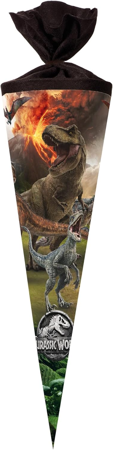 Nestler Set di sacchetti per la scuola da riempire, sacchetto di zucchero fatto a mano, in cartone, motivo Jurassic World, sacchetto per la scuola, protezione in pizzo, fiocco (verde, 70 cm rotondo)