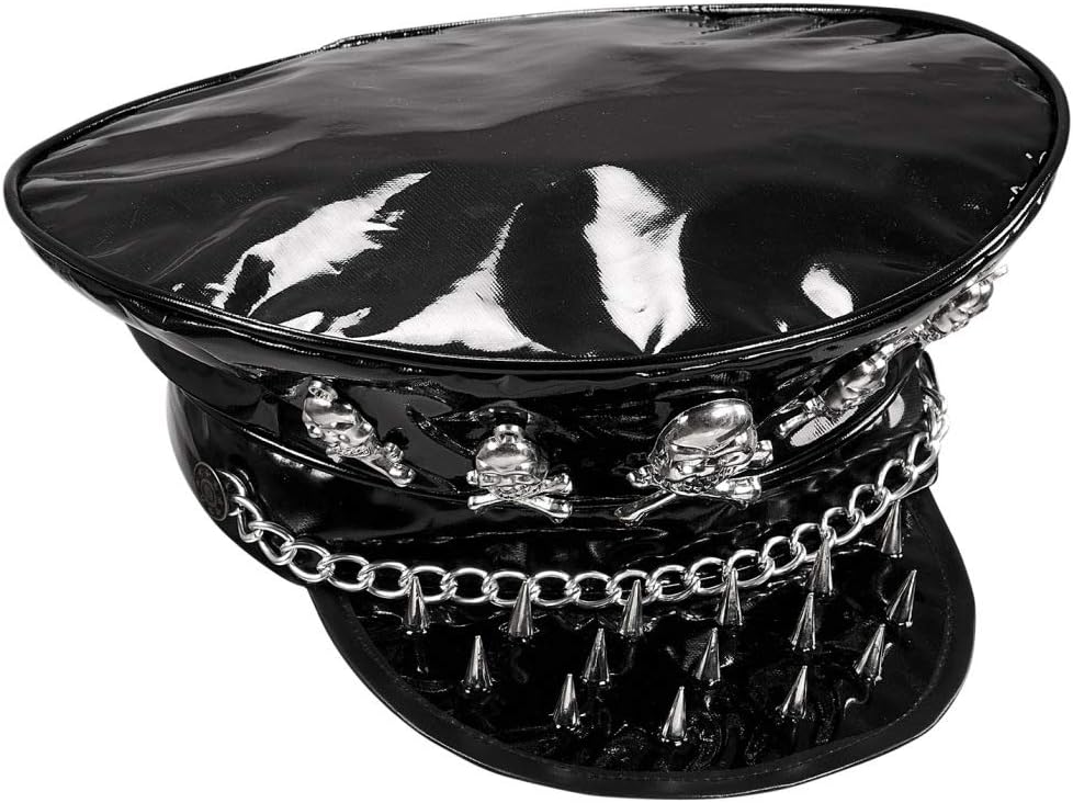 Taglia: Taglia unica per adulti, Colore: nero-argento, Materiale: 90% poliuretano, 10% poliestere Fornitura: 1 cappello Berretto da rock star in stile anni Ottanta Berretto hard rock con teschi Perfettamente vestito per feste a tema e carnevali