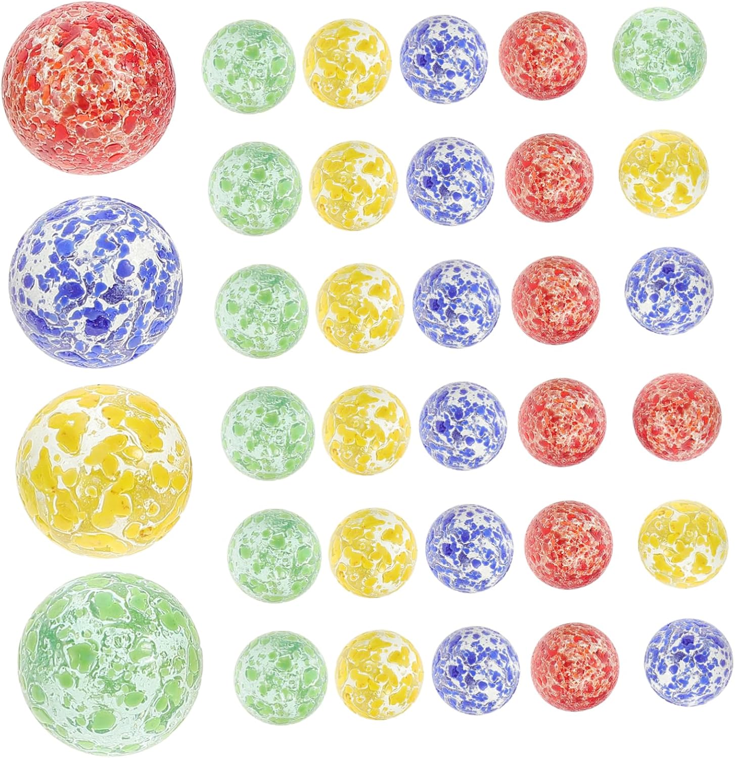 Al netto di 20 Biglie e 1 Calot. Ideale per divertirsi nel parco giochi. Riporta in vita i tuoi figli o nipoti con i tuoi vecchi giochi. Una rete è composta da 20 perle di vetro da 16 mm e un cappuccio da 25 mm. Perline di qualità superiore, prodotte in Messico. Materiale: 100% vetro. Colore: Oro perlato decorato con linee astratte gialle. Altri modelli di palline disponibili nel nostro negozio.