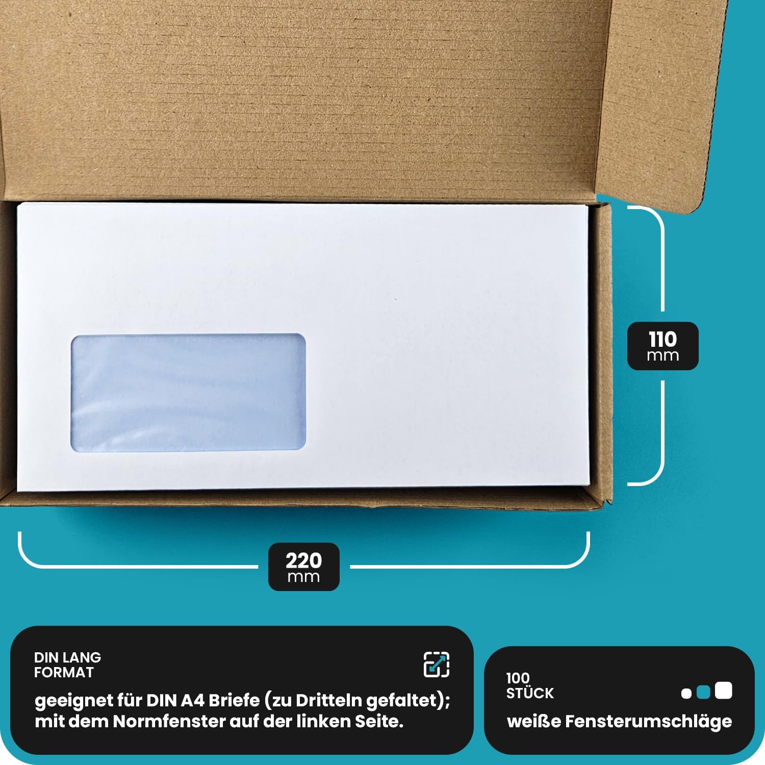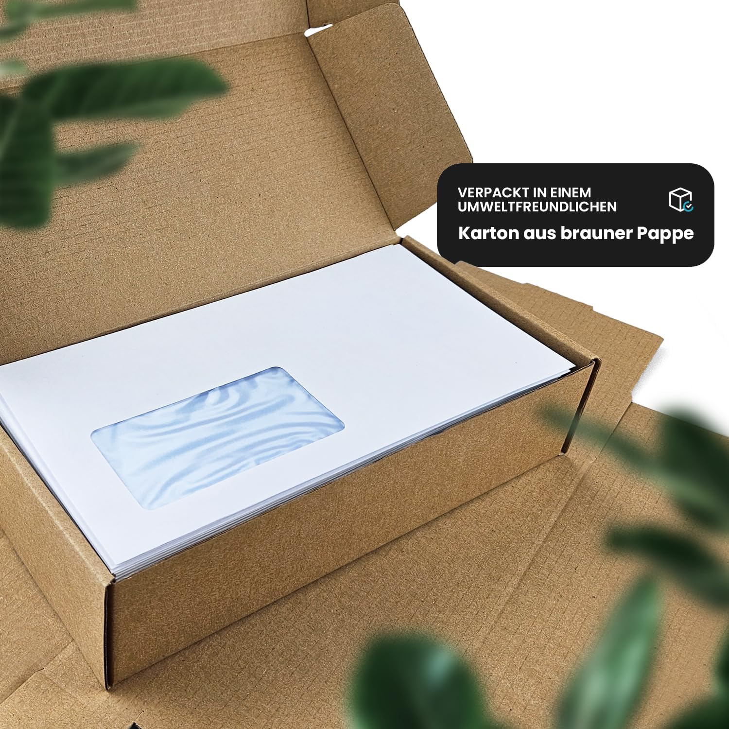 DIMENSIONE CORRETTA – Formato lungo (americano): 110 x 220 mm, progettato per alloggiare un foglio A4 piegato in tre parti uguali. Finestra standard sul lato sinistro. ALTA QUALITÀ – Carta premium 80 g/m² con stampa interna blu per non permettere la lettura del contenuto dall’esterno. Perfette per spedire lettere e documenti riservati. FACILE DA CHIUDERE – Lembo dritto con strip adesivo ( per queste buste è sufficiente rimuovere lo strip che è presente sul lembo per chiudere la busta senza difficoltà. UTILIZZO UNIVERSALE – Per corrispondenza commerciale (lettere, documenti, fatture, offerte, volantini). La finestra è ideale per mostrare facilmente il destinatario. CONSEGNA – 100 buste lettera bianche con finestra (imballate in scatole di cartone ecologico marrone).