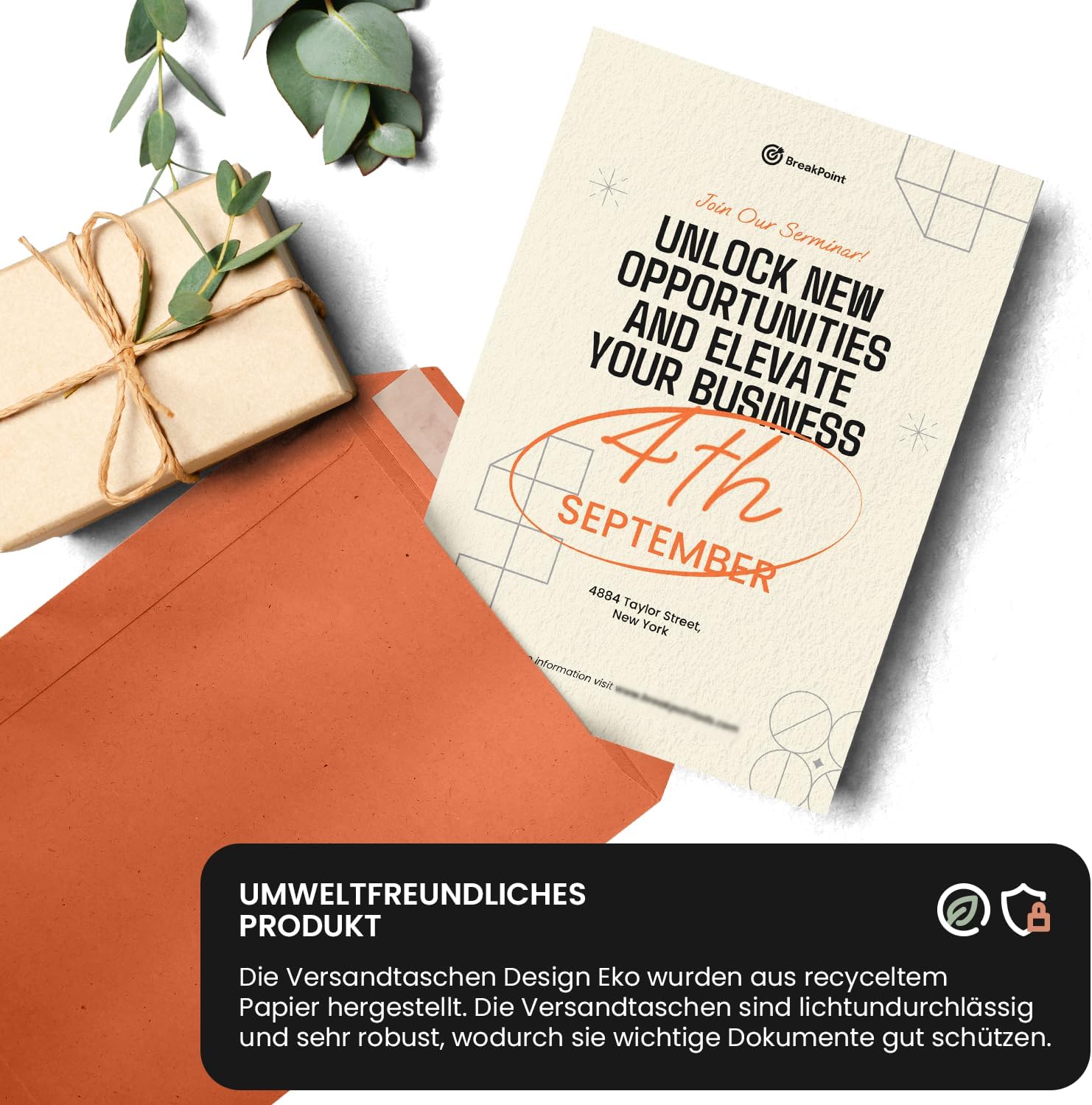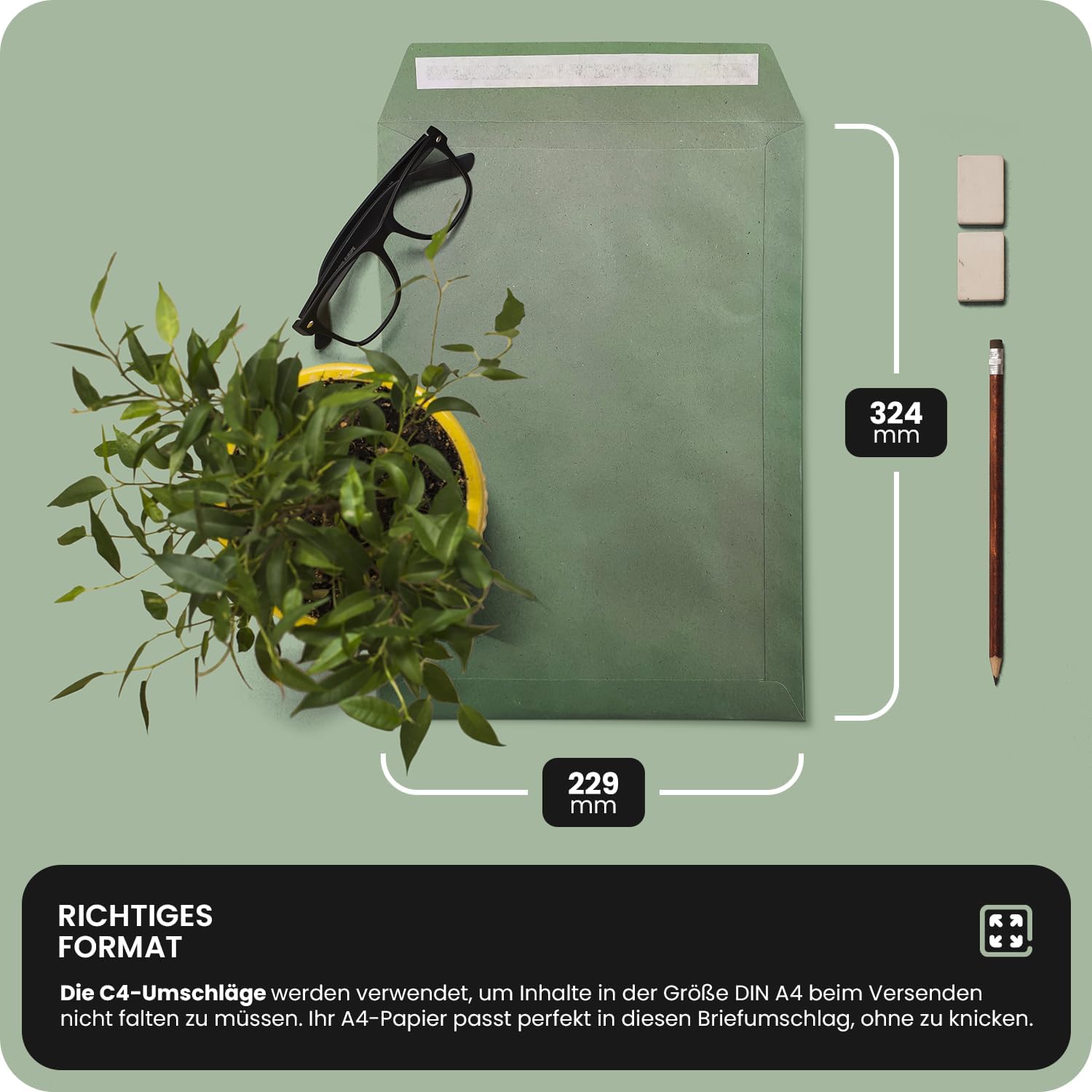 FORMATI BUSTE – A seconda delle vostre esigenze, dovete scegliere la giusta dimensione della busta. Buste C4 sono perfette per conservare fogli in formato A4 senza doverli piegare. Sono pensate per l'invio di documenti di lavoro, contratti, certificati, dépliant o riviste. PRODOTTO ECOLOGICO – Le buste Design Eko sono realizzate in carta riciclata Design Eko. La carta ecologica colorata in massa conferisce alle buste un carattere rustico e naturale. Le buste sono opache e molto robuste, quindi proteggono bene i documenti importanti. COMODE E RESISTENTI – A differenza delle buste normali, le buste a sacco si aprono sul lato corto. Sono più capienti e molto utili per spedire varie tipologie di documenti di grande formato (A4 e A5). Le nostre buste riciclate sono dotate di pratica chiusura a strip adesivo. AMPIO ASSORTIMENTO – Sul nostro sito Amazon troverete una grande scelta di buste da lettera differenziate per dimensione, tipo di chiusura, tipo di carta, peso della carta e il colore. Offriamo anche carta e cartoncino e cartone in vari formati, grammature e finiture. CONSEGNA – 25 buste a sacco formato C4 (229x324mm) in carta riciclata Design Eko 110g; senza finestra, con chiusura a strip adesivo. Il colore del prodotto offerto può variare dalla visualizzazione del vostro monitor.