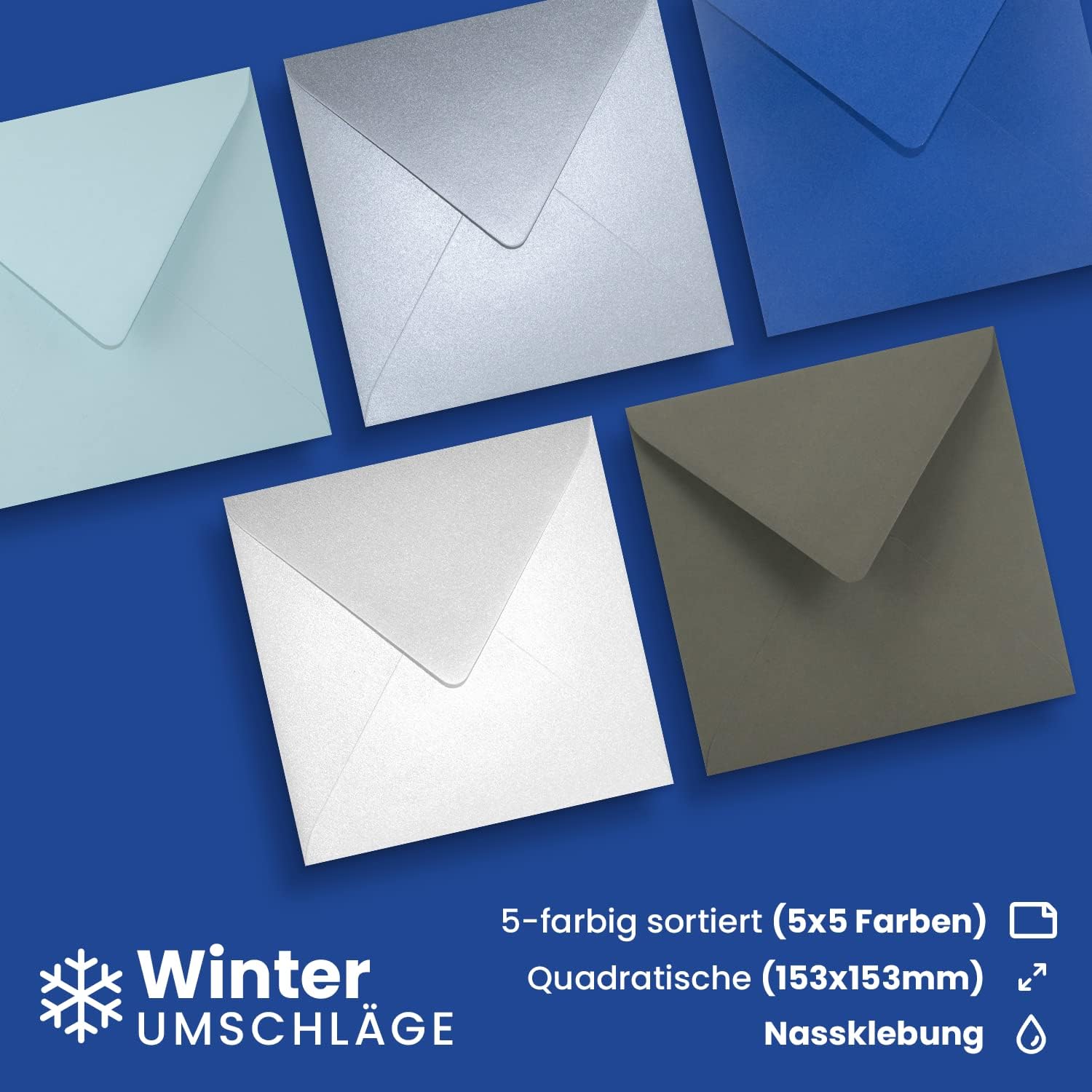 FORMATI BUSTE – A seconda delle sue esigenze, deve scegliere la giusta dimensione della busta. Le buste quadrate sono particolarmente eleganti, indicate per cartoline quadrate, flyers, inviti, biglietti di auguri, partecipazioni o CD. MIX DI COLORI – I nostri bellissimi set di buste contengono ciascuno 25 pezzi di buste colorate B6 con motivi diversi: Inverno, Primavera, Estate, Autunno, Natale o Natura. Le buste sono realizzate in carta colorata di alta qualità, certificata FSC, in varie finiture: opaca, lucida o satinata. PER CARDMAKING – Le buste colorate sono perfetti per creare inviti o biglietti auguri fai da te. Il pratico set è ideale per biglietti di Natale, biglietti di Pasqua, biglietti di ringraziamento o lettere personali. Le buste possono essere scritte con diverse penne o stampate con la stampante. GRANDE SCELTA – Nella nostra offerta Amazon troverà set di buste colorate ancora in altri formati e set di carte e cartoncini abbinati. Offriamo anche una vasta gamma di altre buste lettera e cartoncini in vari colori e dimensioni, adatti per ogni occasione e progetto. CONSEGNA – 25 buste quadrate (153x153mm), 5 colori assortiti (5x 5 colori diversi), certificate FSC, stampabili e scrivibili, lembo a punta, gommato; motivo: Inverno. Il colore del prodotto offerto può variare dalla visualizzazione del colore del vostro monitor.