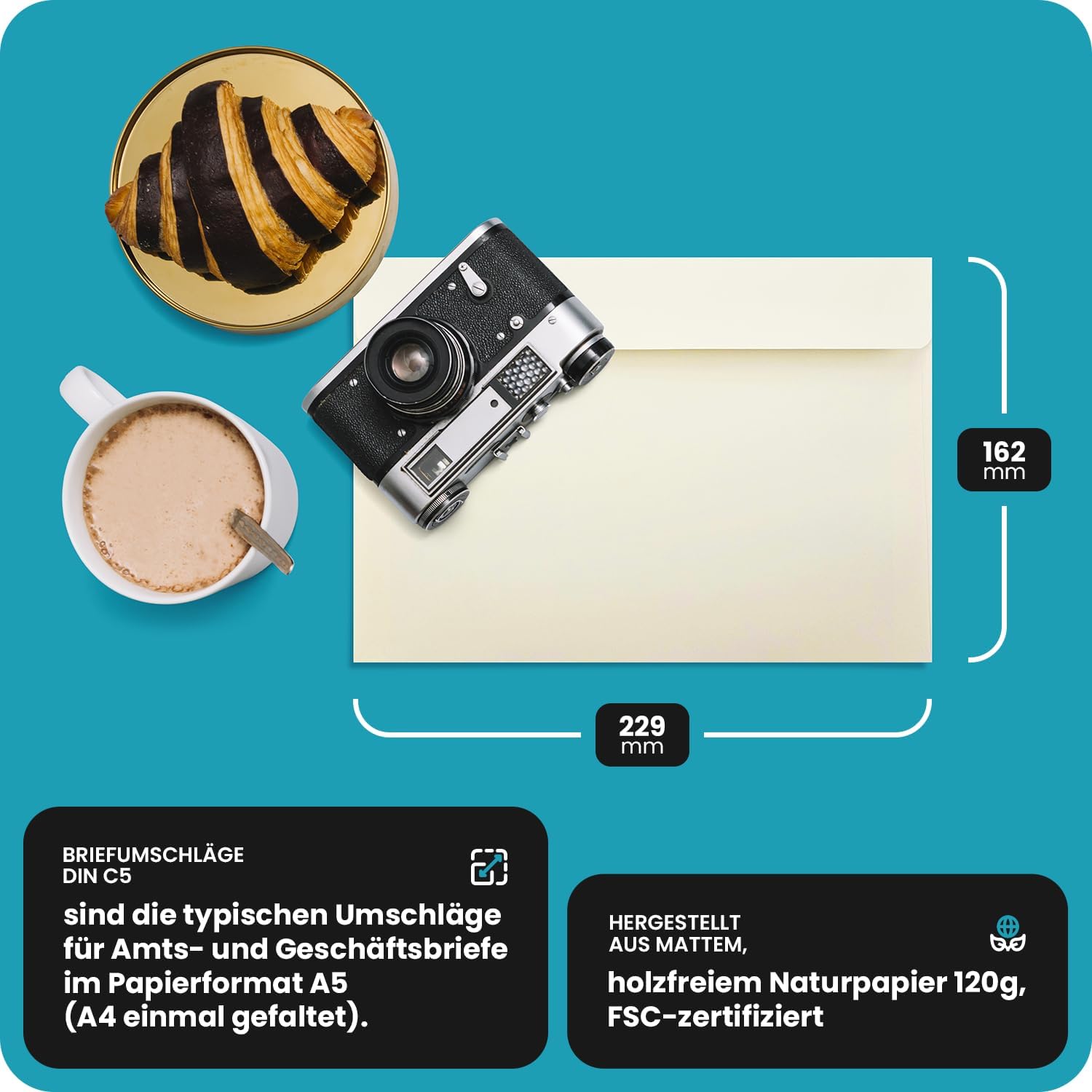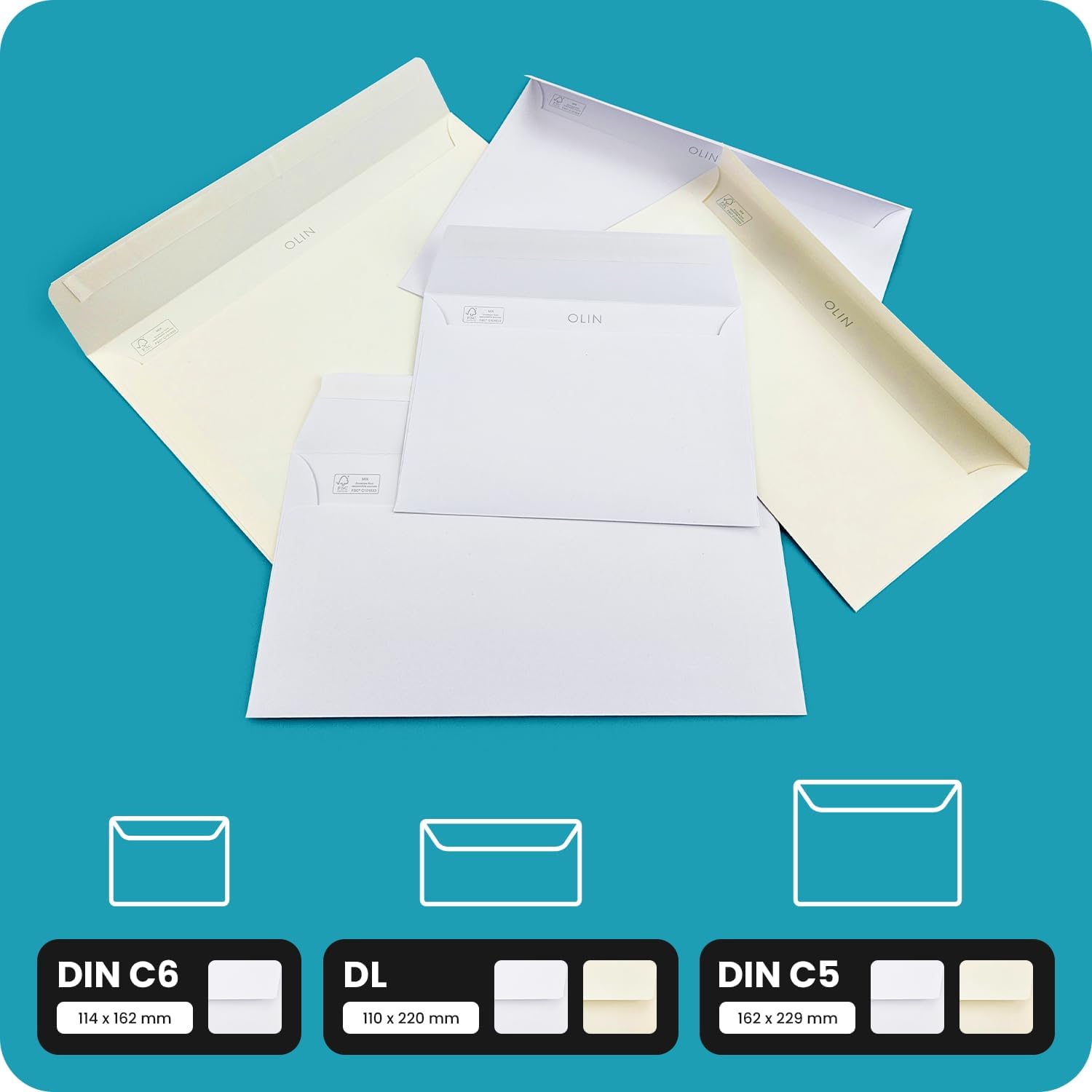 FORMATI BUSTE – A seconda delle vostre esigenze, dovete scegliere la giusta dimensione della busta. La busta C5, che equivale alle dimensioni di un foglio in formato A5 o un foglio A4, ripiegato a metà, è indicata per spedire carte A5. ALTA QUALITÀ – Le nostre buste Olin con marchio FSC e stampa OLIN sono l'opzione perfetta per tutti coloro che hanno a cuore l'ambiente. Inoltre, queste buste ecologiche hanno un aspetto particolarmente pregiato ed elegante. PER L'UTILIZZO QUOTIDIANO – Le buste in carta ecologica sono ideali per la corrispondenza quotidiana in ufficio o a casa. Sono perfette sia per comunicazioni ufficiali della vostra azienda che per i vostri messaggi personali. PER EVENTI SPEZIALI – Le eleganti buste in bianco o crema sono ideali per tutte le feste, dai battesimi, comunioni e cresime ai matrimoni e agli anniversari. Sono perfette per inviare biglietti di auguri, inviti e partecipazioni. DATI TECNICI – 25 buste C5 (162x229mm) senza finestra, lembo dritto con strip adesivo; realizzate in carta opaca non patinata senza legno Olin 120 g, certificata FSC, stampabile (con stampanti laser o inkjet).