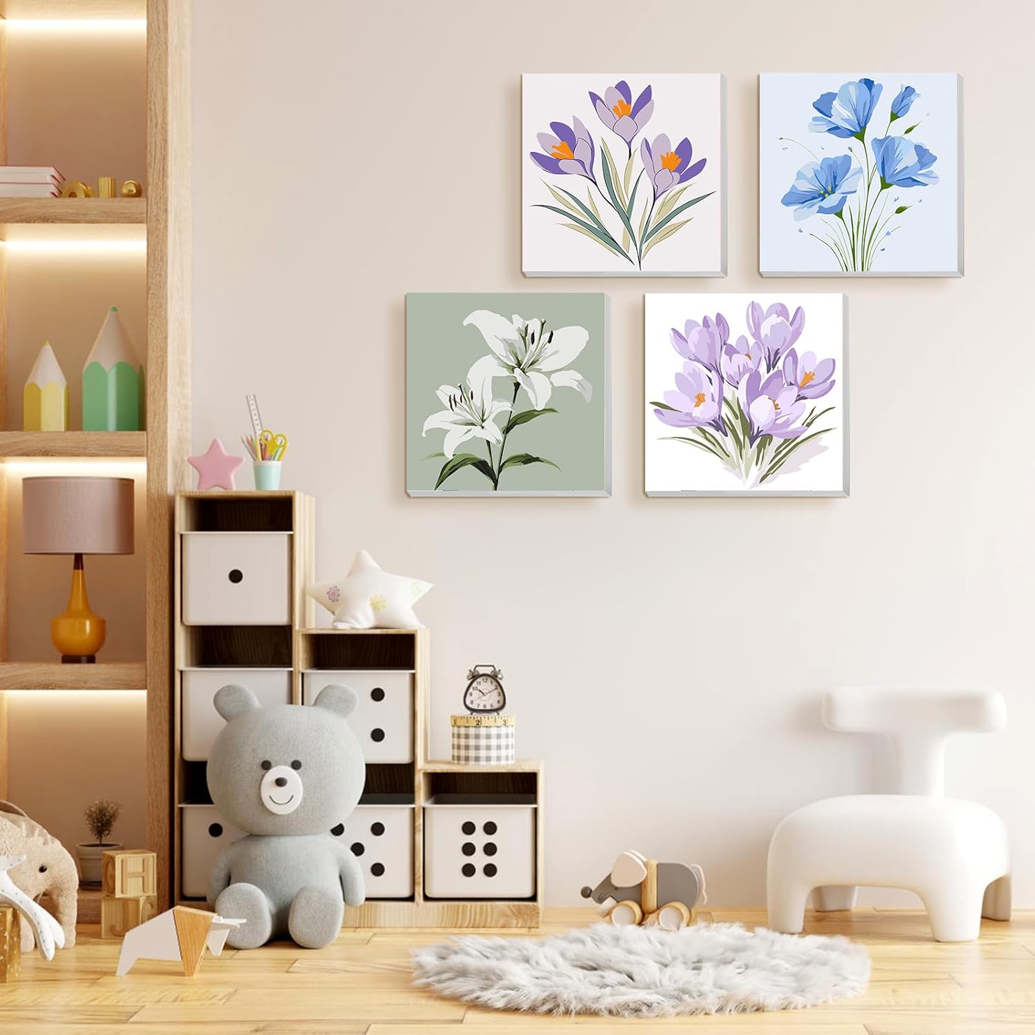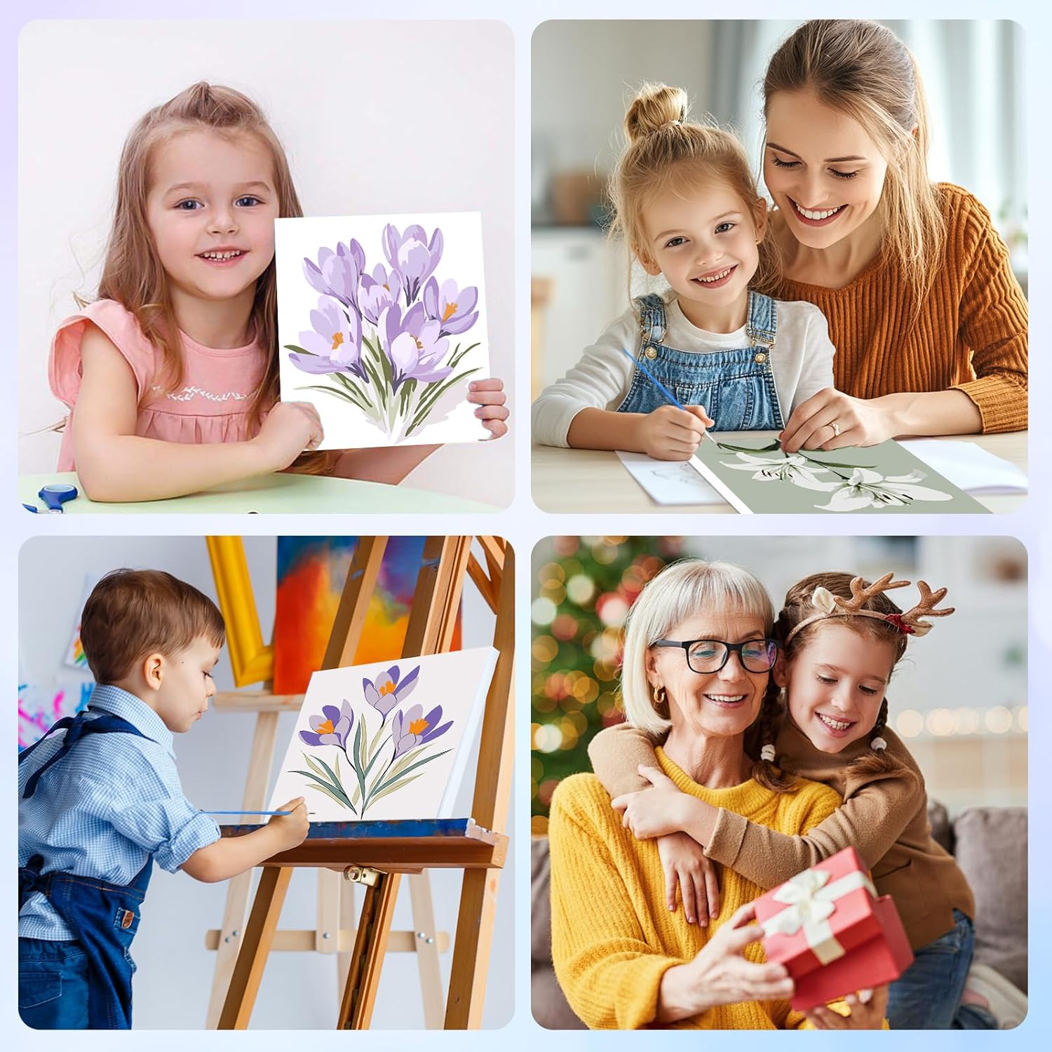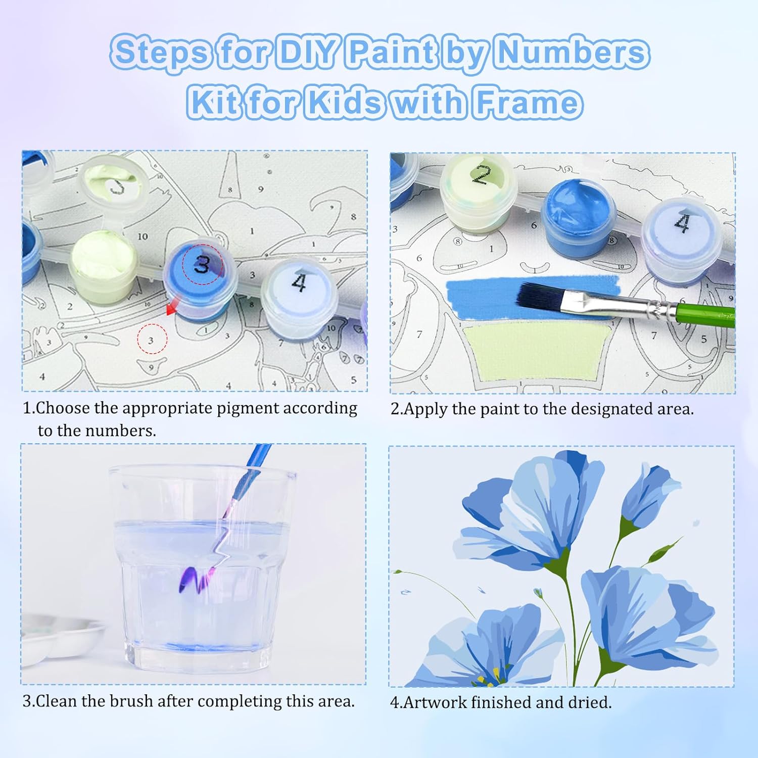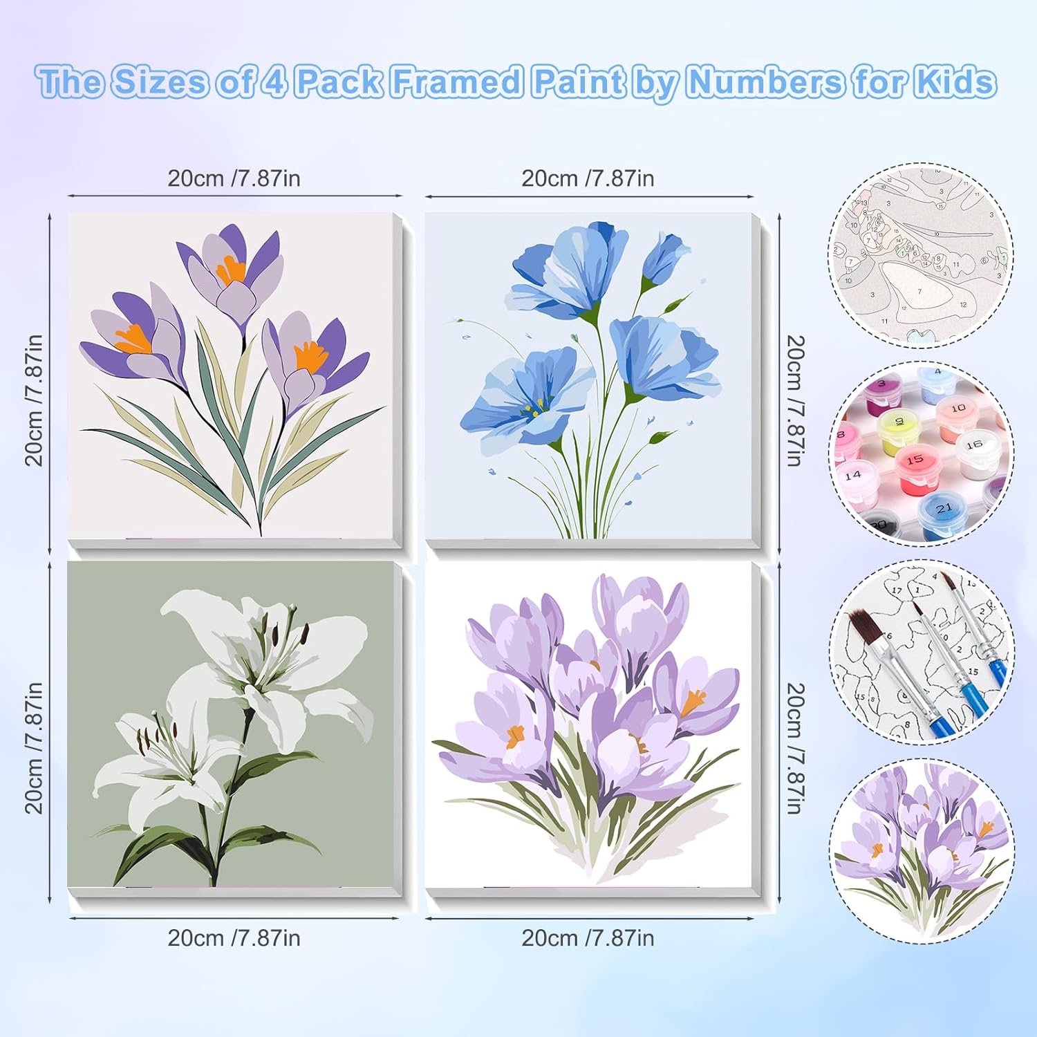 NEWENMO 4 Pezzi Dipingere con i Numeri Bambini con Cornice,Fiori Dipingi con i Numeri Bambini 6-8-12 Anni,DIY Paint by Numbers Kids,Kit di Pittura Acrilica per Decorazione Casa 20x20cm