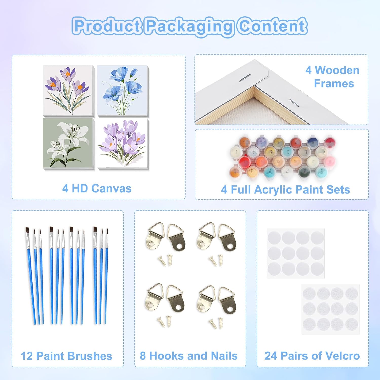 Contenuto della Confezione:Riceverai 4 kit di dipingere con i numeri bambini con cornice,ciascuno con 4 motivi diversi.In totale,la confezione include 4 tele HD prestampate (con cornice),12 pennelli,4 set di colori acrilici abbinati,8 ganci e chiodi,oltre a 24 paia di velcro. Facile da Usare:Design semplice,con numeri chiari prestampati sulla tela,colori confezionati separatamente,facili da applicare,comodi da usare in modo indipendente dai bambini. Facile da Iniziare:Non è necessaria alcuna esperienza di pittura.Basta colorare i numeri per completare facilmente la propria opera d'arte e godersi il divertimento della pittura a olio fai da te per bambini con cornice. Migliora la Percezione Artistica:Dipingere con i numeri bambini migliorare la pazienza,la coordinazione occhio-mano e l'alfabetizzazione artistica,stimolando al contempo la loro creatività e la loro attenzione per l'arte. Regalo Ideale:La dimensione del dipingere con i numeri per bambini con cornice in legno è di 20x20cm,molto adatta all'uso da parte dei bambini.È un regalo artistico creativo per bambini di età compresa tra 6-8-12 anni ed è anche comodo per esporre le opere a casa o a scuola.