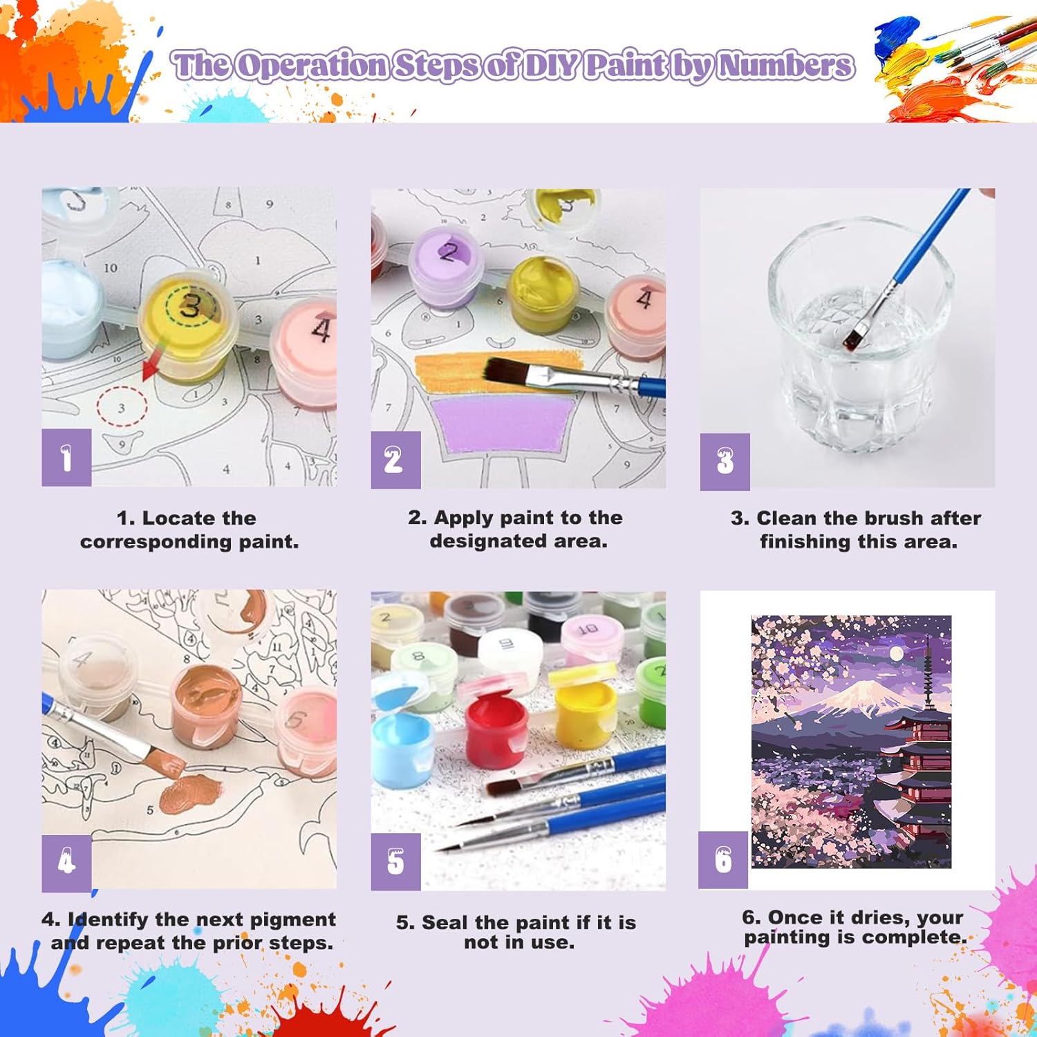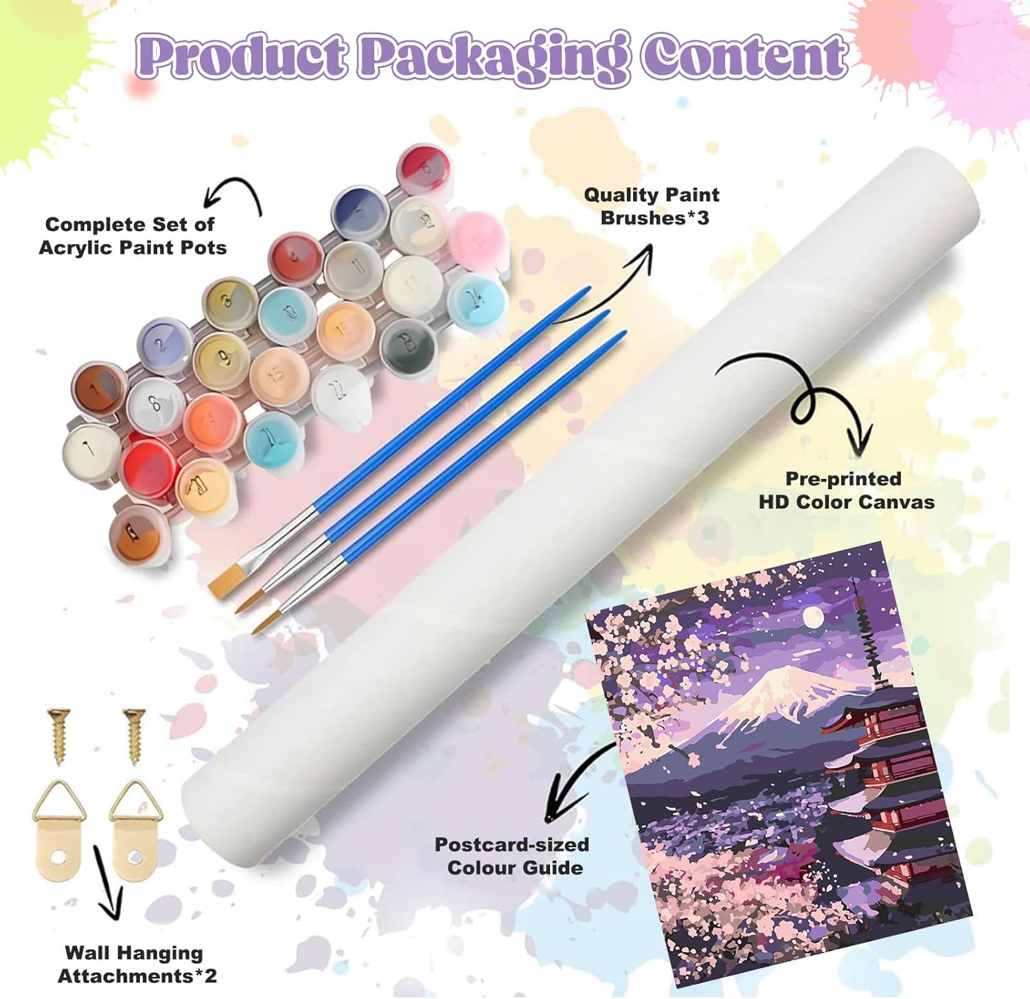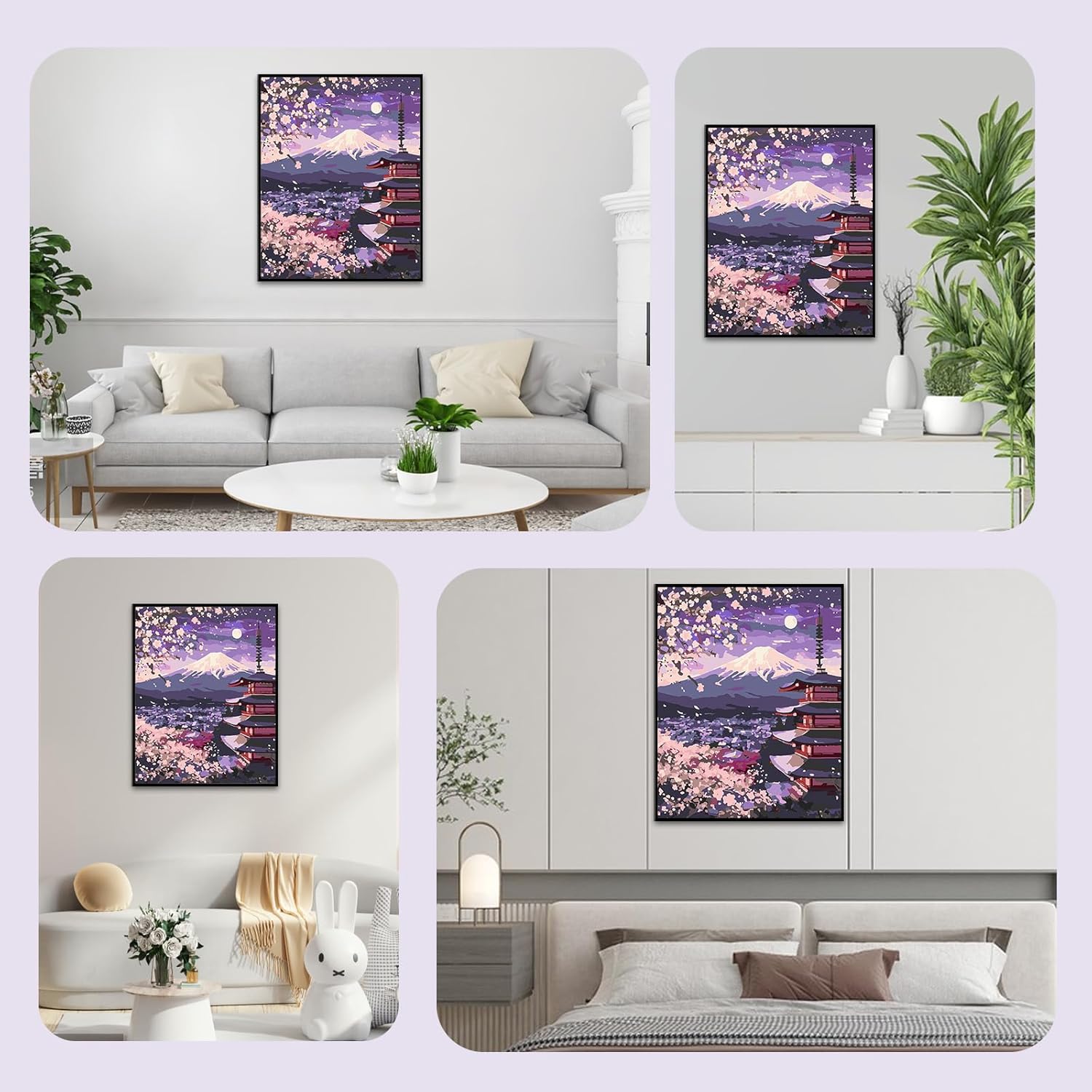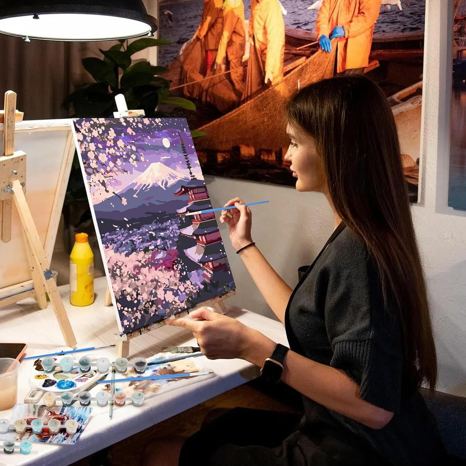 NEWENMO Monte Fuji e Tempio Dipingere con i Numeri Kit,Fiori di Ciliegio Paint by Numbers Adulti,Pittura con i Numeri,Dipingi con i Numeri Adulti,Kit di Pittura a Olio,Decorazione per Casa 40x50cm