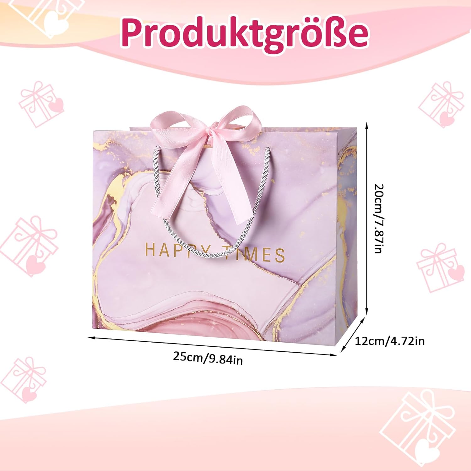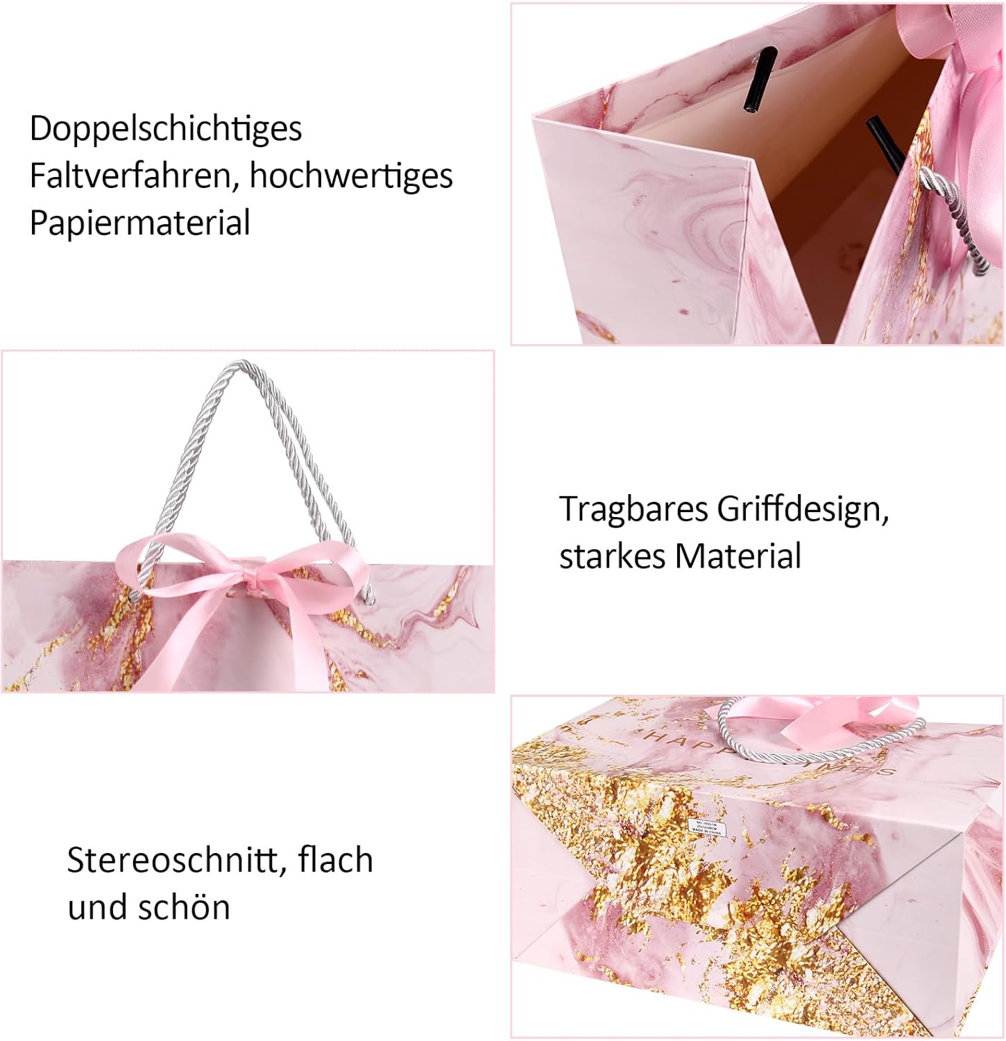 Materiale: i nostri sacchetti regalo sono realizzati in cartone, forte tenacità, buona capacità portante, durevoli, non facili da strappare, riutilizzabili. Dimensioni: la dimensione di ciascun sacchetto regalo è 25 x 20 x 12 cm, adatta per confezionare regali di dimensioni standard o di piccole e medie dimensioni. Il fondo della borsa regalo è rettangolare per consentire alla borsa regalo di stare in piedi. Design unico: la borsa regalo è progettata con un motivo marmorizzato e decorata con un nastro, che è elegante e bello; Utilizzando i nostri sacchetti regalo per incartare i regali puoi rendere i tuoi regali più squisiti e lussuosi. Sacchetti regalo multiuso: i sacchetti regalo sono adatti per compleanni, feste, matrimoni, Natale, Ringraziamento, Capodanno, festa della mamma, festa del papà, San Valentino e molte altre occasioni. Contenuto della confezione: riceverai tre diversi tipi di sacchetti regalo, che possono contenere regali, oggetti di artigianato, dessert, biscotti, caramelle, ecc.