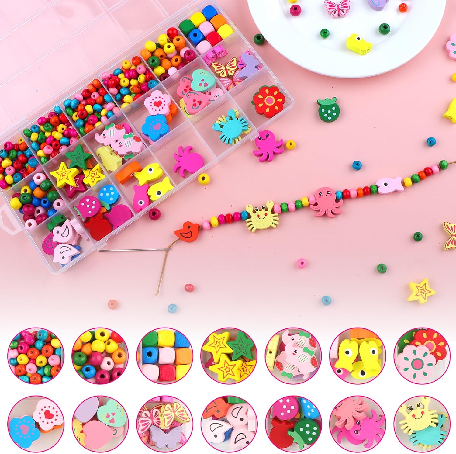 kit per Realizzare Braccialetti:550 perline colorate è realizzato in legno naturale, ci sono 18 forme diverse, tra cui perline rotonde, perline quadrate, perline a farfalla, perline a uccello, perline a forma di fiore, ecc.È molto adatto ai bambini di età superiore ai 5 anni per creare braccialetti e collane unici Stimola la Creatività: I perline collane fai da te bambini vari colori e motivi possono essere combinati e abbinati liberamente (con una corda di perline lunga 1,8 metri), che può coltivare le capacità motorie fini e l'abilità estetica dei bambini, stimolare l'immaginazione e la creatività dei bambini Migliora l'interazione Genitore-figlio:Questi colorati beads sono molto adatti ai genitori per realizzare collane, braccialetti, cavigliere e altre decorazioni con i loro figli, ridurre il tempo di guardare prodotti elettronici, migliorare l'interazione genitore-figlio e avvicinare il rapporto genitore-figlio Facile da Riporre:Kit creazione gioielli bambina classificati e conservati in una scatola di plastica trasparente con 18 scomparti, i bambini possono trovare rapidamente perline di legno di diverse forme quando realizzano braccialetti fai da te Regalo Bambina 5 Anni Perline:Bambini possono combinare liberamente diverse collane e bracciale, è un regalo ideale per la giornata dei bambini per le ragazze da parte dei genitori e gli insegnanti dell'asilo possono anche usarlo come ricompensa regalo o insegnamento di lezioni di artigianato