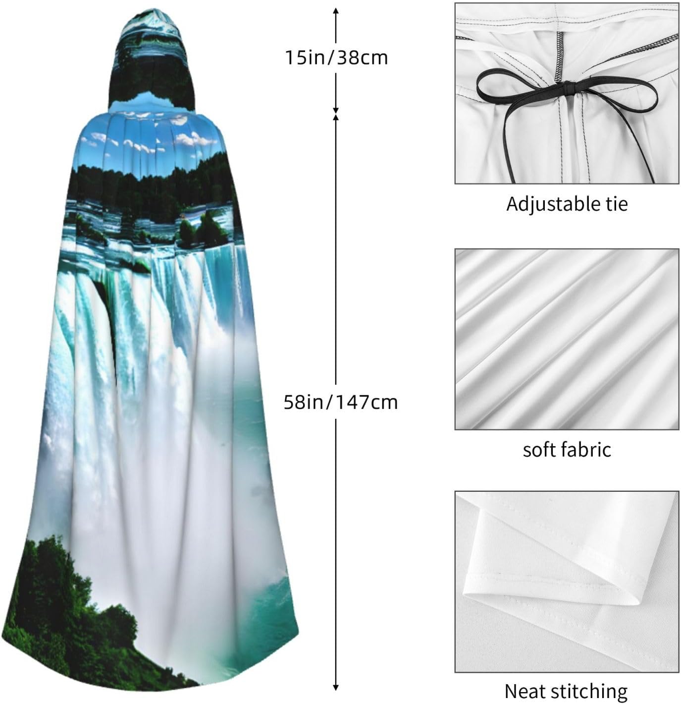 Realizzato in poliestere, questo mantello con stampa autunnale Niagara con cappuccio garantisce longevità e comfort. Le sue dimensioni ottimali assicurano una copertura completa per tutte le età, facendoti risaltare in qualsiasi evento. Che tu sia diretto per Halloween, un evento cosplay, un costume da palcoscenico, una festa in maschera, una festa a tema, un ballo o una convention di fumetti, questo mantello è una scelta ideale. Il suo design unico, completo di un grande cappuccio e cravatte collare. Inoltre, puoi dire addio ai metodi di pulizia complicati. Questo mantello con cappuccio con stampa autunnale Niagara è lavabile in lavatrice e a mano, offrendo una cura senza sforzo. Esci con stile e comfort con il nostro mantello con cappuccio, il tuo compagno per tutti gli eventi e le occasioni.