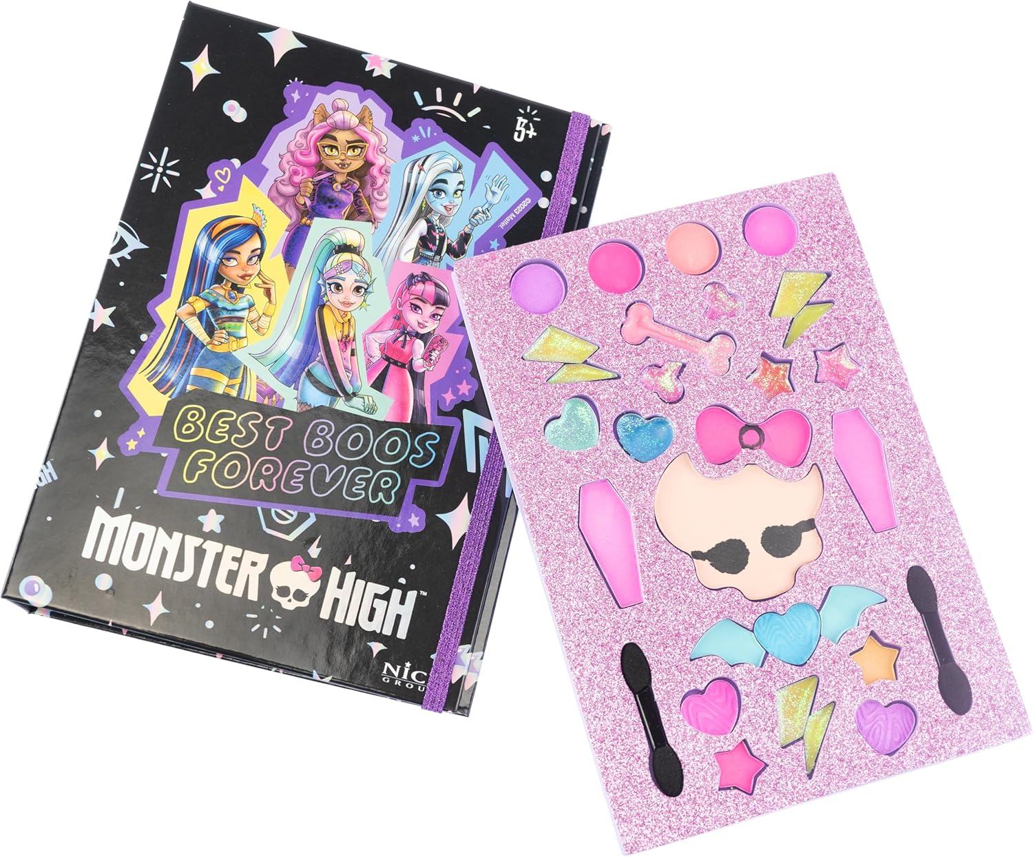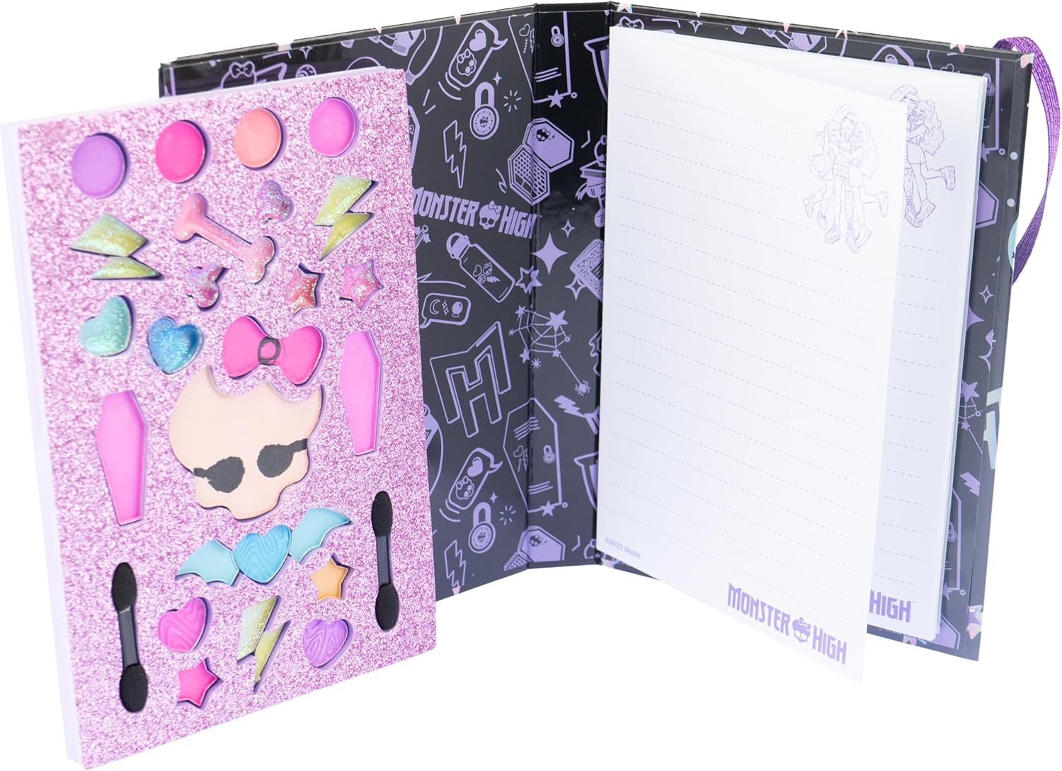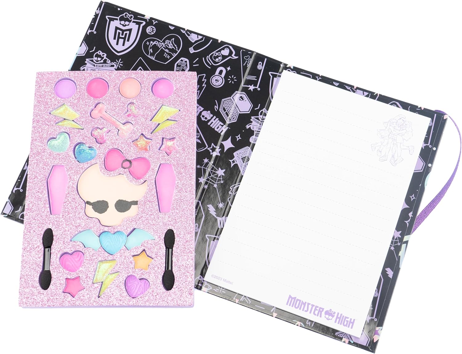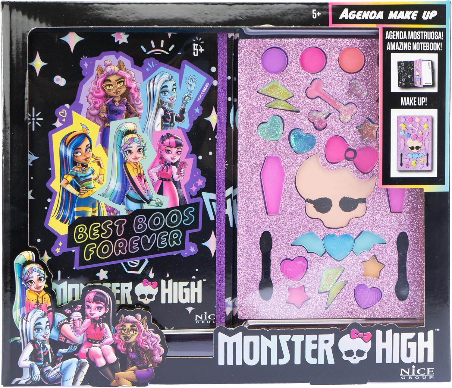 Diario Monster HIGH: diario trucco con cartoncino solido dai colori vivaci su sfondo nero in cui puoi scrivere e disegnare appunti. TRUCCO: All'interno troverai un kit trucco con ombretto, lucidalabbra e applicatori per aiutarti a ricreare un look in stile ragazze Monster High. CONTENUTO: 1 diario, 1 set trucco. Il gioco è testato, sicuro e conforme alle normative europee sui giocattoli. Dimensioni: L 14 x A 20 x P 2 cm. Prodotto originale. Bel gruppo. Età consigliata: dai 5 anni