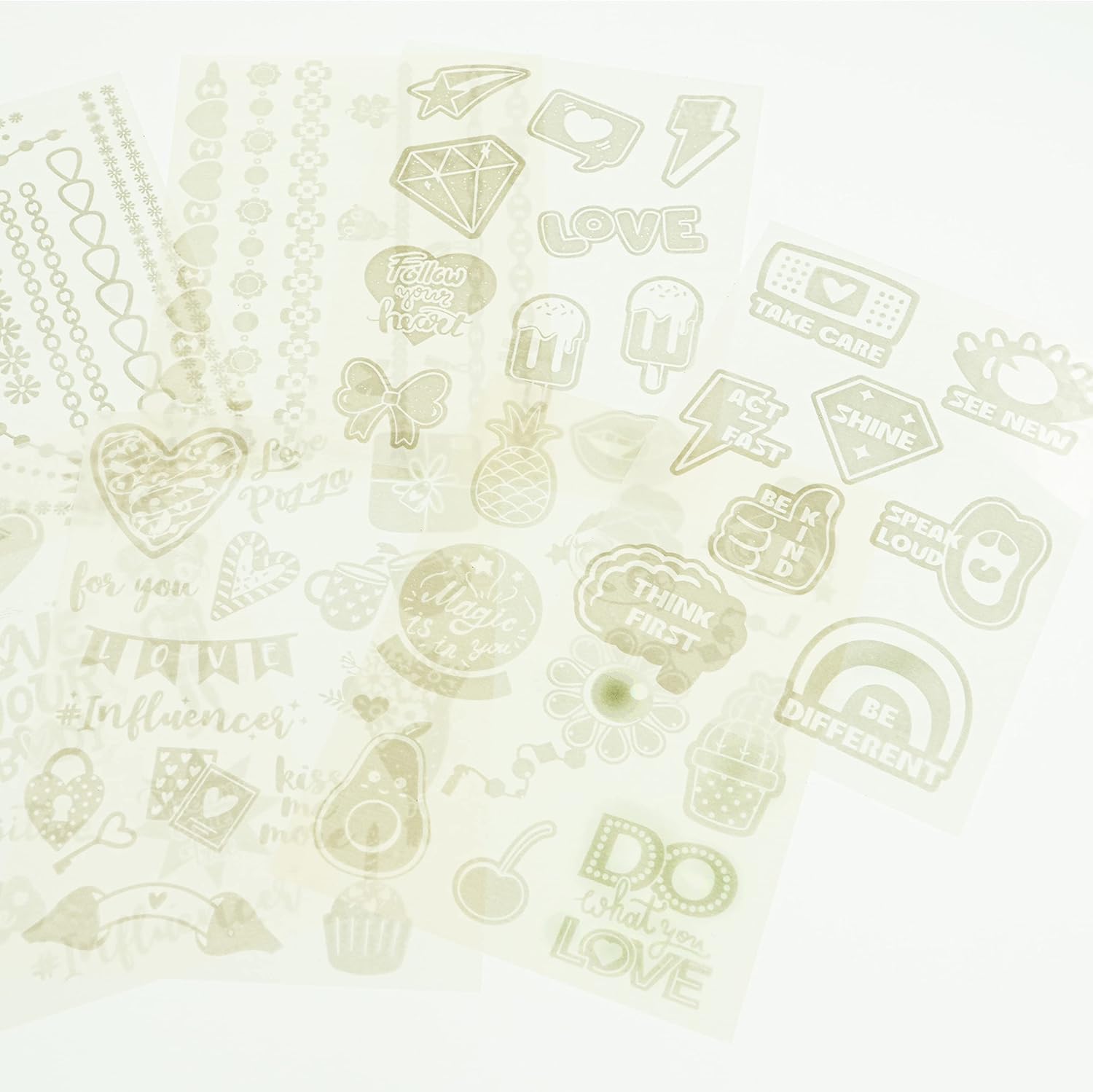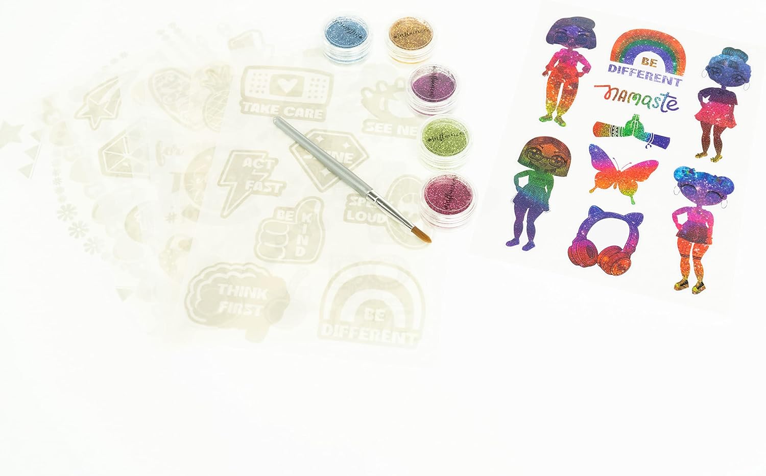 INFLUENCER Glitter Tattoo: kit di tatuaggi temporanei per bambini da applicare sulla pelle o su altre superfici come cellulari, diari, sneakers, magliette e jeans che acquisteranno un nuovo fashion look! CARATTERISTICHE: il set Tattoo per bambine è realizzato con materiali sicuri, testati, atossici e risultano facilmente rimuovibili con acqua e sapone. Puoi ritagliare il tatuaggio e applicarlo sulla pelle decorandolo e personalizzandolo con le polveri glitter in dotazione. USO: questo gioco a tema Influencer aiuta ogni bambino e bambina a stimolare le capacità creative, manuali e di immaginazione. Adatto da indossare in occasione di feste, compleanni, party tematici. CONTENUTO: 7 fogli adesivi con tatuaggi, 5 contenitori di polvere glitter (giallo, verde, blu, viola, fucsia), 1 applicatore, 1 foglio istruzioni. Età consigliata: 6 + DIMENSIONI: L 15 cm x A 23,70 cm x P 0,50 cm. Prodotto ORIGINALE Nice Group.