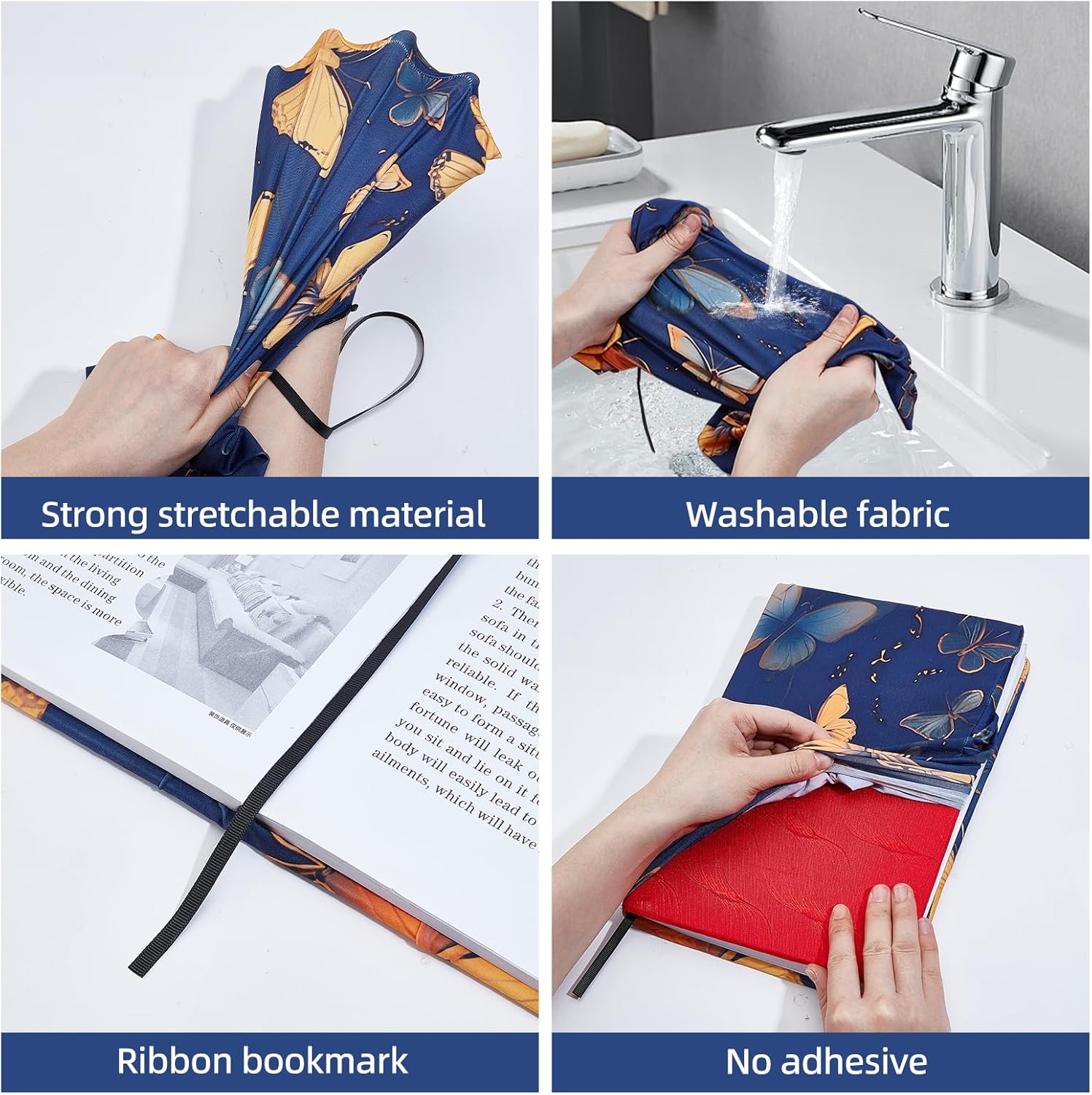 DIMENSIONE ESTENSIBILE SENZA SFORZO:la nostra copertina regolabile per libri può allungarsi fino a 10.1 x 8.7 pollice / 25.6 x 22cm . La capacità di allungamento consente a queste copertine di adattarsi a diverse dimensioni di libri, rendendoli ampiamente applicabili in diversi contesti. Nonostante questo, la copertina del libro mantiene la sua qualità e integrità, assicurando che i libri siano ben protetti PROTEZIONE PER LIBRI A FORMA DI FARFALLA MISTERIOSA:questa custodia elastica per libri è stata progettata con un motivo a farfalla misteriosa., che è stato stampato chiaramente, sembra delicato e bello, ed è facile attirare l'attenzione, così puoi trovare il libro che ti serve in primo luogo FACILE DA INSTALLARE E LEGGERE:la nostra custodia protettiva per libri è molto facile da installare, non c'è bisogno di nastro adesivo, lo devi coprire con un libro con copertina rigida. E ha un segnalibro a nastro sulla copertina, rendendo facile trovare una pagina specifica per una facile lettura e utilizzo PROTETTIVO:la nostra copertina elastica protegge i tuoi libri dalla polvere e la copertina dagli strappi, schizzi, pioggia e mani bagnate. Questa è una copertina perfetta per gli amanti dei libri che desiderano mantenere i propri libri in perfette condizioni. AMPIO UTILIZZO:questa custodia per libri può essere utilizzata per proteggere i libri, libri di testo o quaderni per gli studenti, insegnanti, scrittori, studiosi, librerie o chiunque ami i libri o voglia distinguerli facilmente