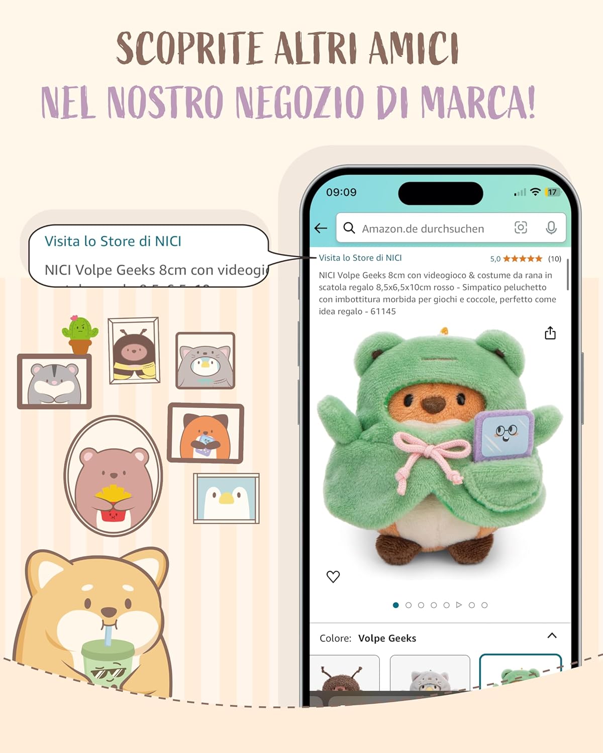 Atmosfera pinguinosa: questo sofficissimo cuscino mymochi con Waddle, il goffo pinguino che tiene tra le ali la sua fetta di melone 3D di peluche, è il tuo compagno perfetto per l'estate Per coccole, decorazioni o regali: questo cuscino mymochi emana vere vibrazioni Kawaii ed è un accessorio elegante Ideale come regalo alla moda per grandi e piccini mymochi: morbido, colorato e pieno di stile Kawaii 6 giocattoli di peluche unici con splendidi dettagli in peluche 3D rendono la tua casa il mix perfetto tra decorazioni, compagni di coccole e oggetti da collezione Mymochi porta lo stile Kawaii nella tua vita quotidiana Ideale da regalare: ogni mymochi in stile Kawaii combina al morbido divertimento il piacere del collezionismo Questo marchio di Nici si sta espandendo portando l'amore Kawaii sia ai grandi sia ai più piccoli Con amore, NICI: dal 1986 Nici fa brillare di meraviglia gli occhi dei bambini Grazie a prodotti realizzati con amore e di alta qualità, offre momenti indimenticabili che regalano gioia ATMOSFERA PINGUINOSA: questo sofficissimo cuscino mymochi con Waddle, il goffo pinguino che tiene tra le ali la sua fetta di melone 3D di peluche, è il tuo compagno perfetto per l'estate PER COCCOLE, DECORAZIONI O REGALI: questo cuscino mymochi emana vere vibrazioni Kawaii ed è un accessorio elegante Ideale come regalo alla moda per grandi e piccini