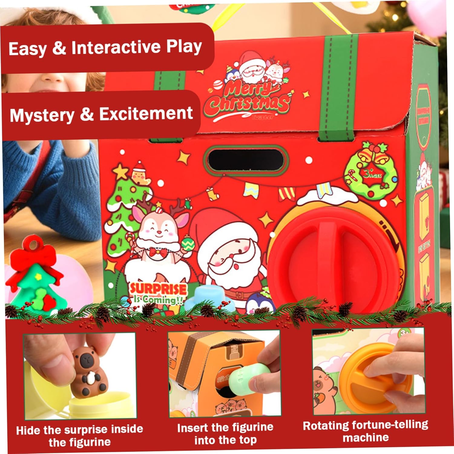 Gioca ovunque: la mini macchina gacha a tema natalizio è leggera e compatta, rendendola facile da trasportare per i bambini zaino o a mano..Il divertimento ovunque lo facciano. Divertimento a sorpresa senza fine: i bambini possono personalizzare le sorprese nascoste all'interno delle capsule, ricaricarle dall'alto e provare il brivido di girare la manopola per vedere quale sorpresa cadrà dopo. Perfetto per le bomboniere: il distributore automatico di mini capsule funge anche da bomboniera creativa, rendendo le celebrazioni più memorabili e mantenendo i bambini impegnati con giochi interattivi e pratici che stimolano la curiosità e l'immaginazione. Gioco interattivo: girare la manopola e scuotere la macchina aggiunge eccitazione in modo uniforme a ogni, creando un senso di anticipazione che mantiene i bambini impegnati e intrattenuti alle feste o a casa. Il preferito delle feste natalizie: con il suo tema natalizio e le sorprese casuali delle bambole, questa macchina gacha è un'aggiunta affascinante alle riunioni festive, alle celebrazioni pasquali o agli appuntamenti di gioco, scatenando risate e gioia tra i bambini.