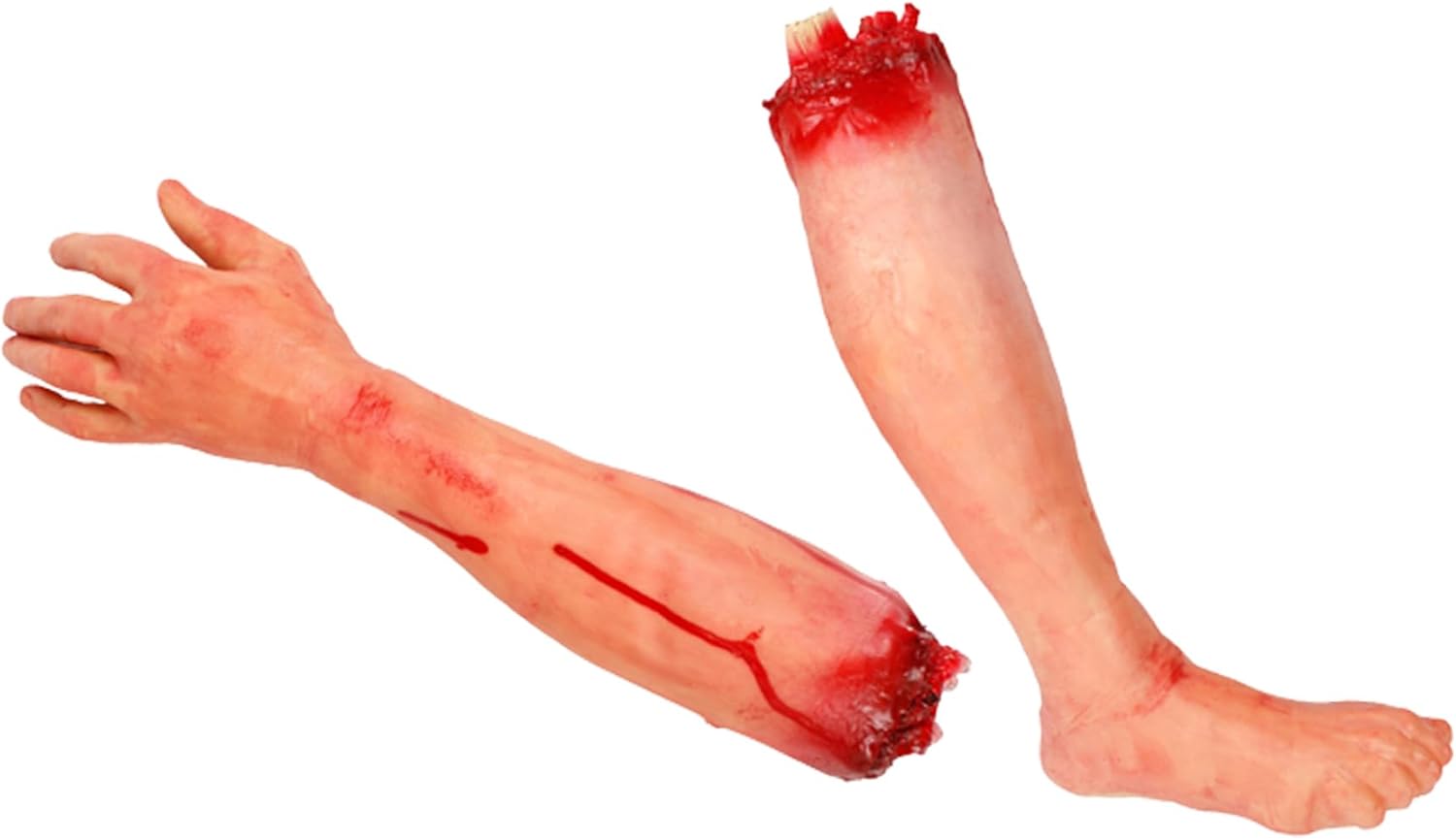 Ampia applicazione: la parte del corpo mozzata è adatta a molte condizioni come feste di Halloween, case stregate, stanze segrete, club, bar, come oggetti di scena per spettacoli teatrali, decorazioni per TV, film ecc., il che è pratico e utile. Morbido e: realizzato in materiale vinilico di alta qualità e riempito con cotone PP. Questo oggetto ha un tocco realistico ed è morbido al tatto, ma abbastanza da resistere alla pressione e all'uso ripetuto. Accessorio versatile da imbroglione: che tu stia facendo uno scherzo ai tuoi amici o allestendo una scena spaventosa, questa parte del corpo mozzata è l'oggetto perfetto per aggiungere un tocco spettrale a ogni occasione. Realistico e spaventoso: la parte del corpo mozzata è progettata a grandezza naturale, con il braccio che misura 45x13 cm/17,72x5,12 pollici e la gamba che misura 53x23 cm/20,87x9,06 pollici con buona fattura, che sembra davvero spaventoso ed è un ottimo oggetto di scena festivo. Facile da riporre e riutilizzare: grazie al design leggero e al materiale morbido, questo accessorio può essere facilmente riposto quando non utilizzato e riutilizzato per gli anni a venire, rendendolo una scelta conveniente.