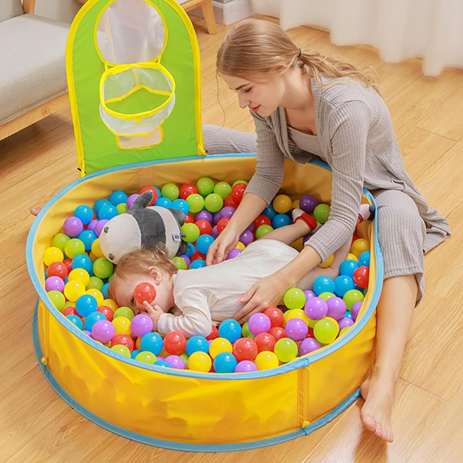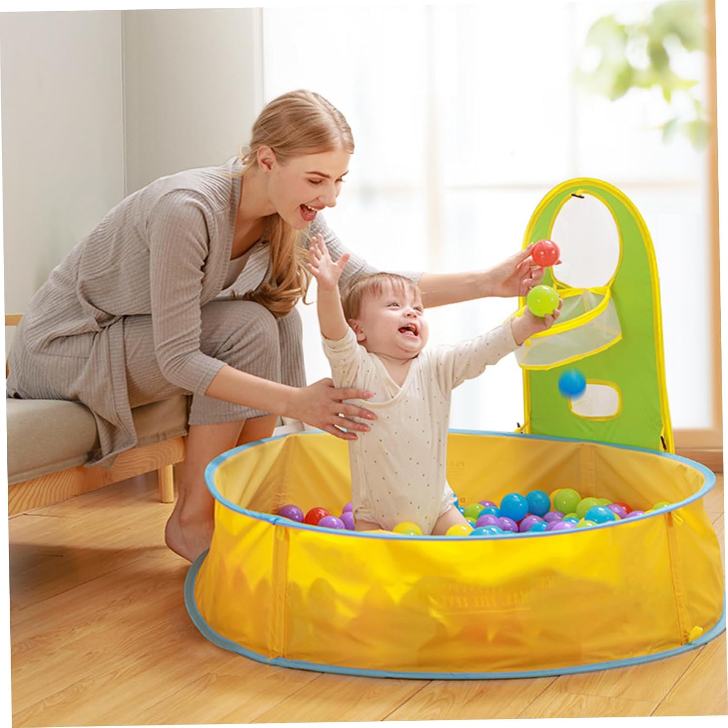 Stabile telaio a sfera e borsa di stoccaggio: il robusto telaio a sfera garantisce che la struttura rimanga stabile, mentre la borsa di stoccaggio inclusa facilita l'imballaggio e la conservazione di tutti gli accessori. Parasole integrato: il parasole integrato protegge il tuo piccolo dai dannosi raggi UV, garantendogli che possa giocare all'aperto in sicurezza, anche nelle giornate soleggiate. Perfetta per il divertimento al chiuso e all'aperto: che tu stia godendo una giornata in spiaggia o intrattenendo il tuo bambino in casa, questa piscina offre un ambiente divertente e sicuro da esplorare per i più piccoli. Portatile e pieghevole: leggera e pieghevole, questa piscina è facile da trasportare e riporre, rendendola ideale per i viaggi o per riporla rapidamente quando non viene utilizzata. Doppia funzionalità: questo prodotto versatile funziona sia come piscina per bambini che come vasca con palline, offrendo al tuo bambino il meglio del gioco acquatico e del gioco interattivo.