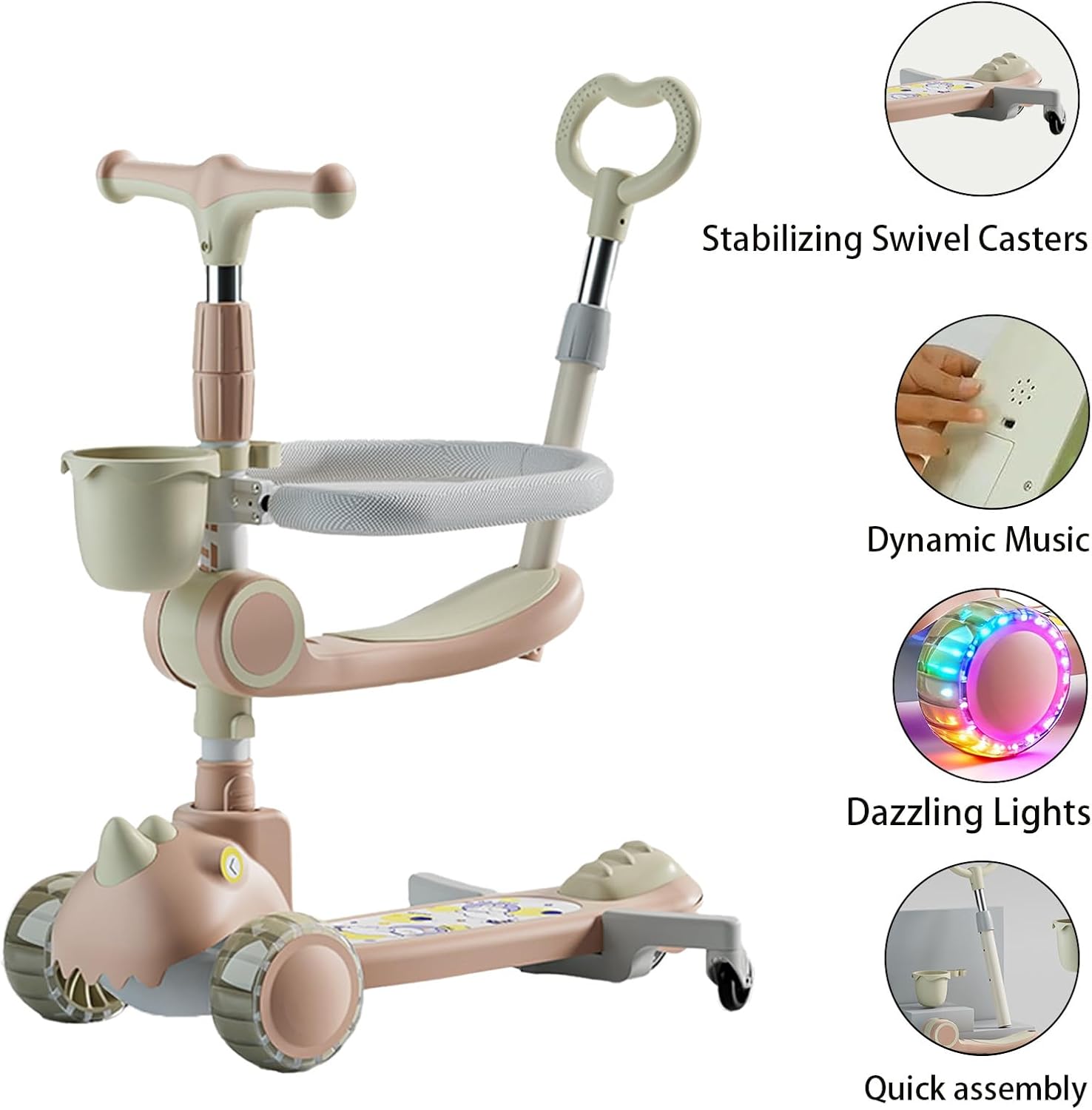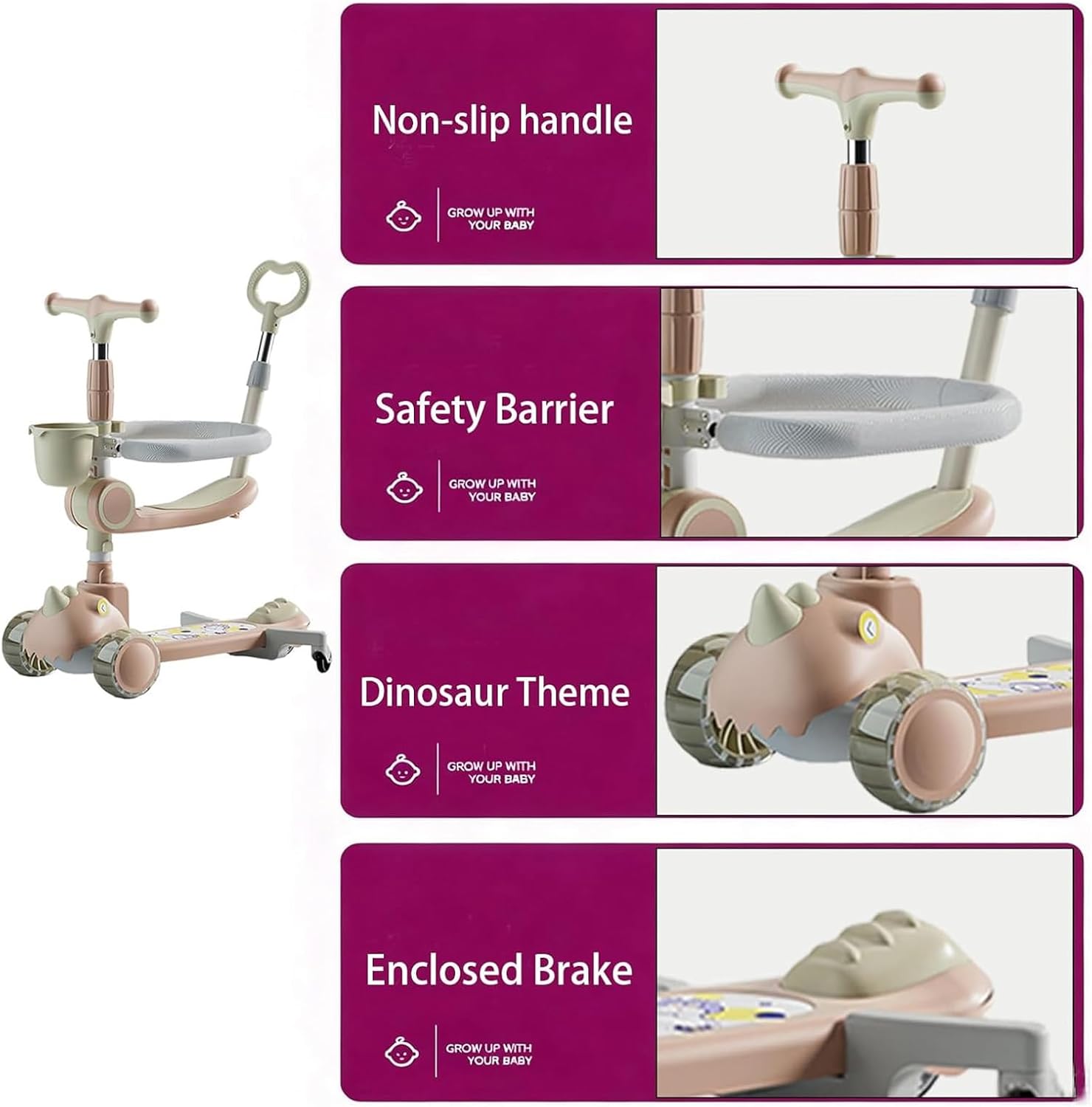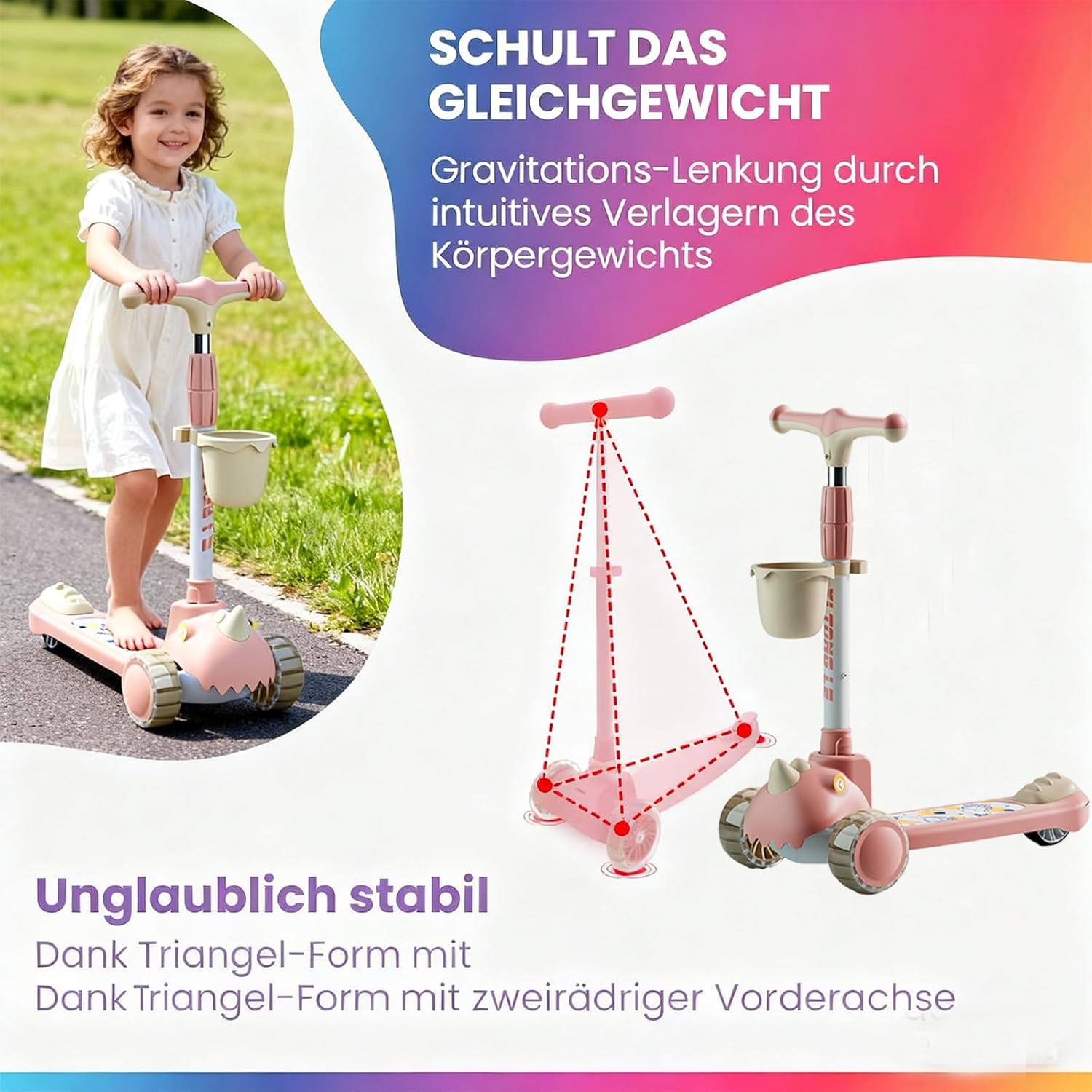 【Doppio divertimento per crescita e avventura】Guida come uno scooter con pneumatici larghi ed elastici oppure sali comodamente sul sedile e goditi il viaggio! Pieno di sicurezza grazie al manubrio regolabile (regolazione in altezza a 4 velocità) e al telaio stabile - perfetto per i bambini dai 4 anni in su che vogliono imparare dal gioco attivo e muoversi in sicurezza. esperienza! 【Completamente adattabile al tuo bambino】 Il sistema di seduta reversibile può essere montato/smontato in pochi secondi: passa dalla modalità scooter a quella scooter a seconda delle esigenze del tuo piccolo. Il gradino ampio ed ergonomico offre il massimo comfort, mentre l'altezza regolabile del manubrio (compresa la maniglia) garantisce la posizione di seduta ottimale per ogni fase della crescita. 【Costruzione robusta per l'uso quotidiano】Realizzato con materiali di alta qualità e adatti ai bambini. Il nostro monopattino per bambini è resistente alle intemperie e durevole, I pneumatici extra larghi e antiscivolo garantiscono una guida senza problemi su tutte le superfici, dai marciapiedi ai parchi giochi, Il design dei cartoni animati affascina sia i bambini che i genitori! 【Un regalo per il futuro】Un investimento per l'infanzia: tuo figlio può utilizzare l'attrezzatura multisport dall'età di 4 anni fino all'inizio della scuola - non c'è motivo di cambiare a causa della crescita! Pratico: Comodo trasporto grazie alla maniglia per il trasporto e al design salvaspazio, un must per ogni genitore che cerca qualità, sicurezza e divertimento in un unico prodotto