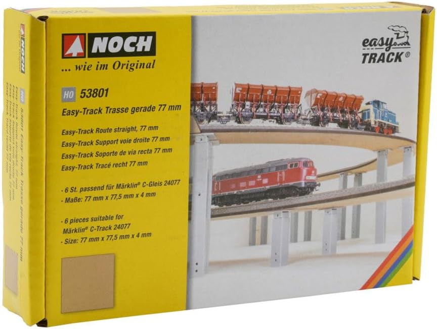 Vestibilità precisa: i binari sono appositamente adattati alla geometria dei binari Märklin/Trix C e offrono una larghezza esatta di 77,5 mm per percorsi a binario singolo. Pronta all'uso: grazie alla precisa tecnologia laser, le tracce sono pronte per l'installazione e possono essere applicate direttamente su paranchi o elementi di fissaggio Easy Track. Contenuto del set: contiene sei tracciati laser di precisione, ciascuno adatto per binario Marklin C 24077 con dimensioni di 77 x 77,5 x 4 mm. MONTAGGIO SEMPLICE: le tracce possono essere lavorate in modo rapido e pulito, il che facilita la costruzione del vostro impianto di modellismo individuale. Applicazione versatile: ideale per la costruzione di nuovi modelli o l'espansione di impianti esistenti in scala 1:87 (H0).