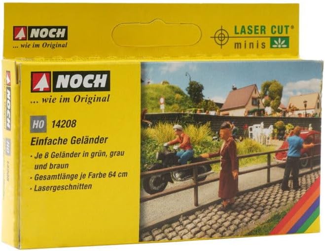 ✅ Versatilità: perfetto per definire marciapiedi, pendii e barriere in scene rurali e urbane. Tre colori: contiene 8 ringhiere in verde, grigio e marrone con una lunghezza totale di 64 cm per colore. ✅ Qualità Laser Cut: il taglio laser preciso garantisce modelli dettagliati e fa parte dei kit NOCH LaserCut Minis. Sostenibile: realizzato con materiali sostenibili per modellismo ecologico. ✅ PER CORSO H0: ideale per modelli in scala 1:87.