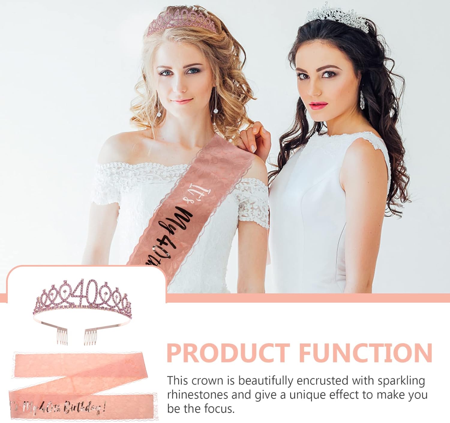 Di strass di compleanno-la è decorata con strass scintillanti, presenta un look luccicante, elegante, chic e accattivante Birthday rhinestone crown sash-can funge anche da oggetti di scena fotografici, usali per scattare una foto, crea ricordi più belli, del 40 ° compleanno Shinestone crown sash- in traco 40 ° compleanno sash-progettato in modo particolare per il 40 ° compleanno, aiutarti a creare una piacevole festa di compleanno, 40 ° crown sash Di strass